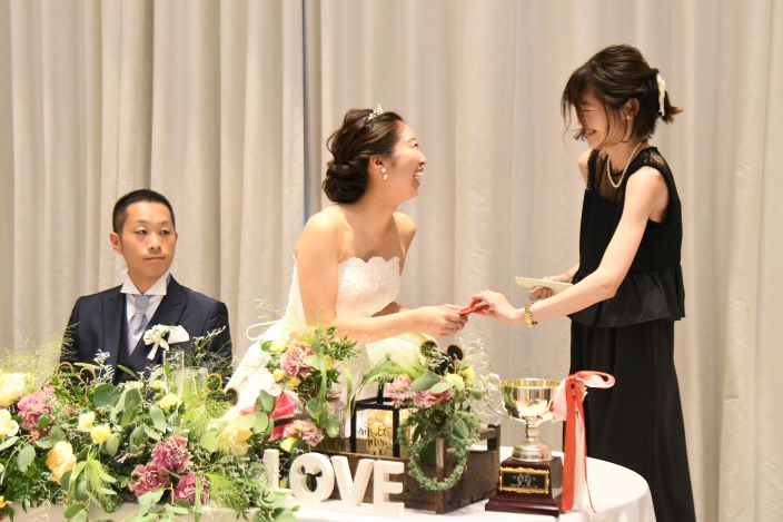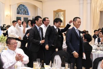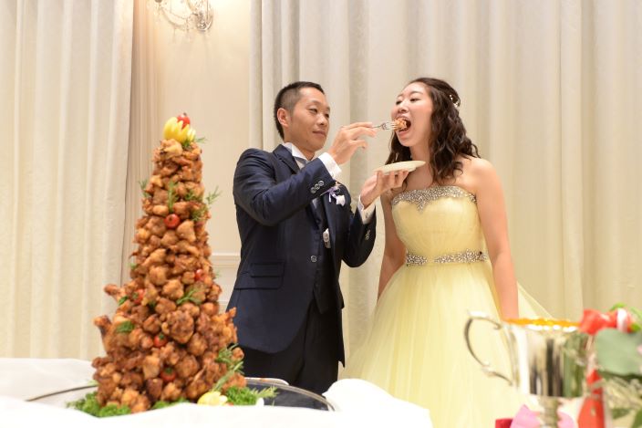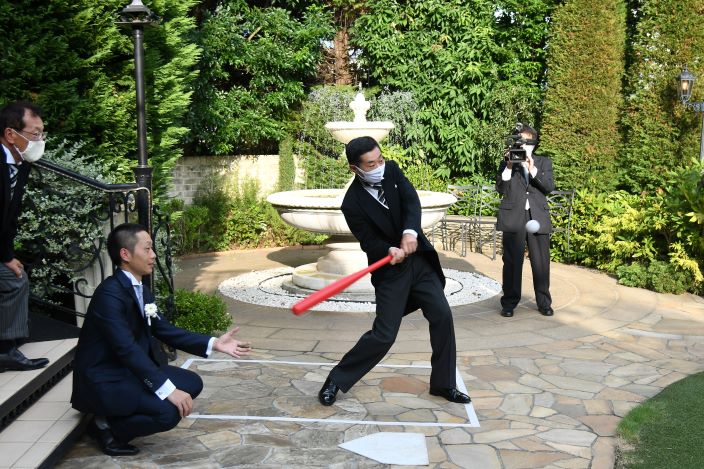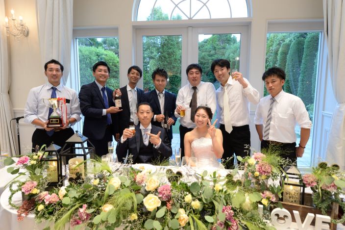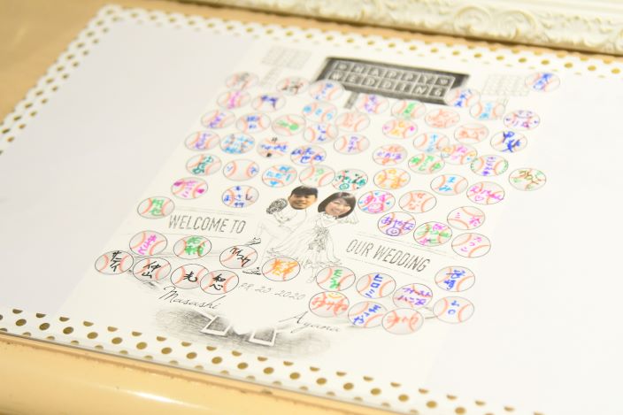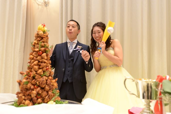 【 結婚式で始球式がしたい!! 】 そんなふたりの結婚式のテーマは〈 野球 〉で決まり! 一瞬の時間にも想いを込めたい。 挙式で使用する〈リングピロー〉は野球ボールデザインで 新婦様が手づくりされました。 ガーデンパーティーで叶えた〈 始球式 〉では、 特別な想いをたくさん込めたボールに、ゲストも大歓声!! 広大なガーデンを120%楽しんで頂きました◎ お色直し後は、ウエディングケーキではなく...〈からあげタワー!〉 普通じゃつまらない!と新婦様のだいすきなからあげでファーストバイトも行いました! ふたりのだいすきなものに囲まれた世界にひとつの〈オリジナル ウエディング〉 オーダーメイドだからこそできる、ふたりだけの1日になりました! 最後に、ふたりからこれから結婚式を控えるカップルに.. 「準備を頑張った分だけ当日はとっても楽しい時間になります。 準備から思う存分楽しんでください!」