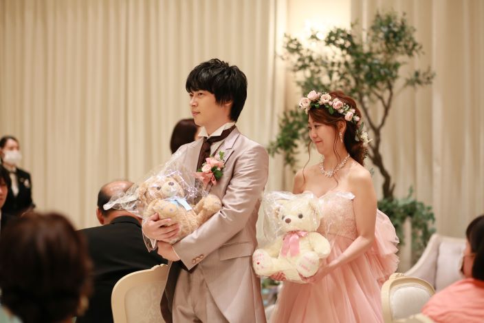 【 挙式は、温かくカジュアルに。 】 ガーデン人前式で、ゲスト全員に見守って頂くアットホームでカジュアルな挙式を選んだおふたり。 アニヴェルセルならではの、緑に囲まれたプライベートガーデンで過ごす温かい家族の時間になりました。 【 ふたりの手作りがたくさん詰まったオリジナルパーティー 。】 とにかく〈 手作り 〉にこだわったおふたり。 ペーパーアイテムからプロフィールムービーまでふたりの大好きなものを散りばめてオリジナリティを演出しました。 大好きなキャラクターの演出など、ゲストを「あっ!」と楽しませるサプライズも。 ゲストに参加してもらうからこそできる、年代問わず楽しめるおふたりらしいパーティーに。 最後に、ふたりからこれから結婚式を控えるカップルに.. 結婚式は自分たちや家族にとっても思い出に残るもの。 準備期間で大変だったこともありましたが、妥協せずにこだわり抜いて良かったと心から思っています。 こだわりや好きを詰め込んだ素敵な結婚式を作り上げてください!