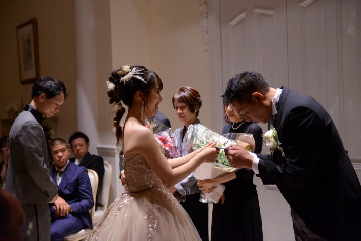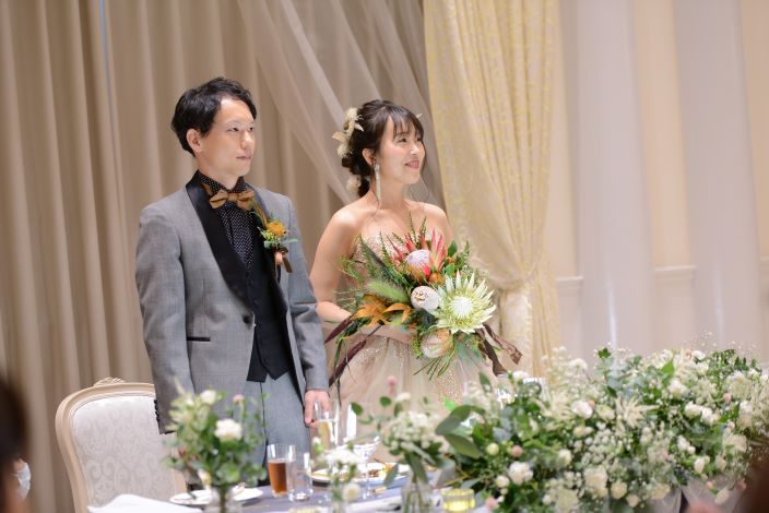 【 家族・ゲストへ心からの感謝を伝えたい 】 挙式・お料理・ドレス・お花などは、すべておふたりのこの大きな想いがあったそうです。 挙式では大切な家族に。 アニヴェルセルで大切にしている親御様に感謝をお伝えする 【家族の絆のじかん】【確認の儀】に想いを込め、 ふたりを一番近くで支え、見守ってくださった家族へのありがとうを。 パーティーでは大好きなゲストに。 【おいしいお料理】【上質な空間】を 2時間半のパーティーでゲスト全員におもてなししたい。 ゲストからは「今まででお料理が1番美味しい結婚式だった!」とのお声も。 最後に、ふたりからこれから結婚式を控えるカップルに.. 「細かいところまでしっかりこだわらせてくれるので、 質の高い完璧な結婚式になること間違いなしです^_^」
