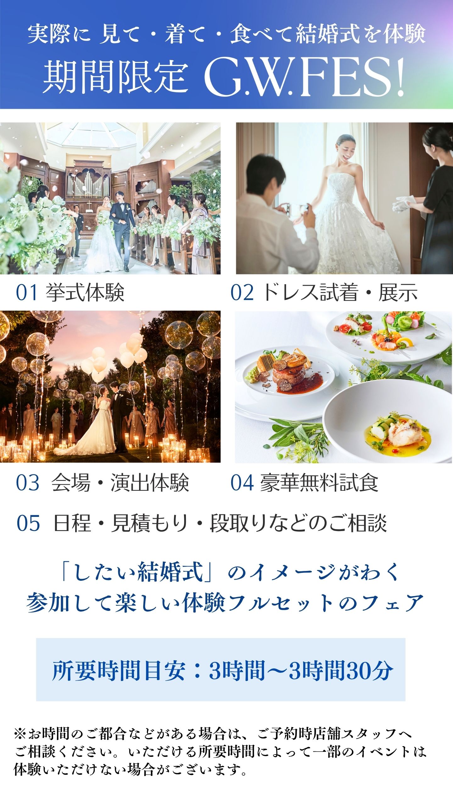 【豪華特典付き】憧れ叶うチャペルウェディング 期間限定開催・G.W.FES!