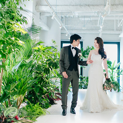 今までの披露宴会場とは一風変わった、未完成にも見える華美な装飾が施されていない余白を持つ会場。空間はそのままでも美しく、クリエイティブなお客様の創造力を掻き立てます。
