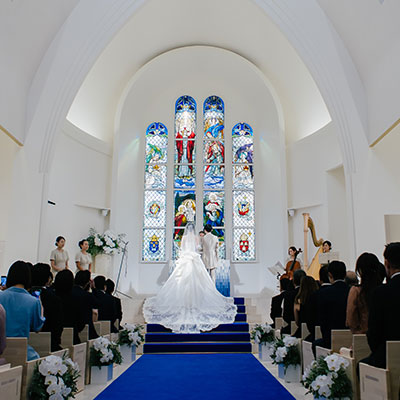 このフロア限定で、フラワー装飾に加えてファブリックも使ったオリジナル装飾を演出できます。メインテーブル、ステージなどを飾り付け、印象的な空間をご用意します。