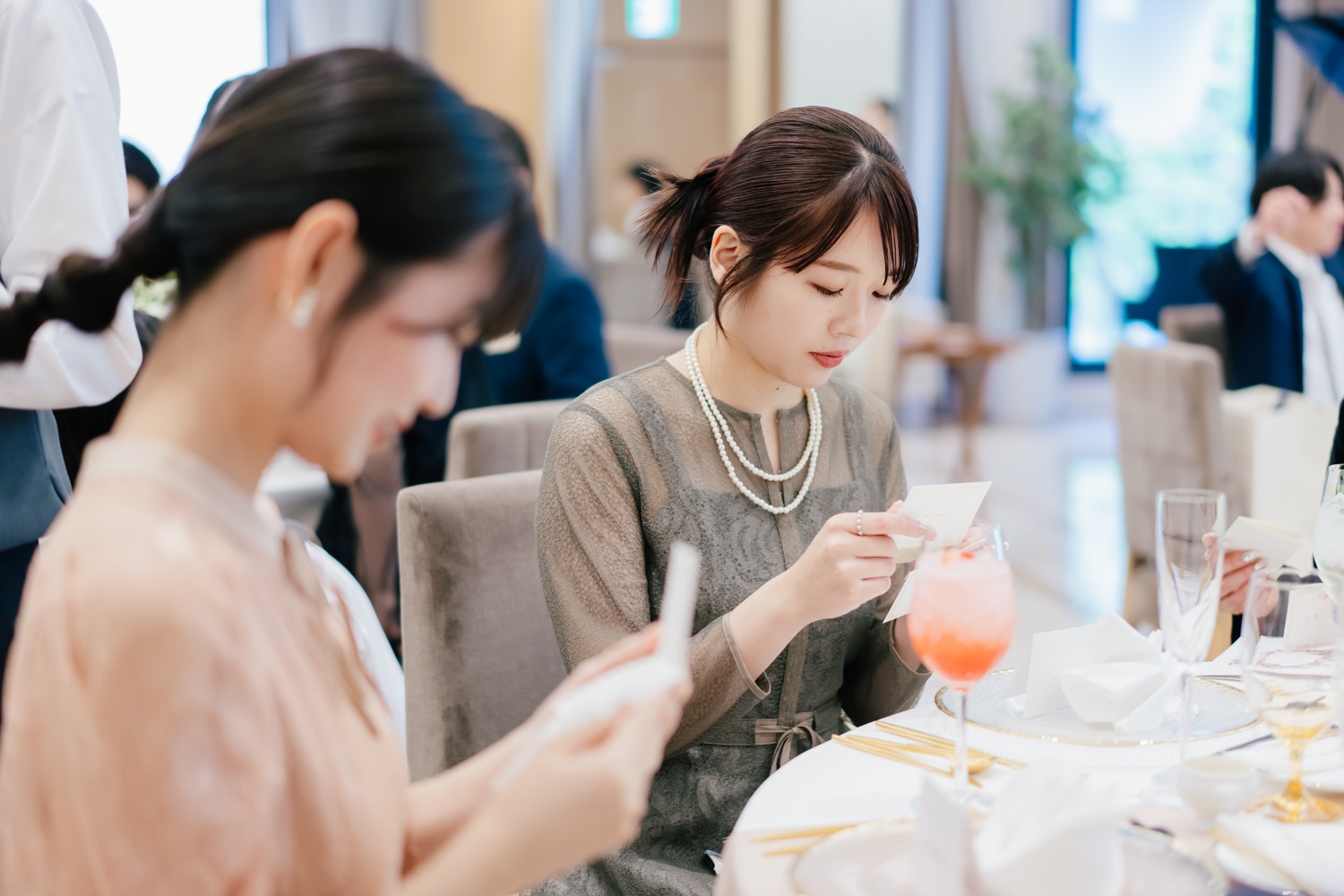 【One to One】 をコンセプトにご準備を進めたおふたり。 おふたりは一人一人との時間を大切にしたいという思いが強いのと、 その方との思い出を振り返ったり、感謝を伝えたいという思いでこちらになりました。