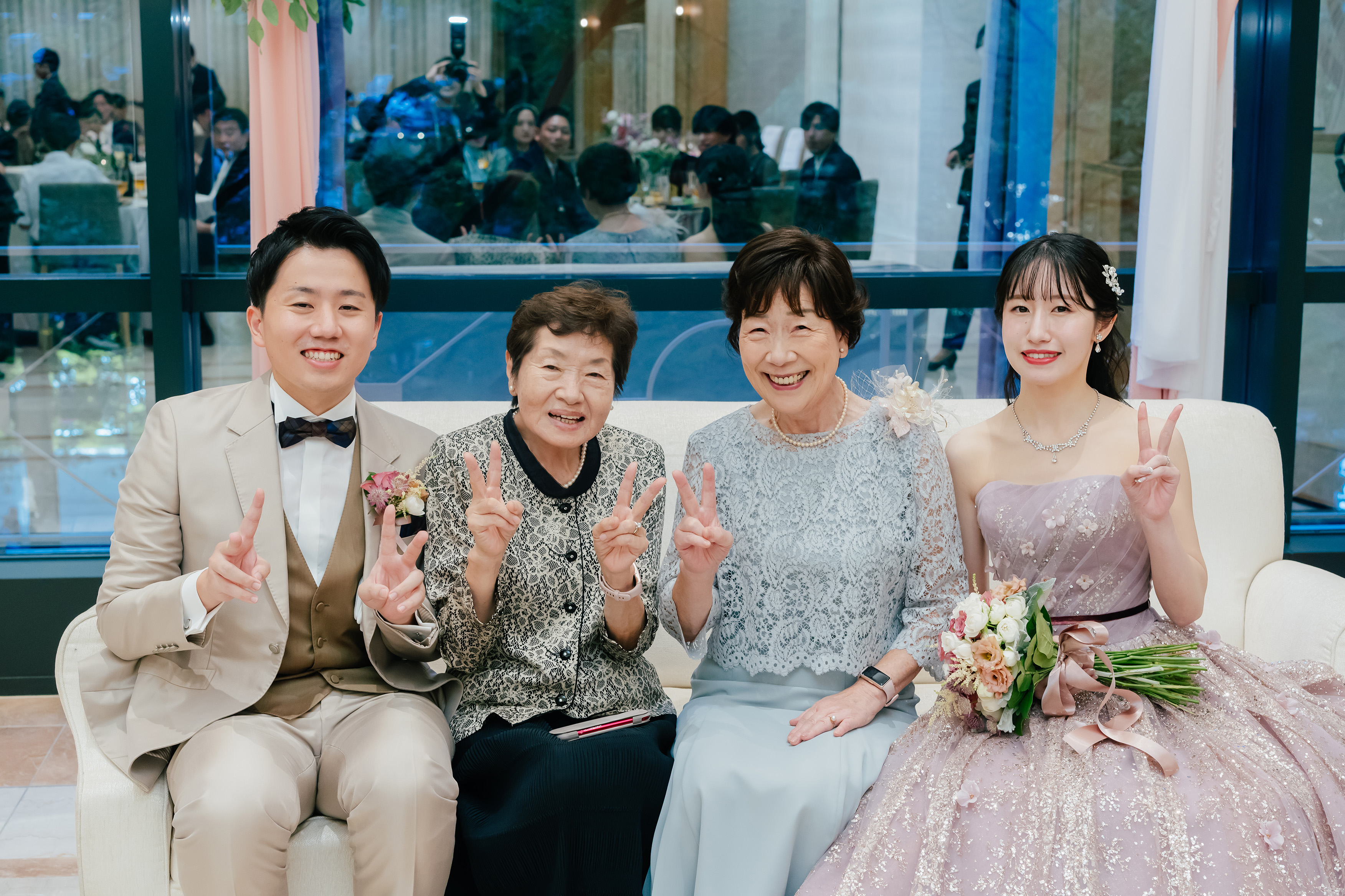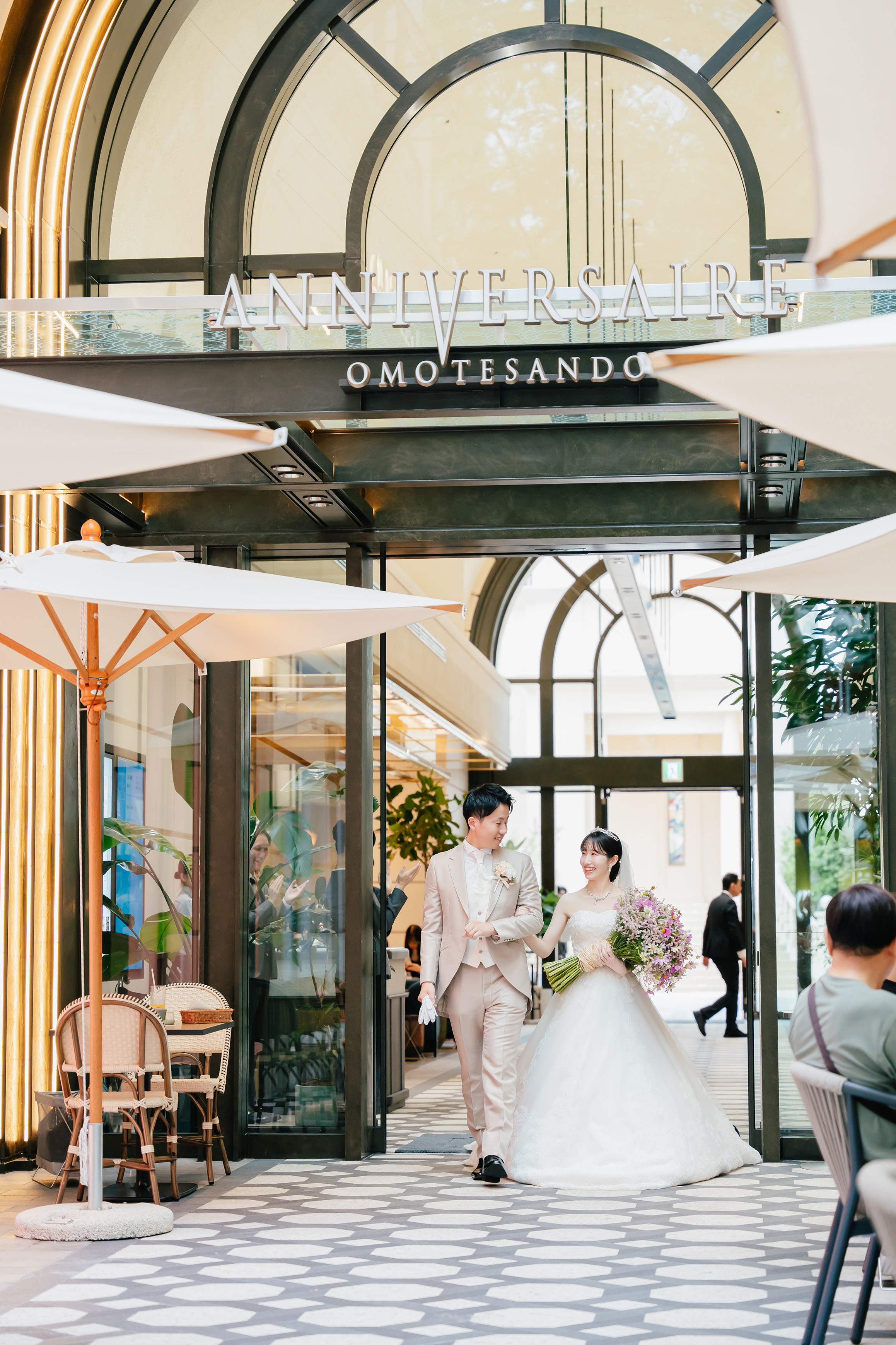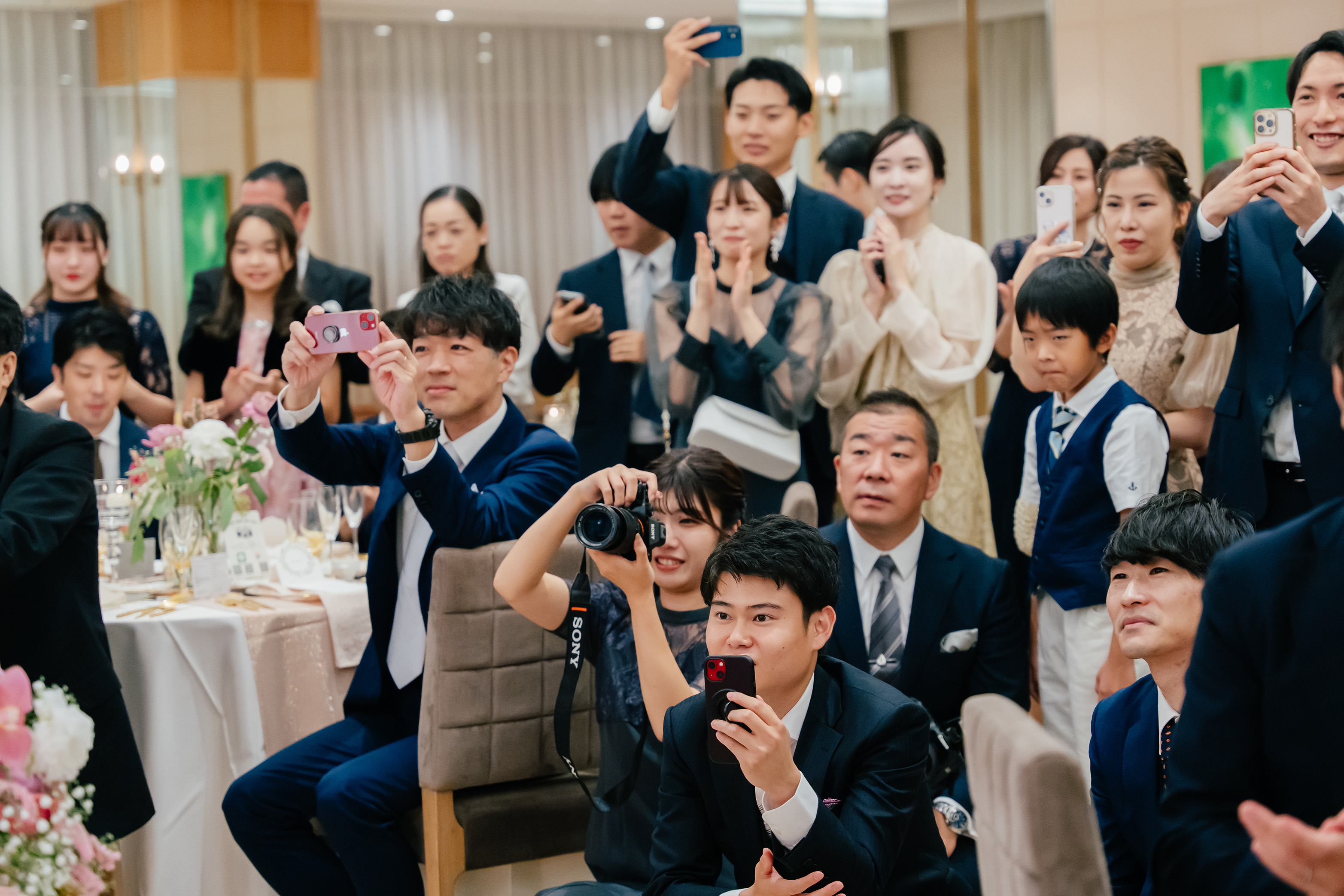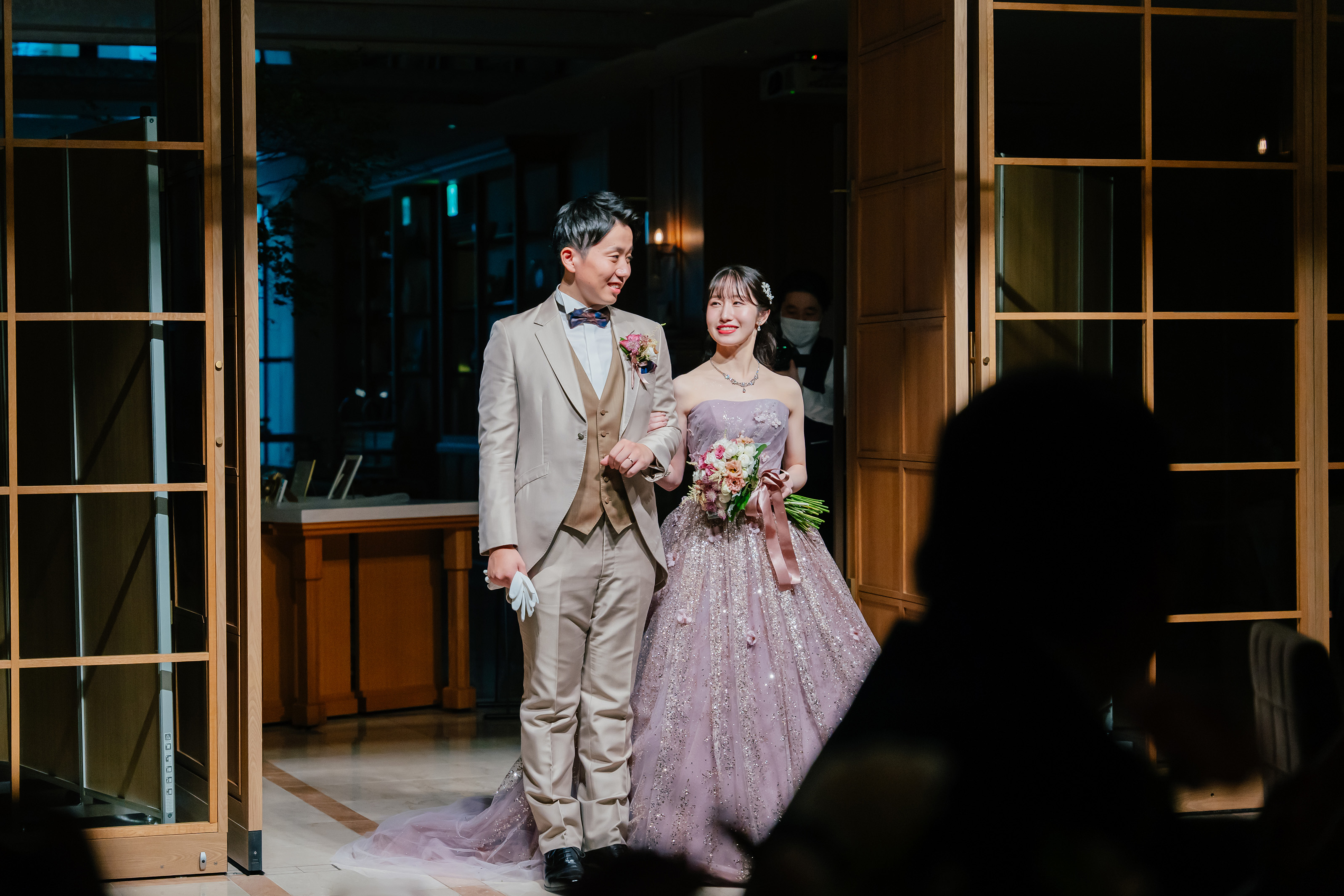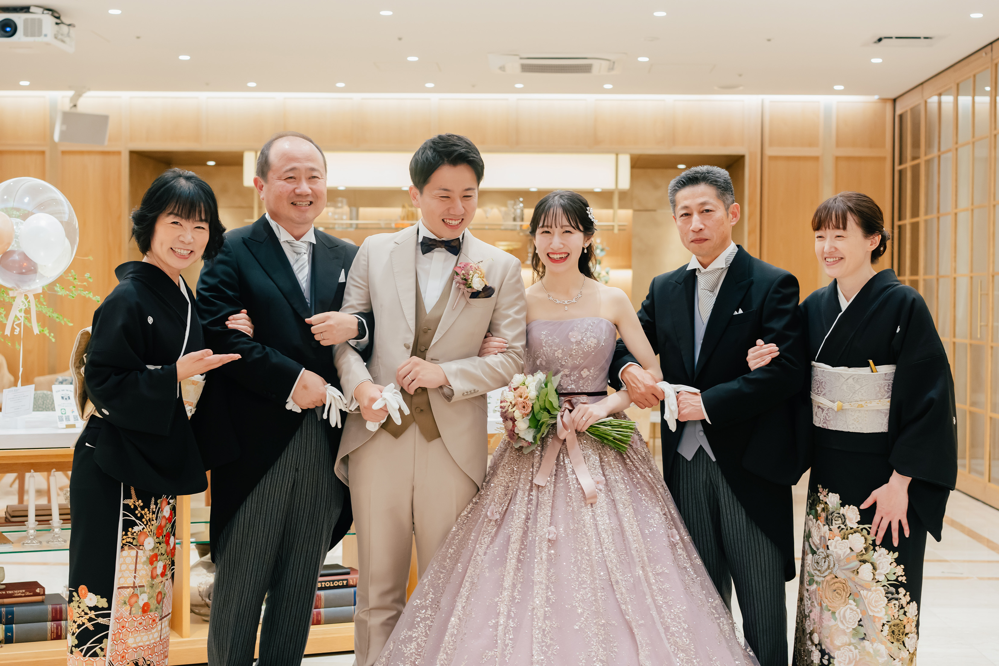 「Sharing love and happiness with a thankful heart in a relaxing atomosphere.」 をテーマにご準備を進めたおふたり。 ゲストのみなさまがリラックスして楽しめるよう、 会場はモーヴピンクやホワイトを取り入れて大人かわいい印象に。 また、より近い距離で楽しみたいという思いで設置したフォトスポットでは たくさんの素敵な笑顔を収めることができました。