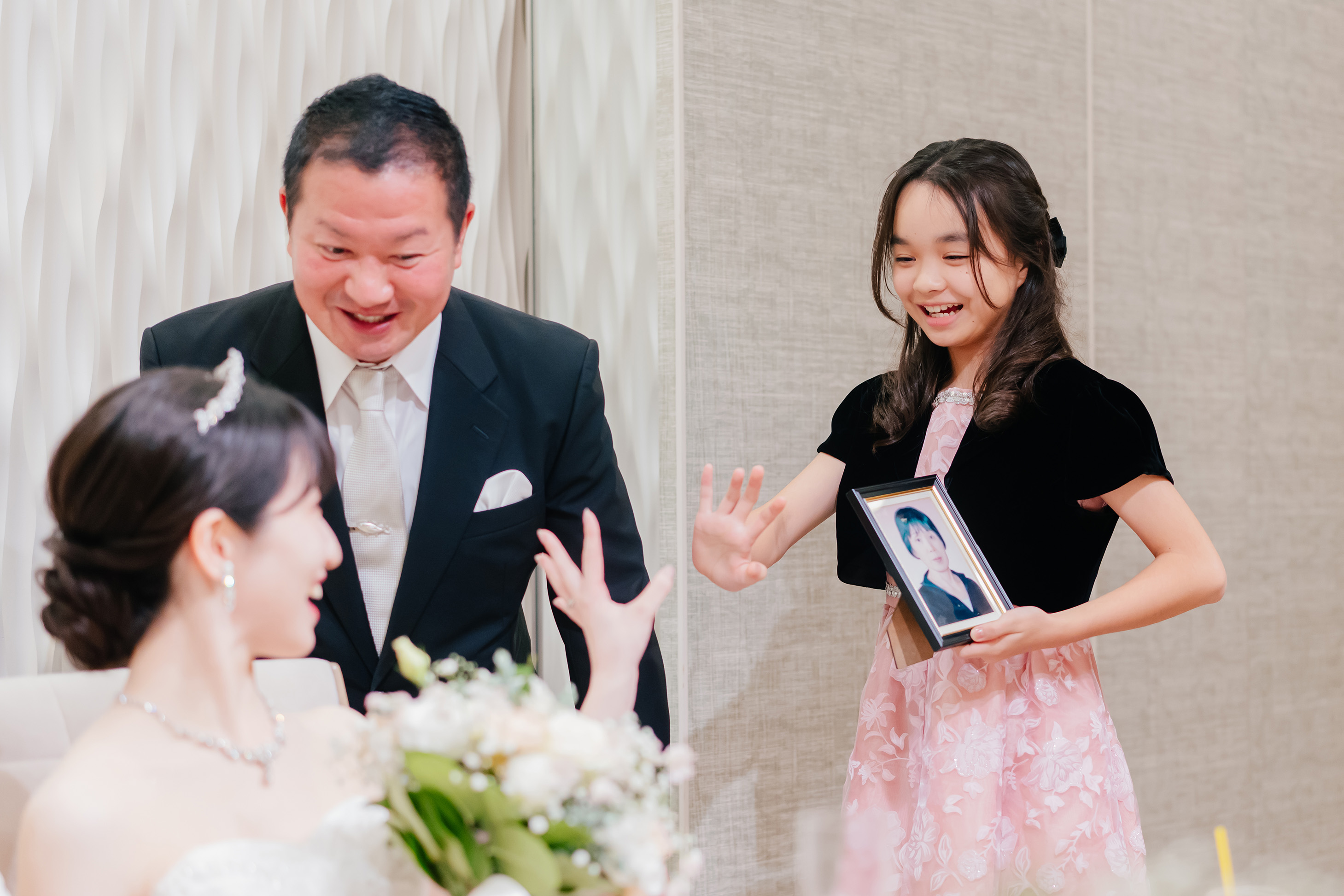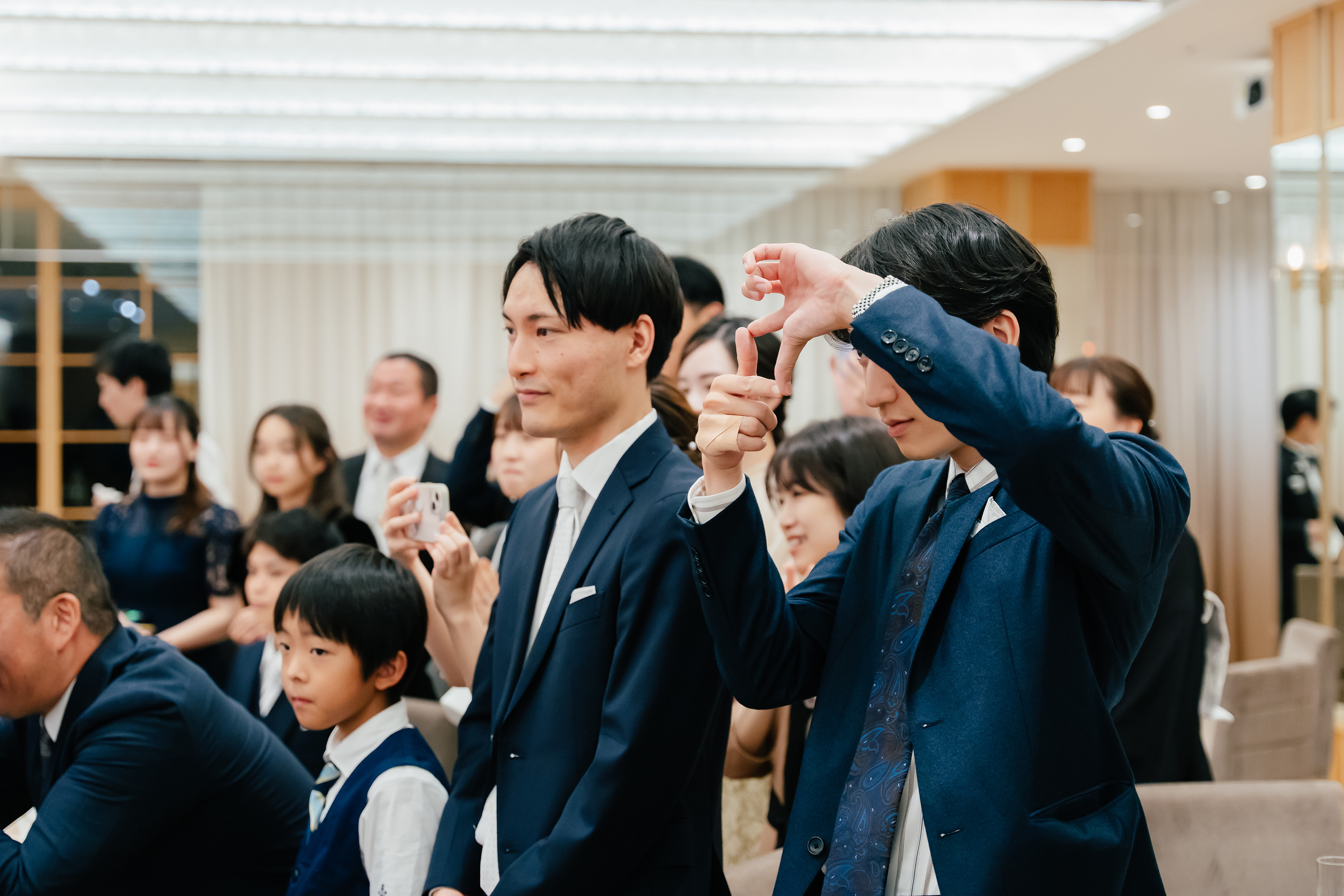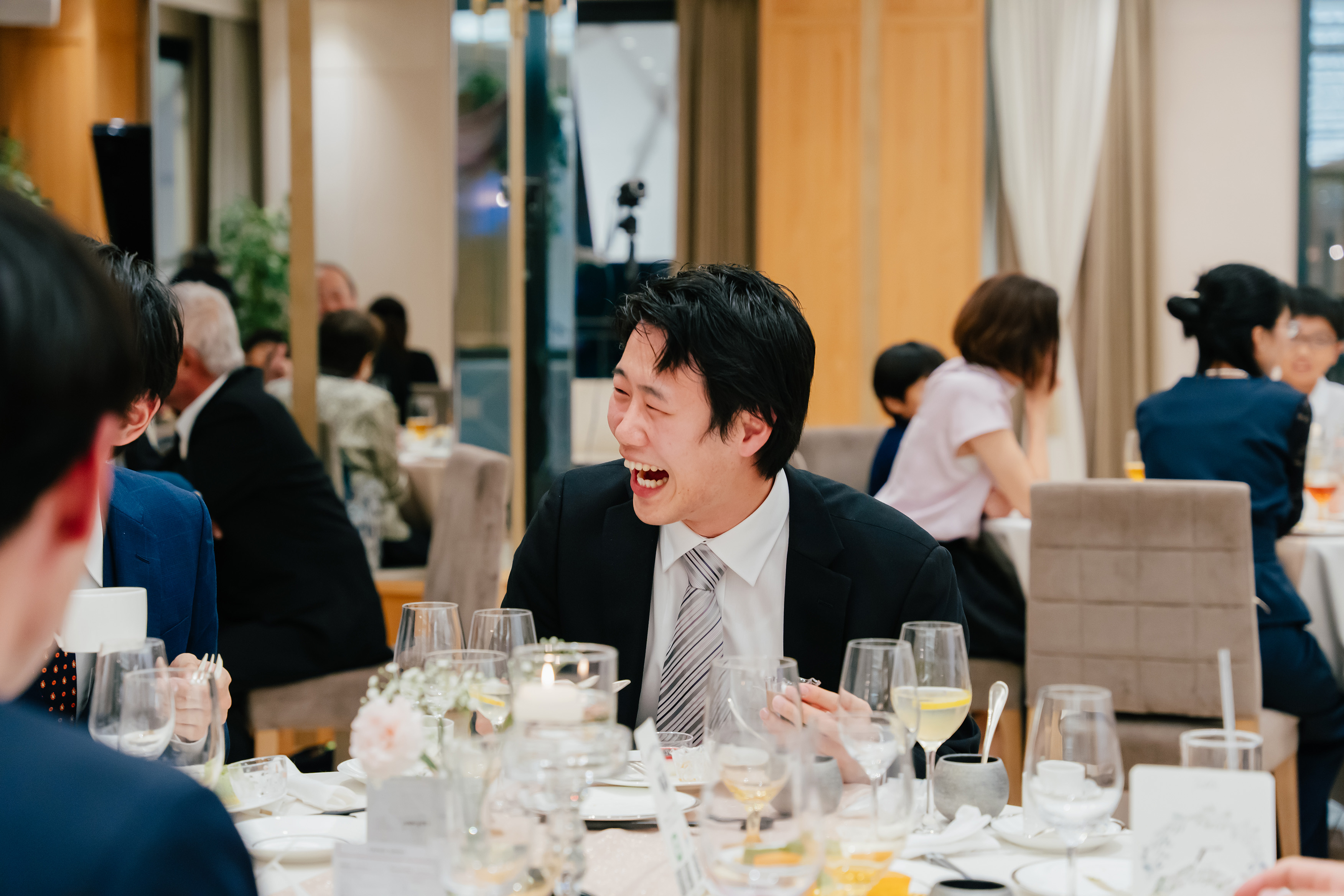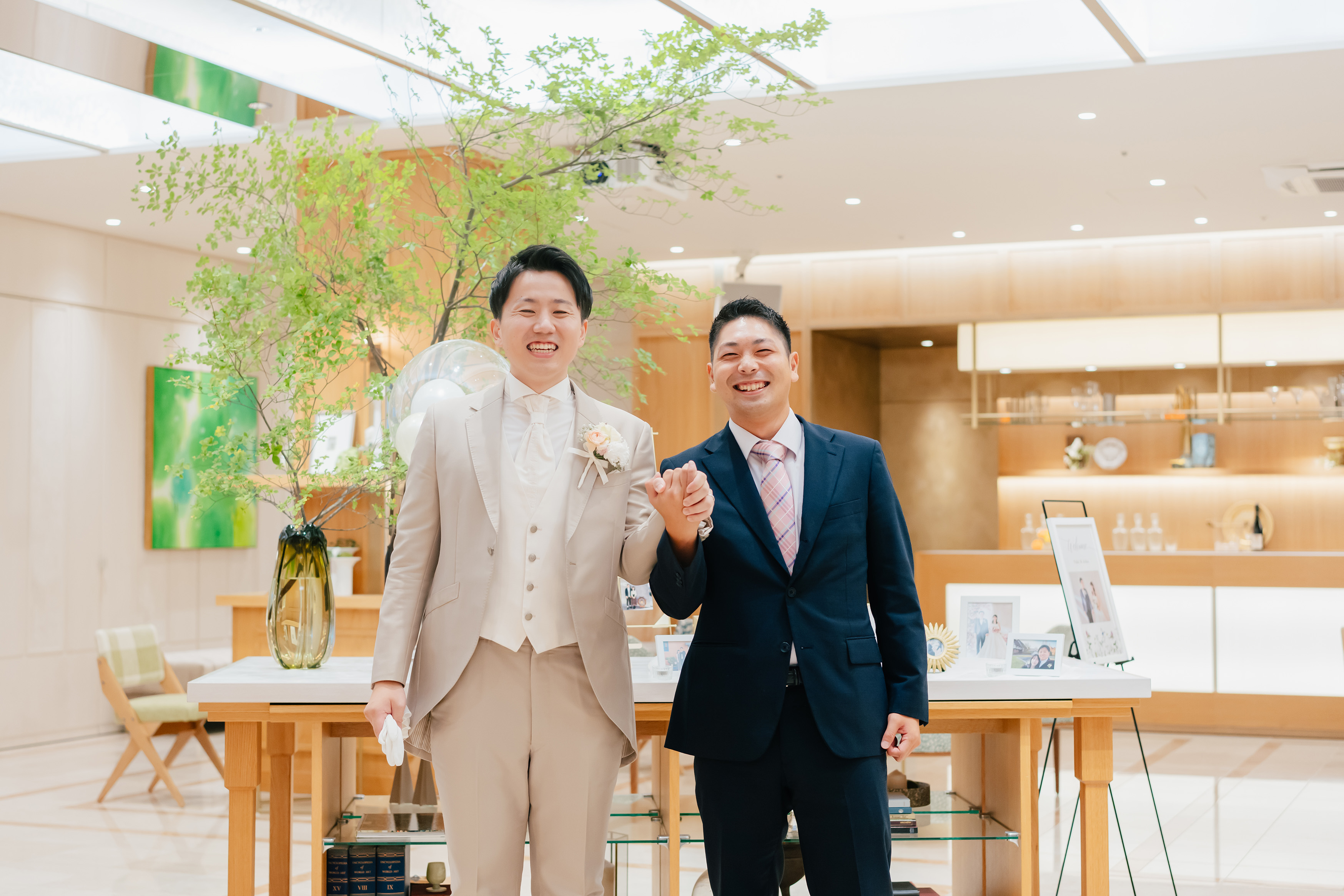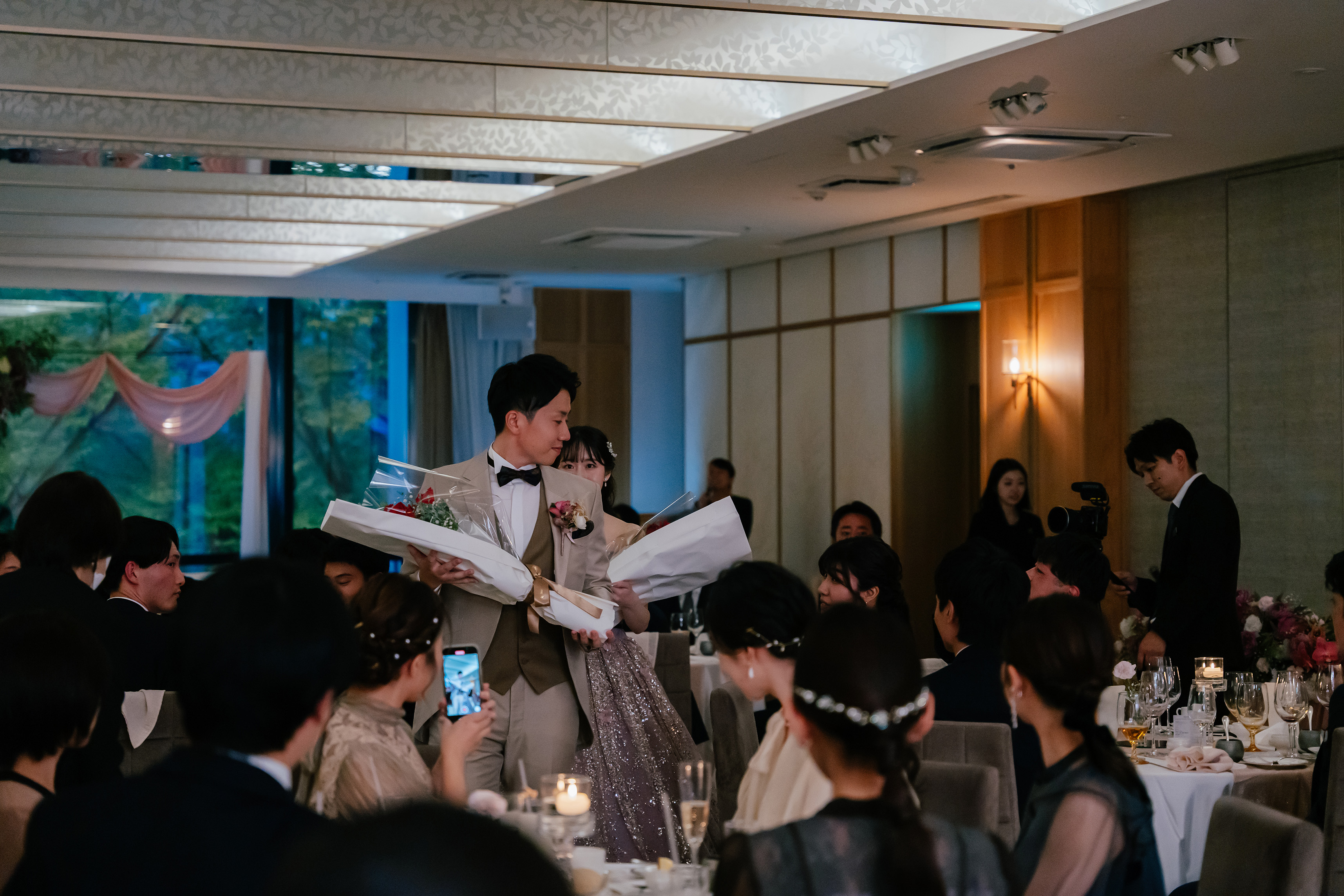「Sharing love and happiness with a thankful heart in a relaxing atomosphere.」 をテーマにご準備を進めたおふたり。 ゲストのみなさまがリラックスして楽しめるよう、 会場はモーヴピンクやホワイトを取り入れて大人かわいい印象に。 また、より近い距離で楽しみたいという思いで設置したフォトスポットでは たくさんの素敵な笑顔を収めることができました。