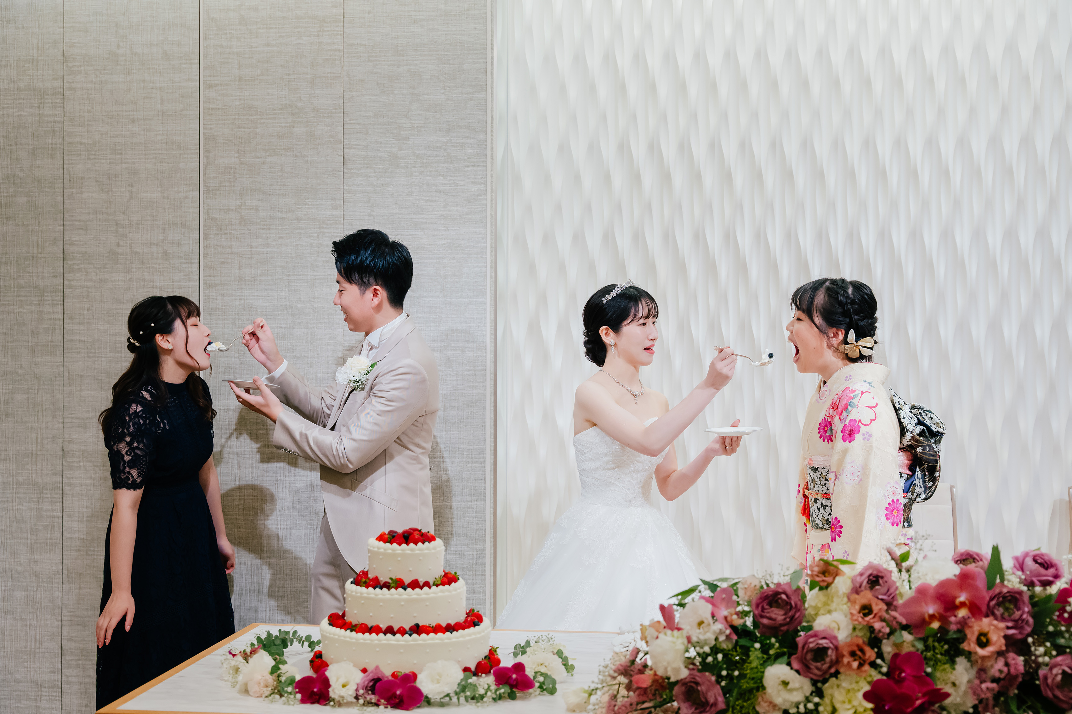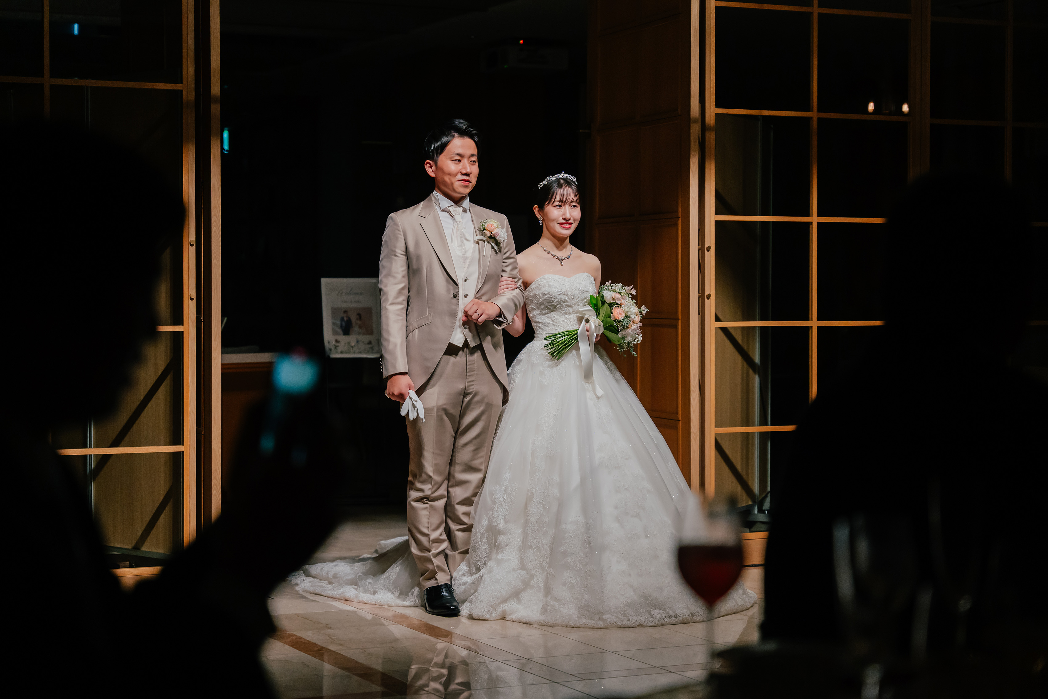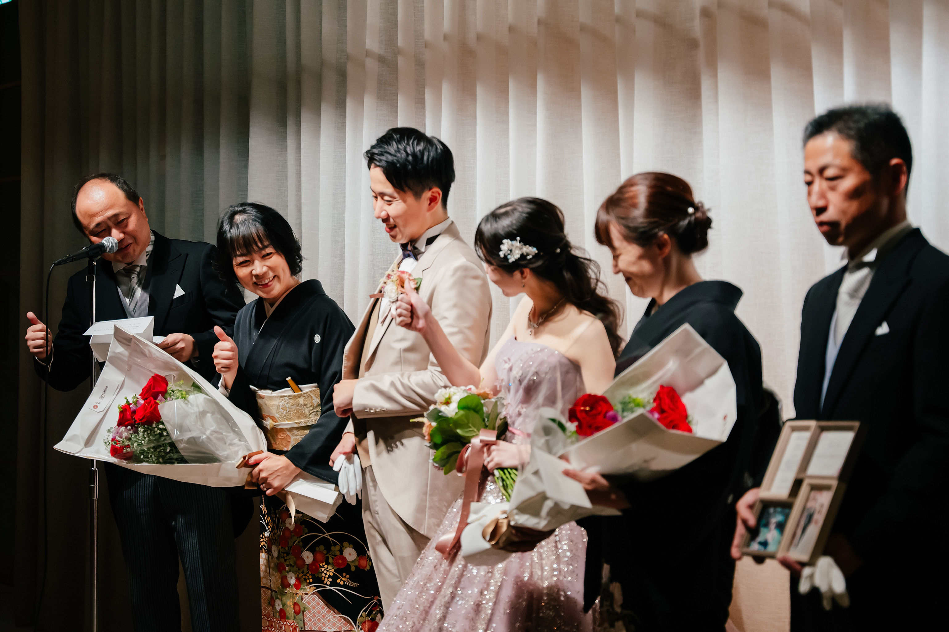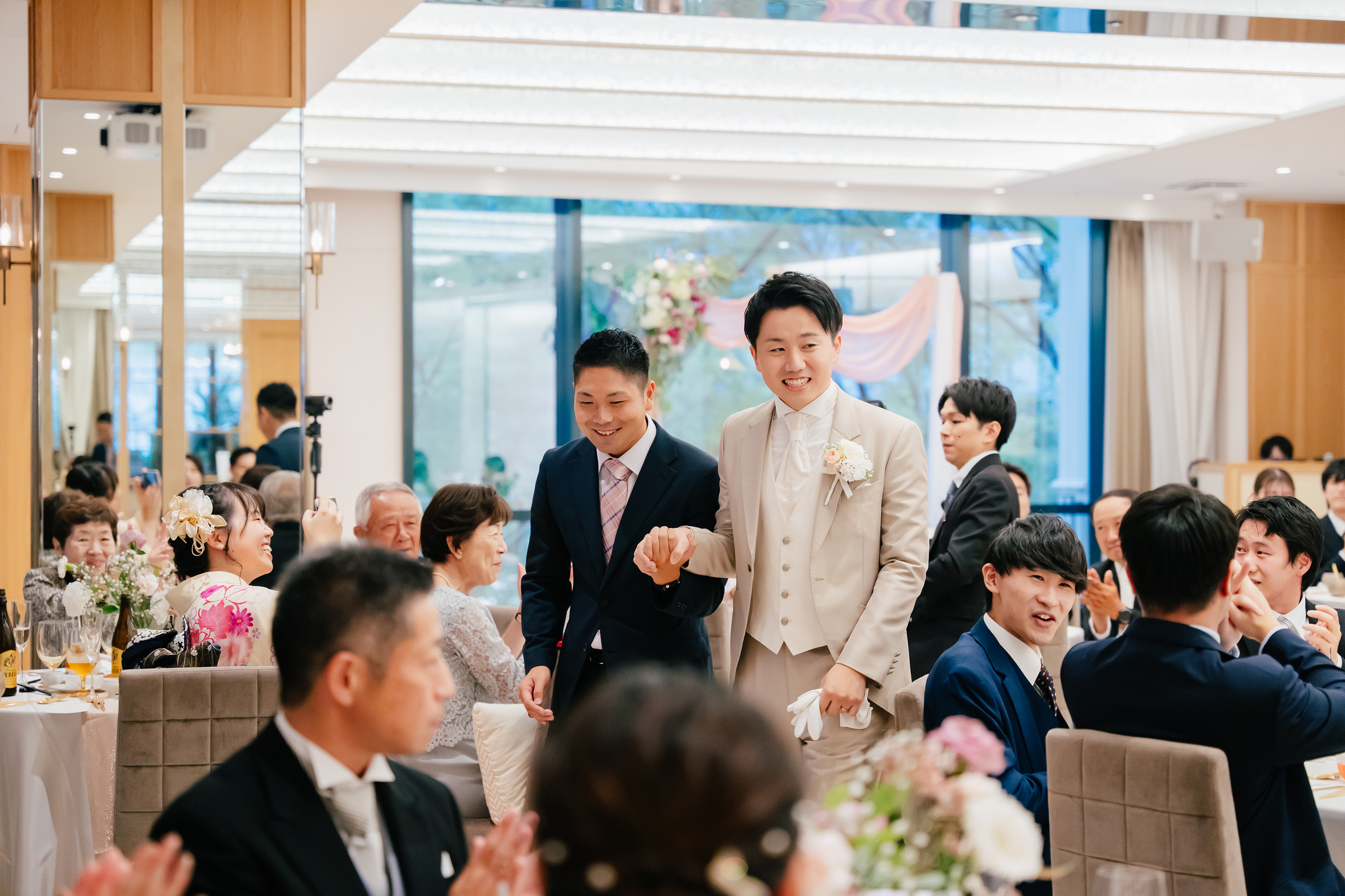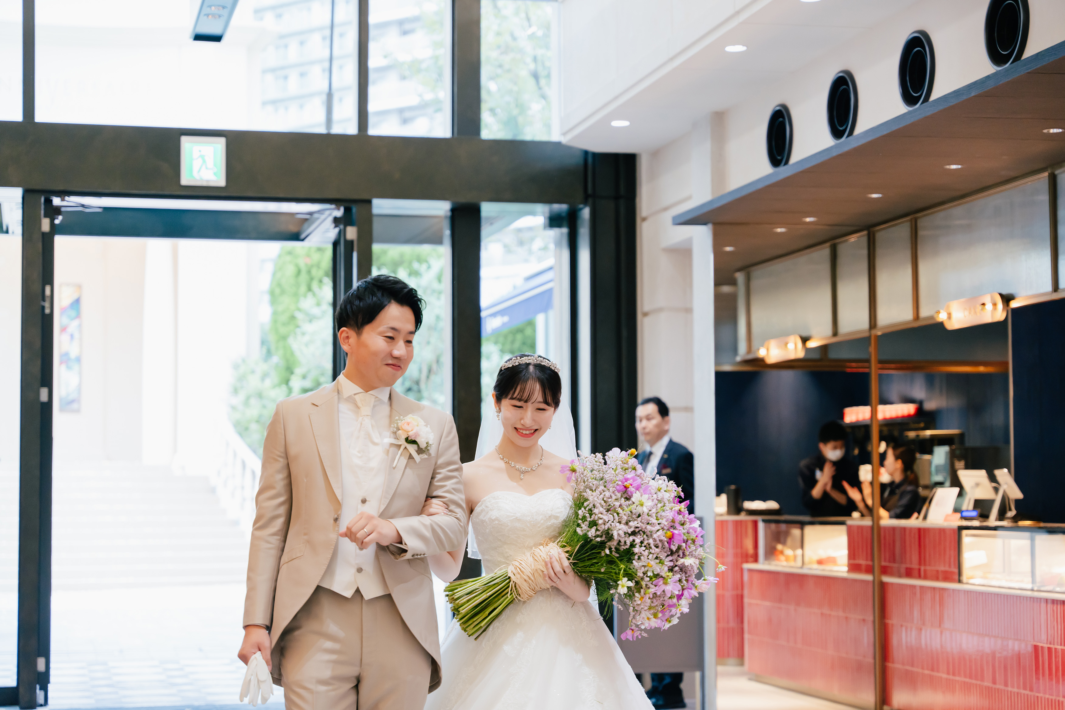 「Sharing love and happiness with a thankful heart in a relaxing atomosphere.」 をテーマにご準備を進めたおふたり。 ゲストのみなさまがリラックスして楽しめるよう、 会場はモーヴピンクやホワイトを取り入れて大人かわいい印象に。 また、より近い距離で楽しみたいという思いで設置したフォトスポットでは たくさんの素敵な笑顔を収めることができました。