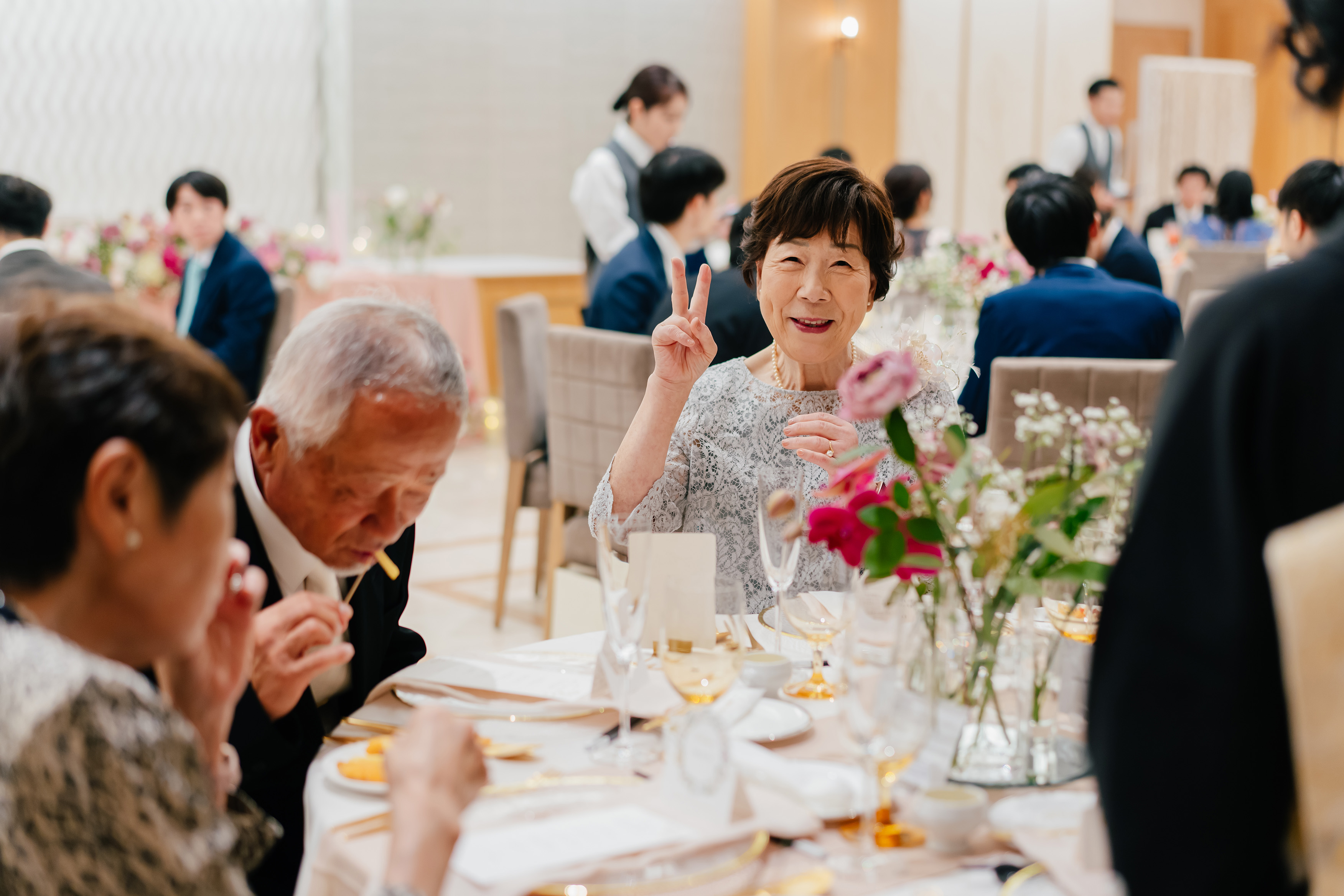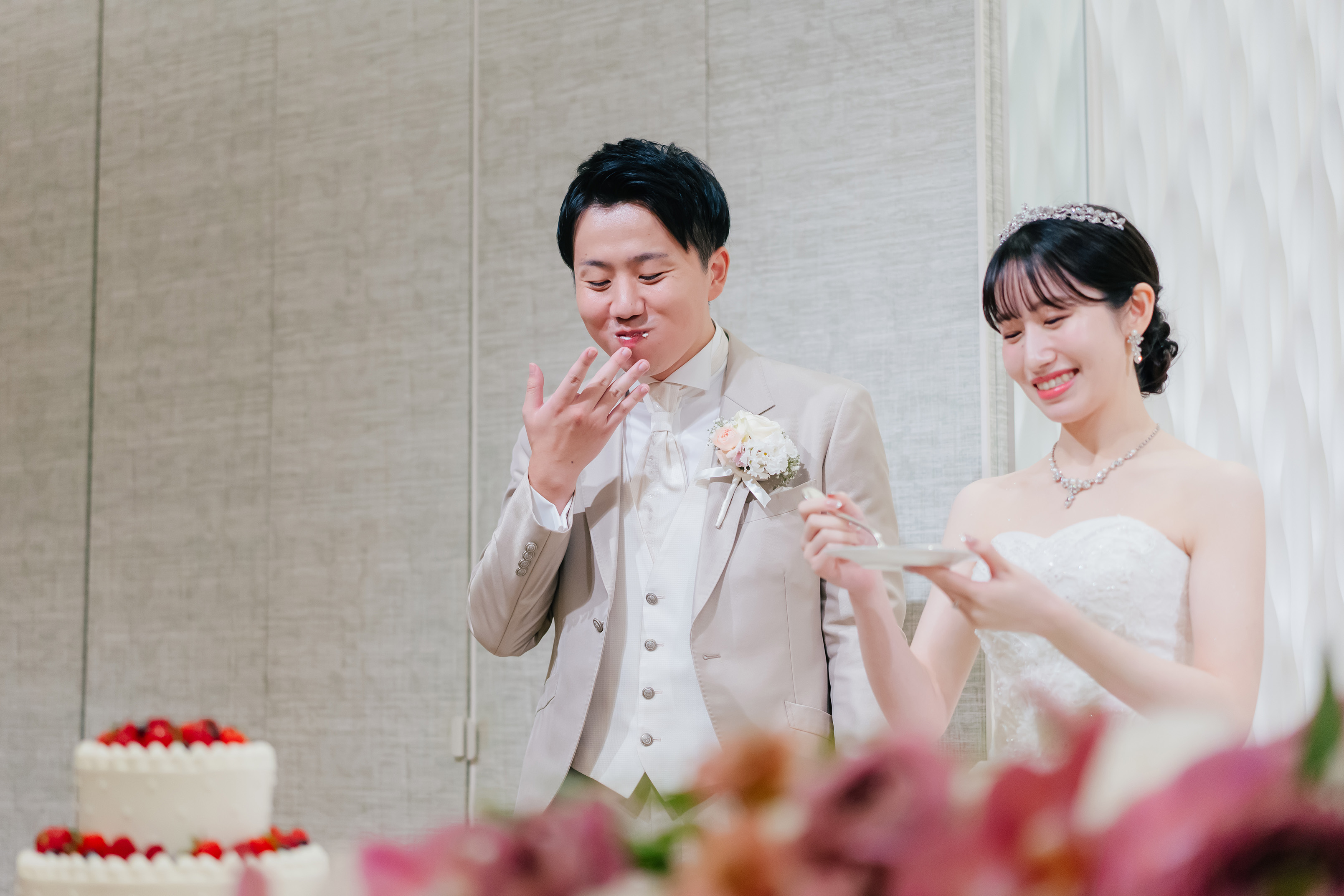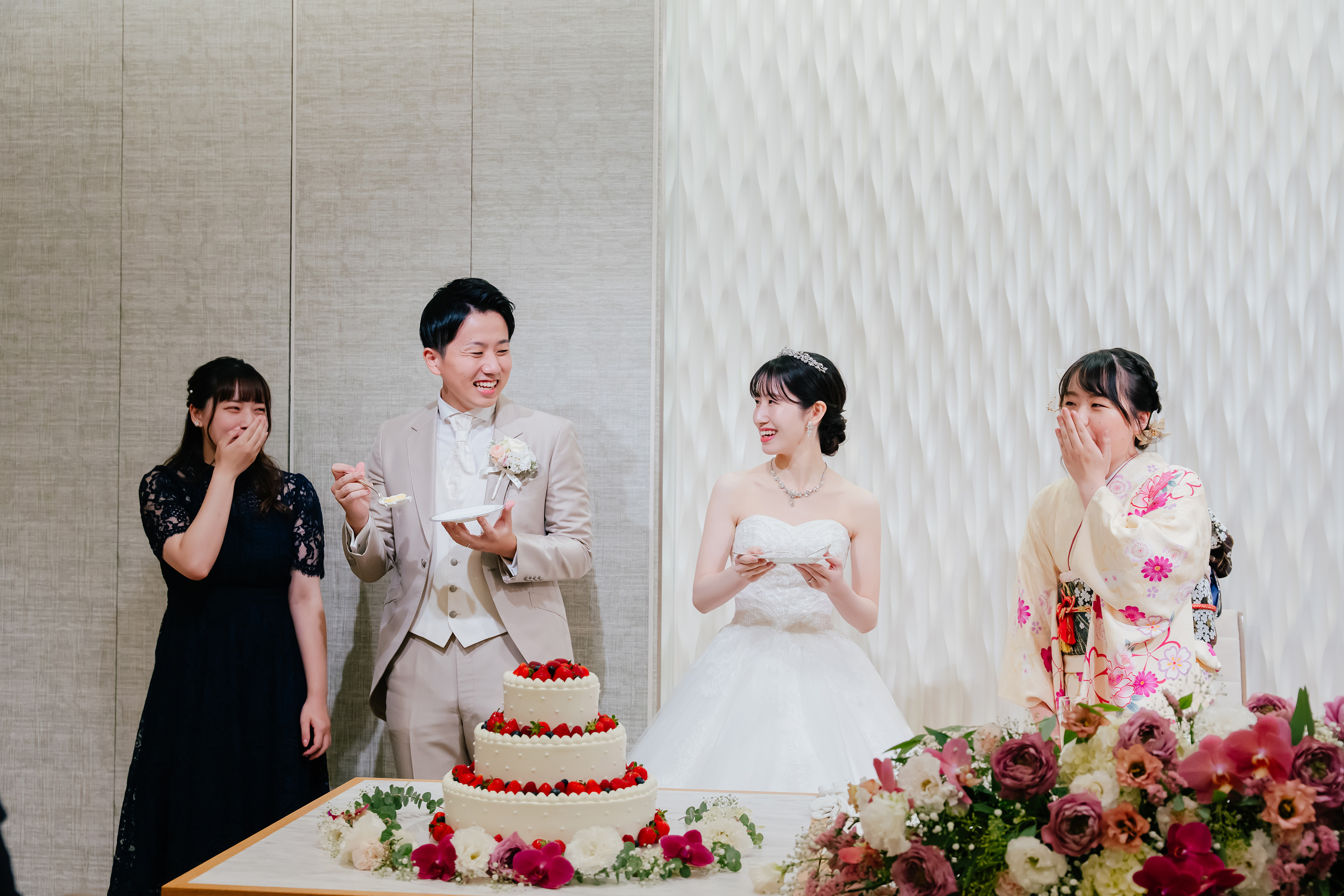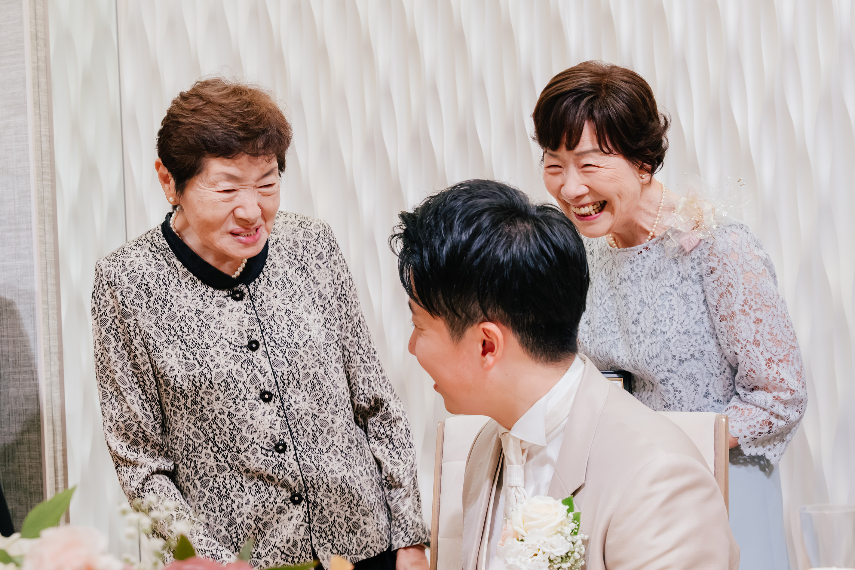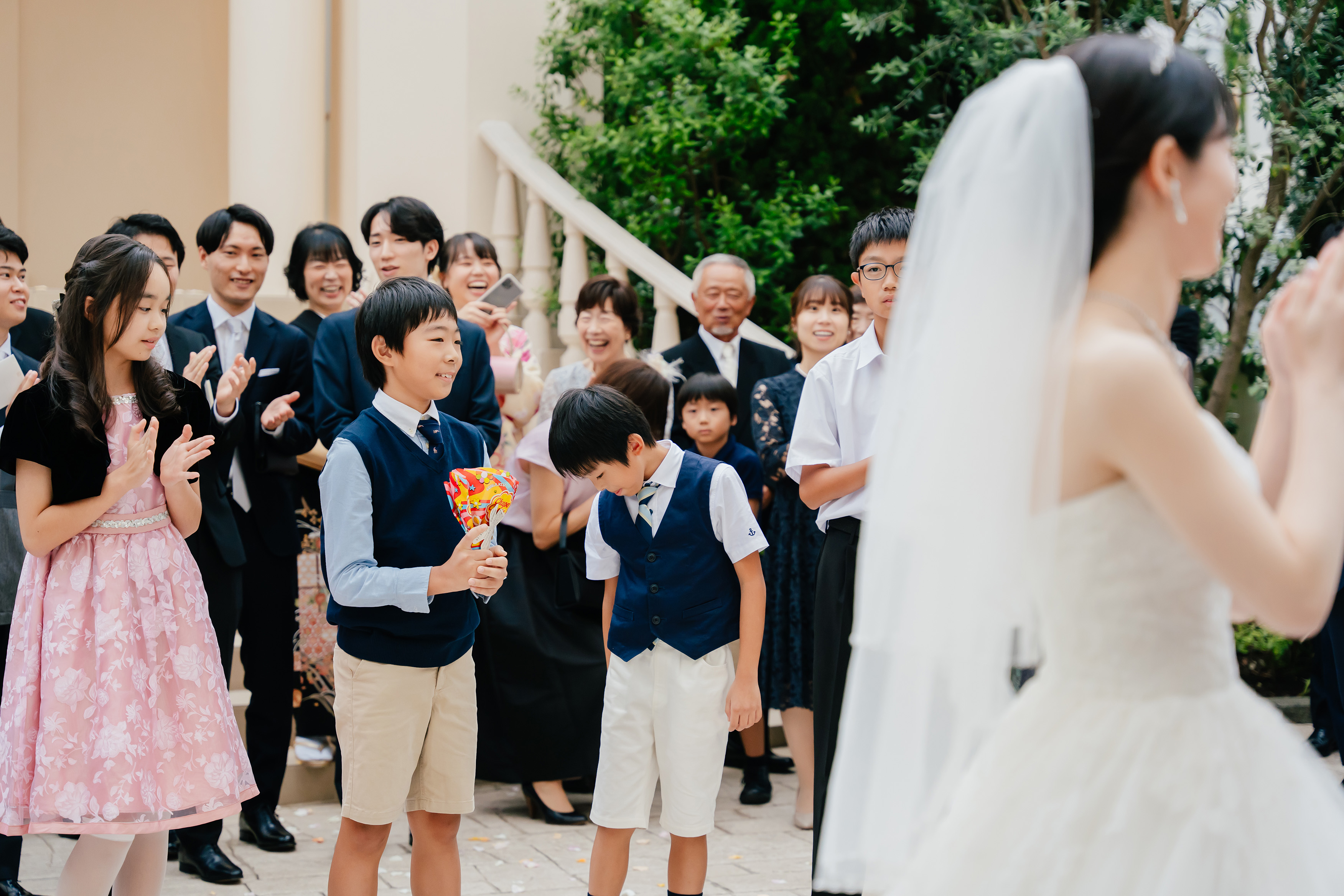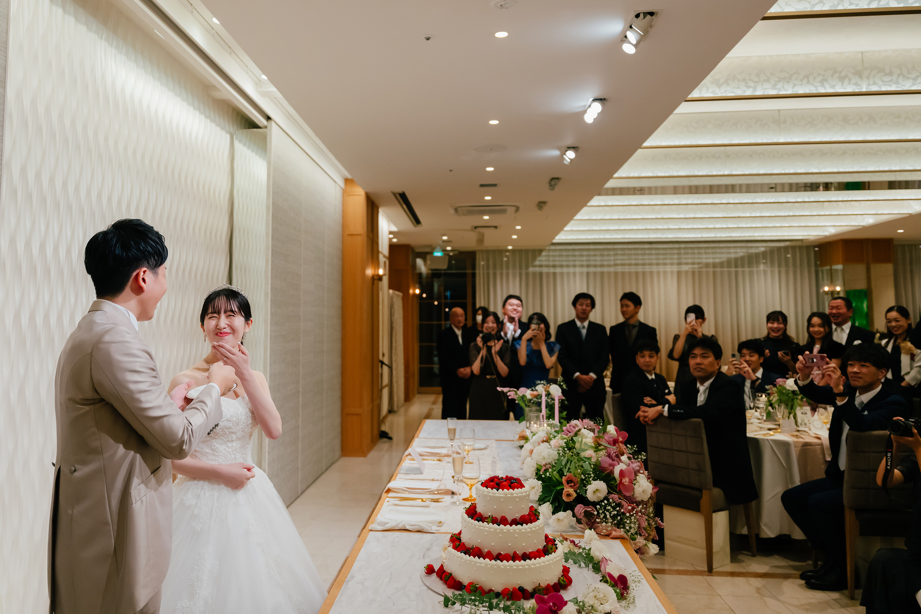「Sharing love and happiness with a thankful heart in a relaxing atomosphere.」 をテーマにご準備を進めたおふたり。 ゲストのみなさまがリラックスして楽しめるよう、 会場はモーヴピンクやホワイトを取り入れて大人かわいい印象に。 また、より近い距離で楽しみたいという思いで設置したフォトスポットでは たくさんの素敵な笑顔を収めることができました。