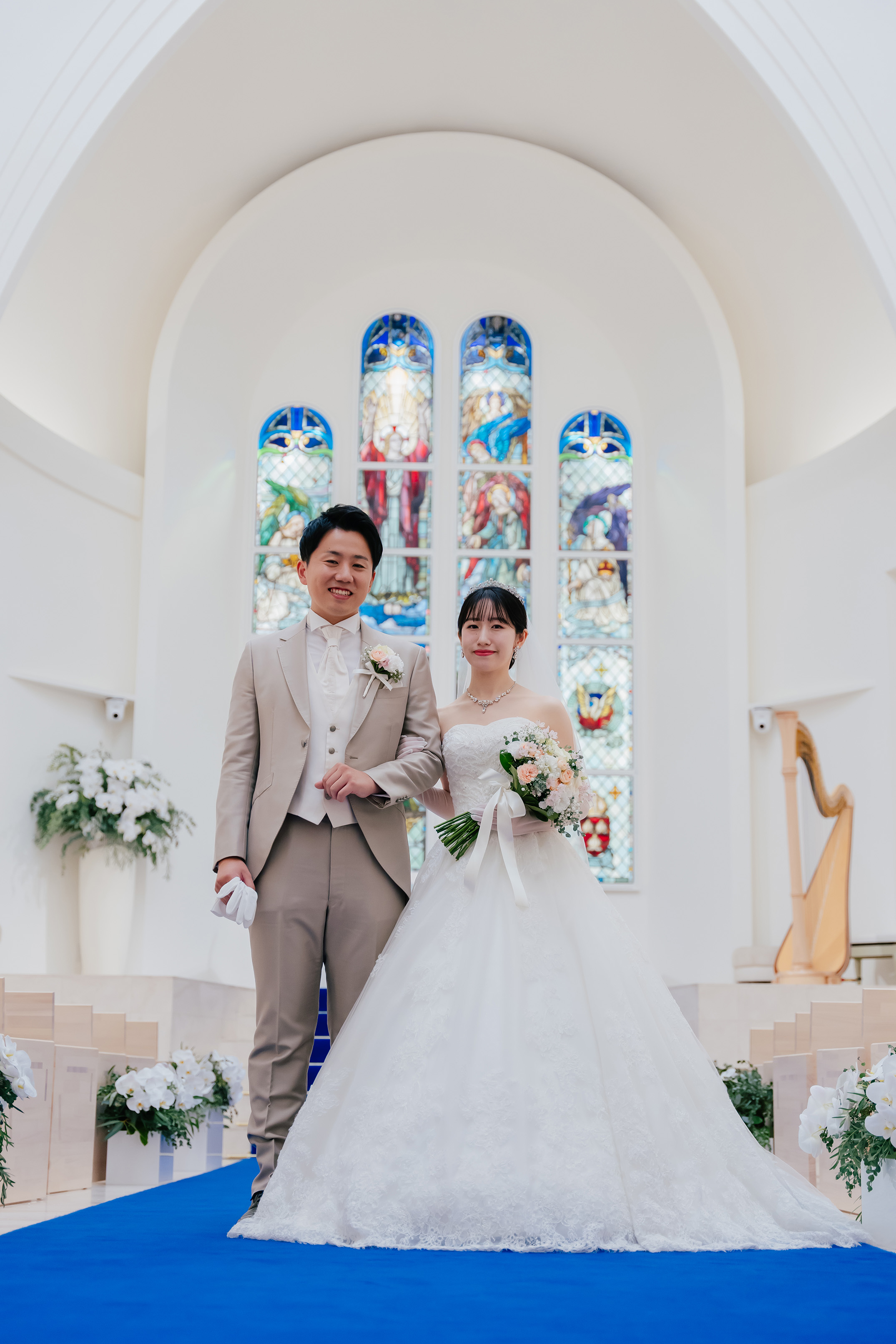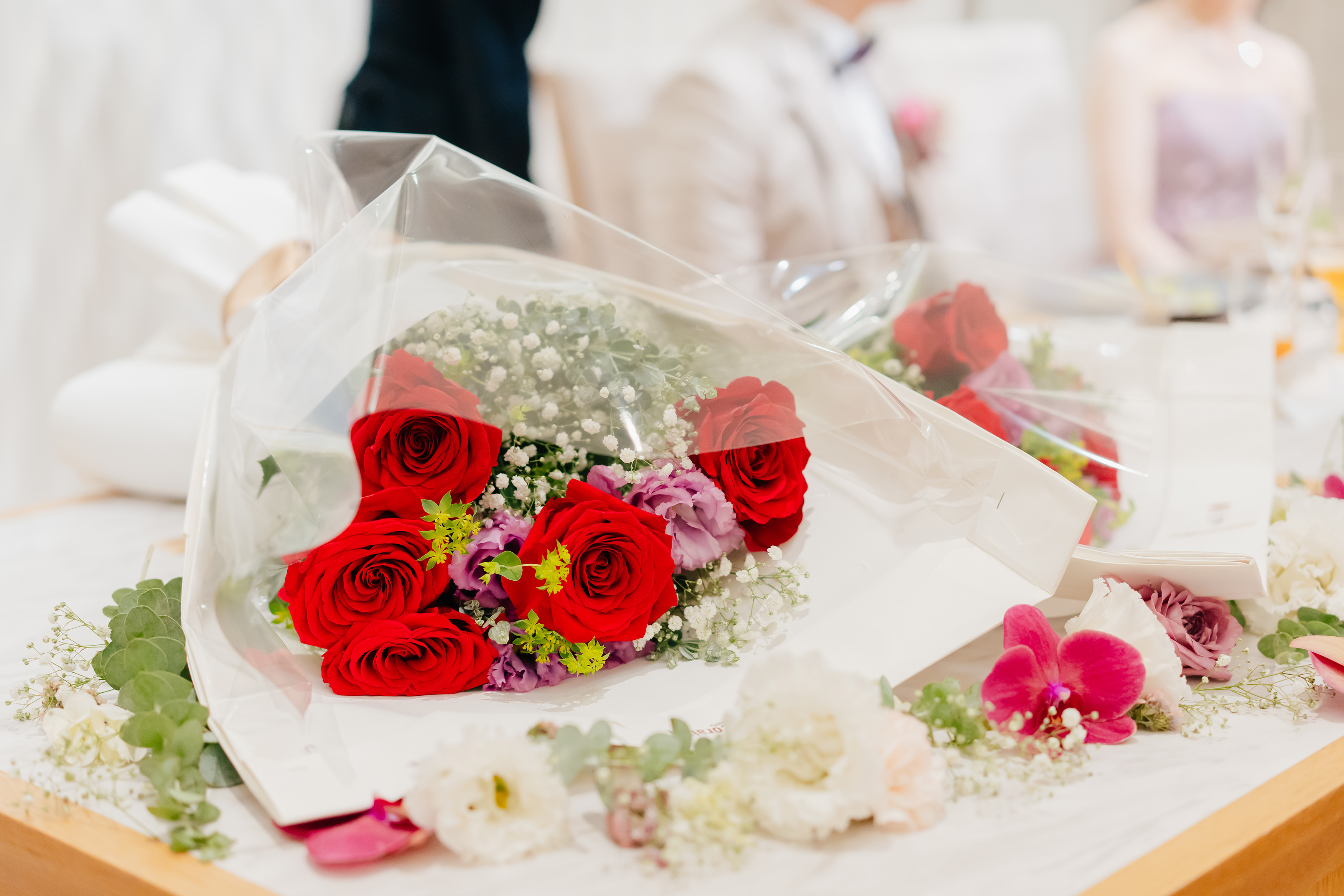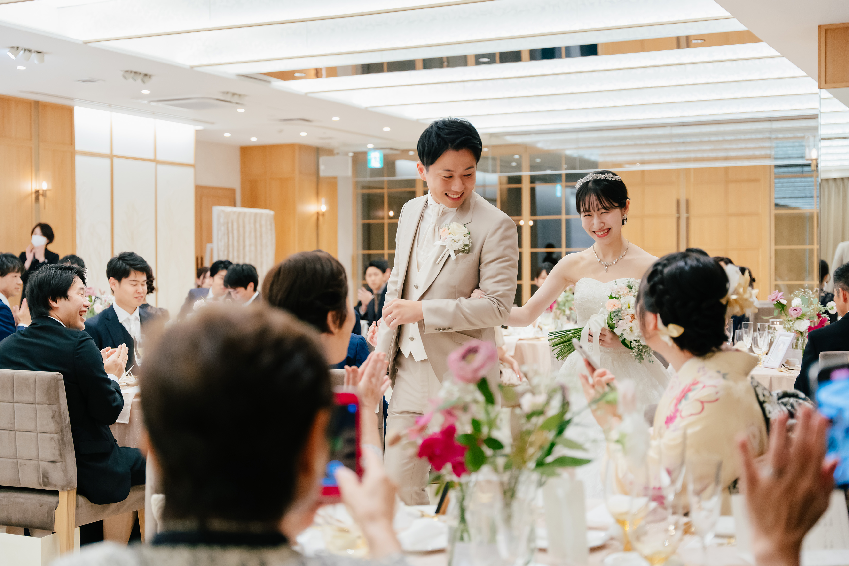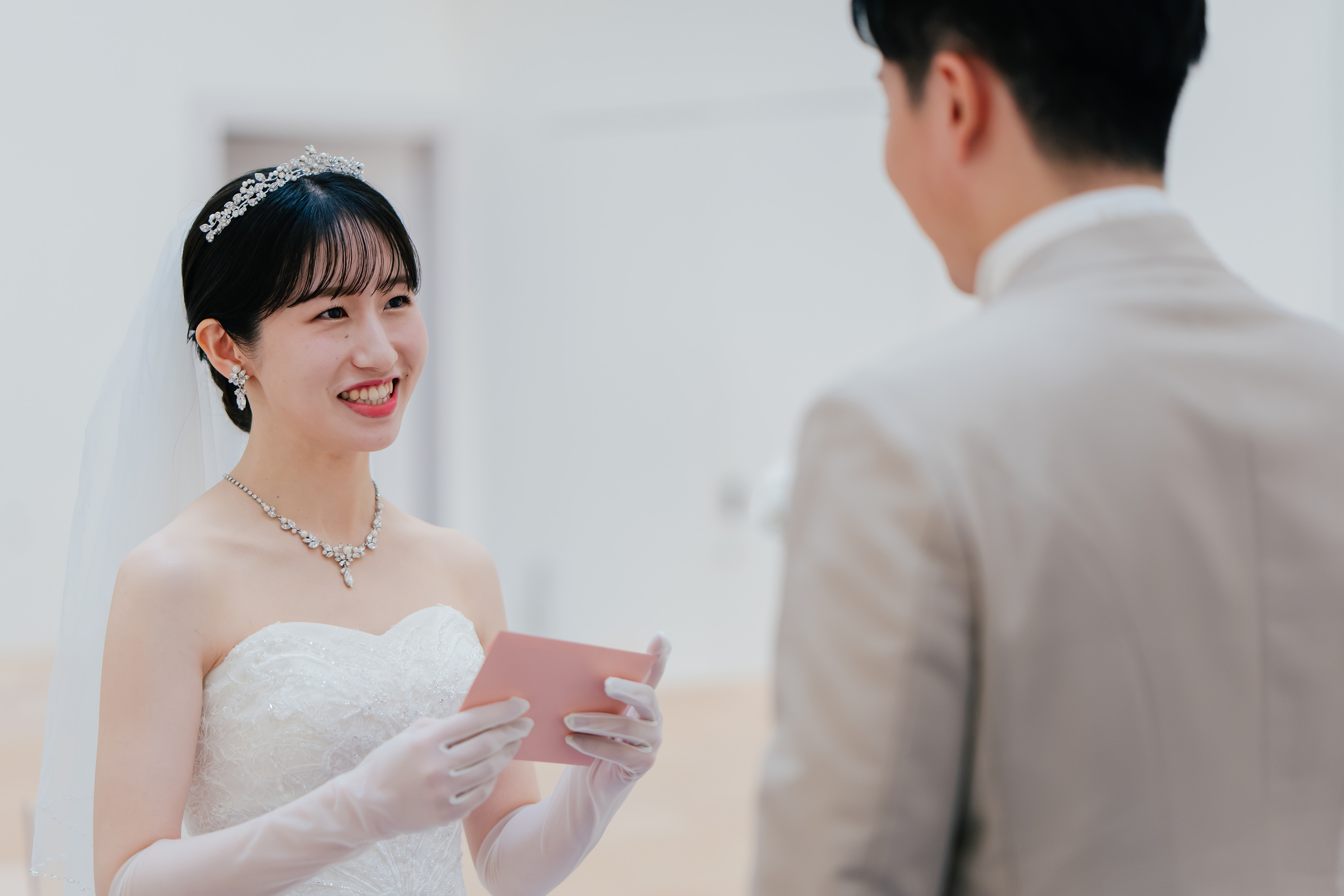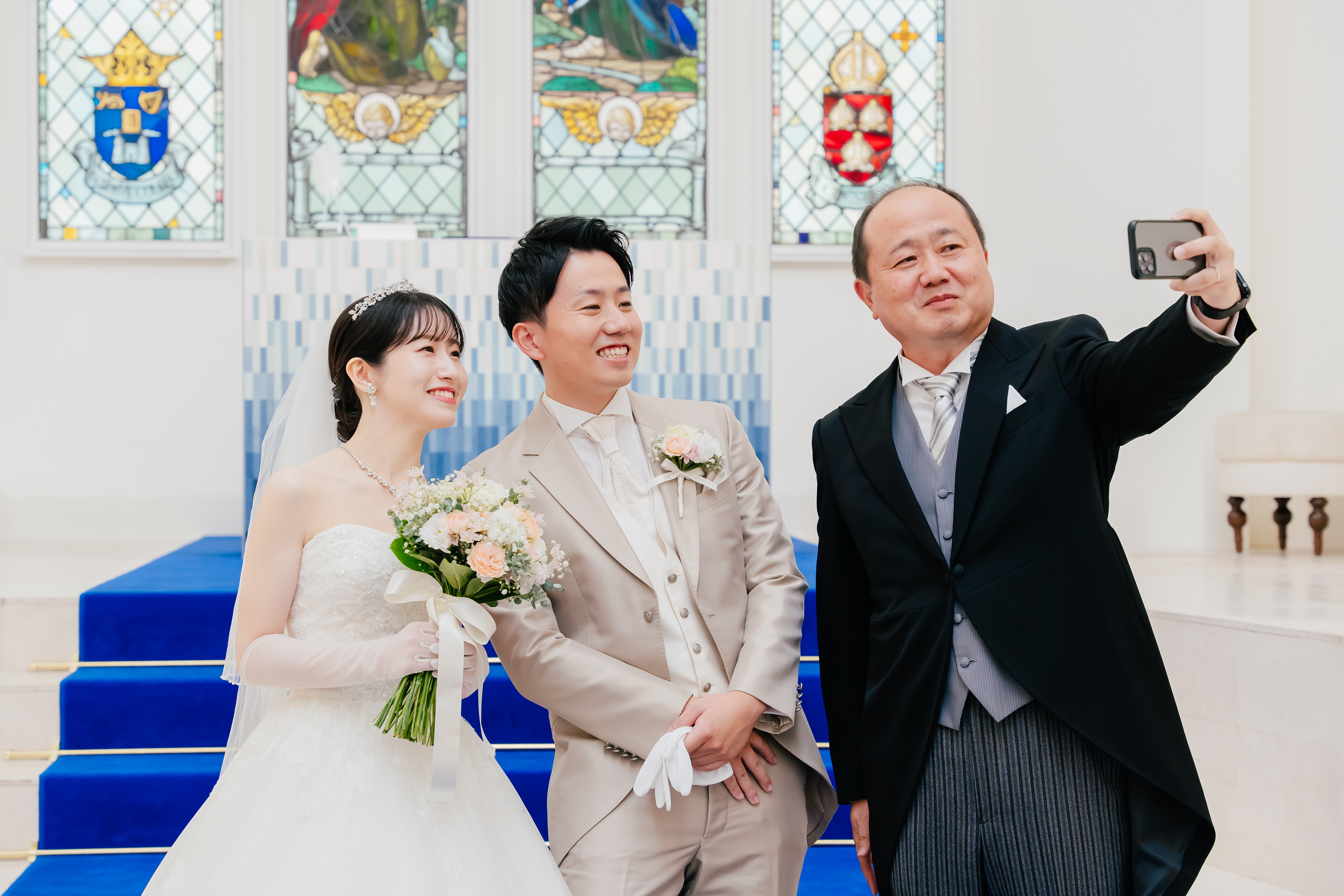 「Sharing love and happiness with a thankful heart in a relaxing atomosphere.」 をテーマにご準備を進めたおふたり。 ゲストのみなさまがリラックスして楽しめるよう、 会場はモーヴピンクやホワイトを取り入れて大人かわいい印象に。 また、より近い距離で楽しみたいという思いで設置したフォトスポットでは たくさんの素敵な笑顔を収めることができました。