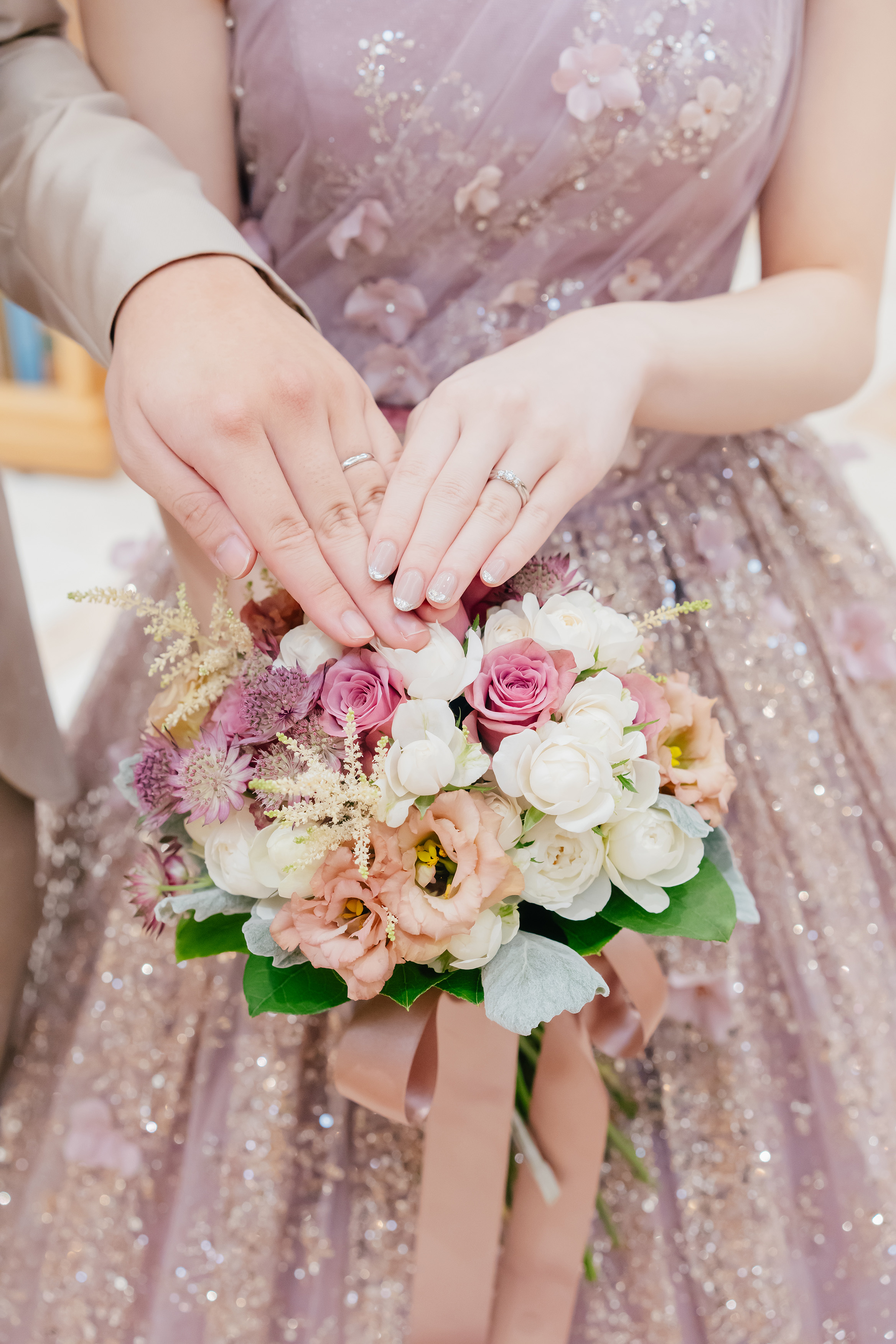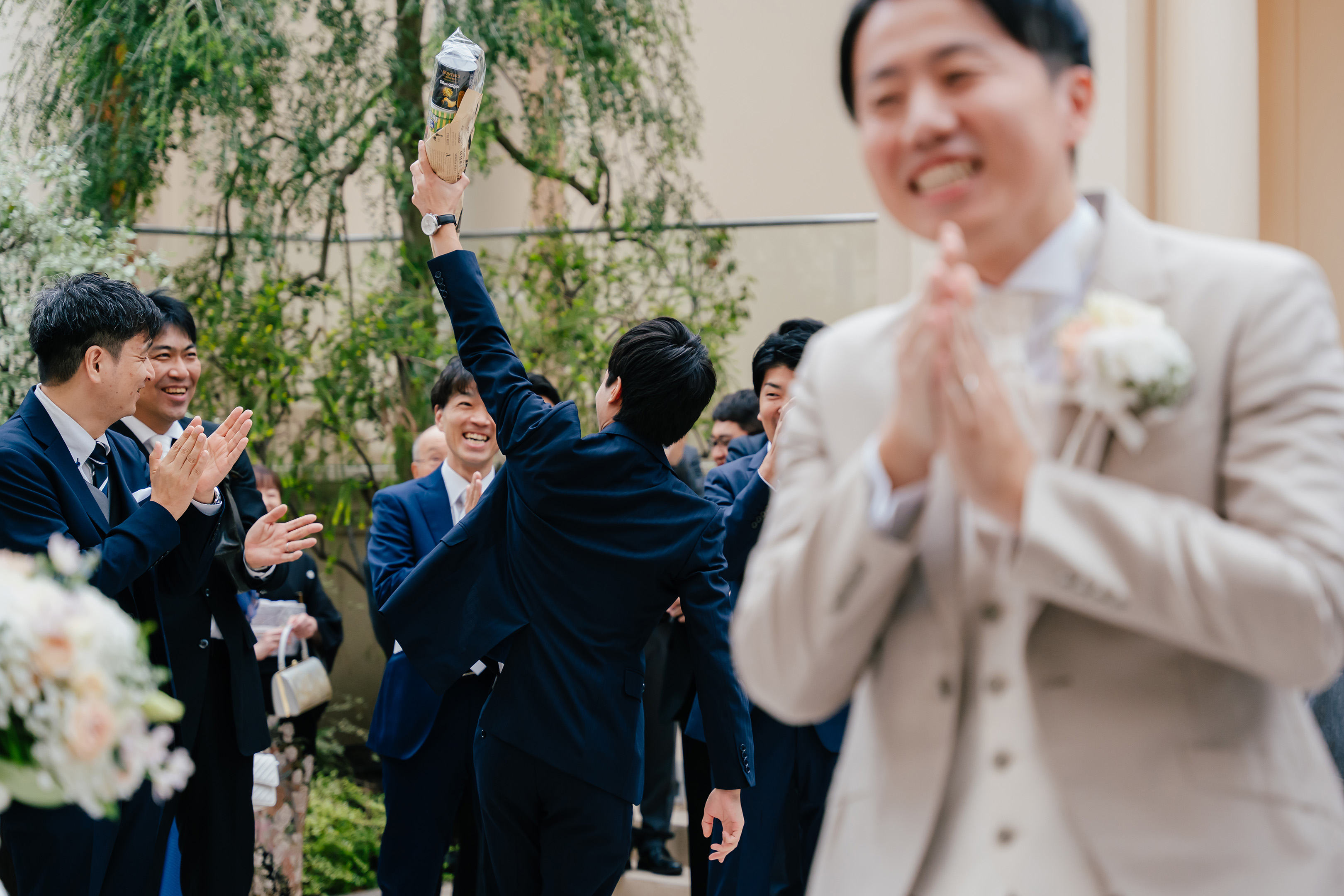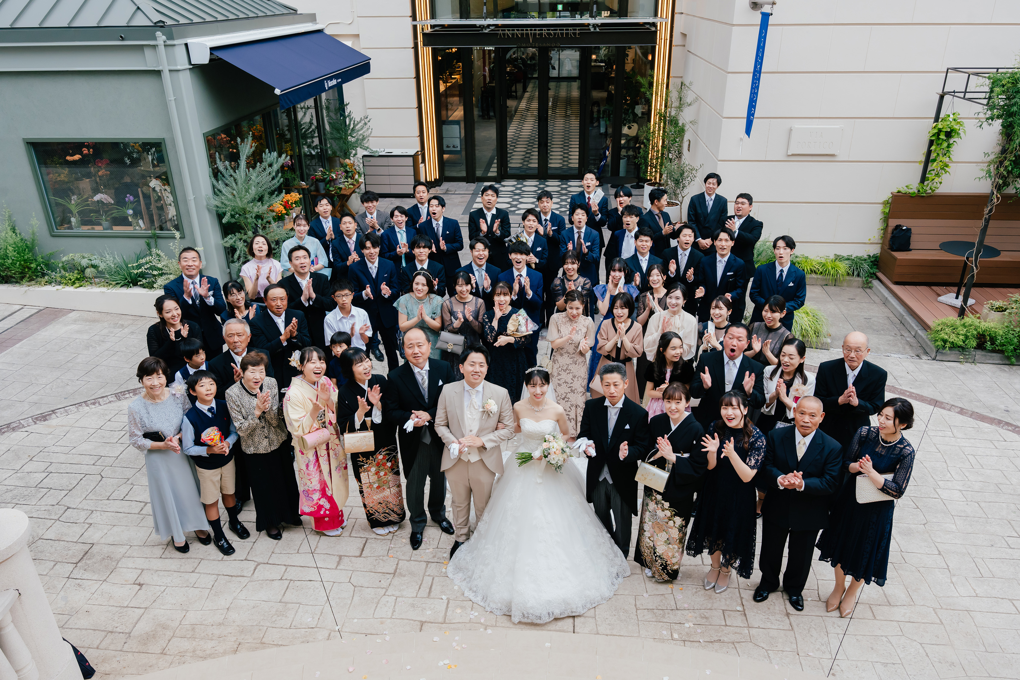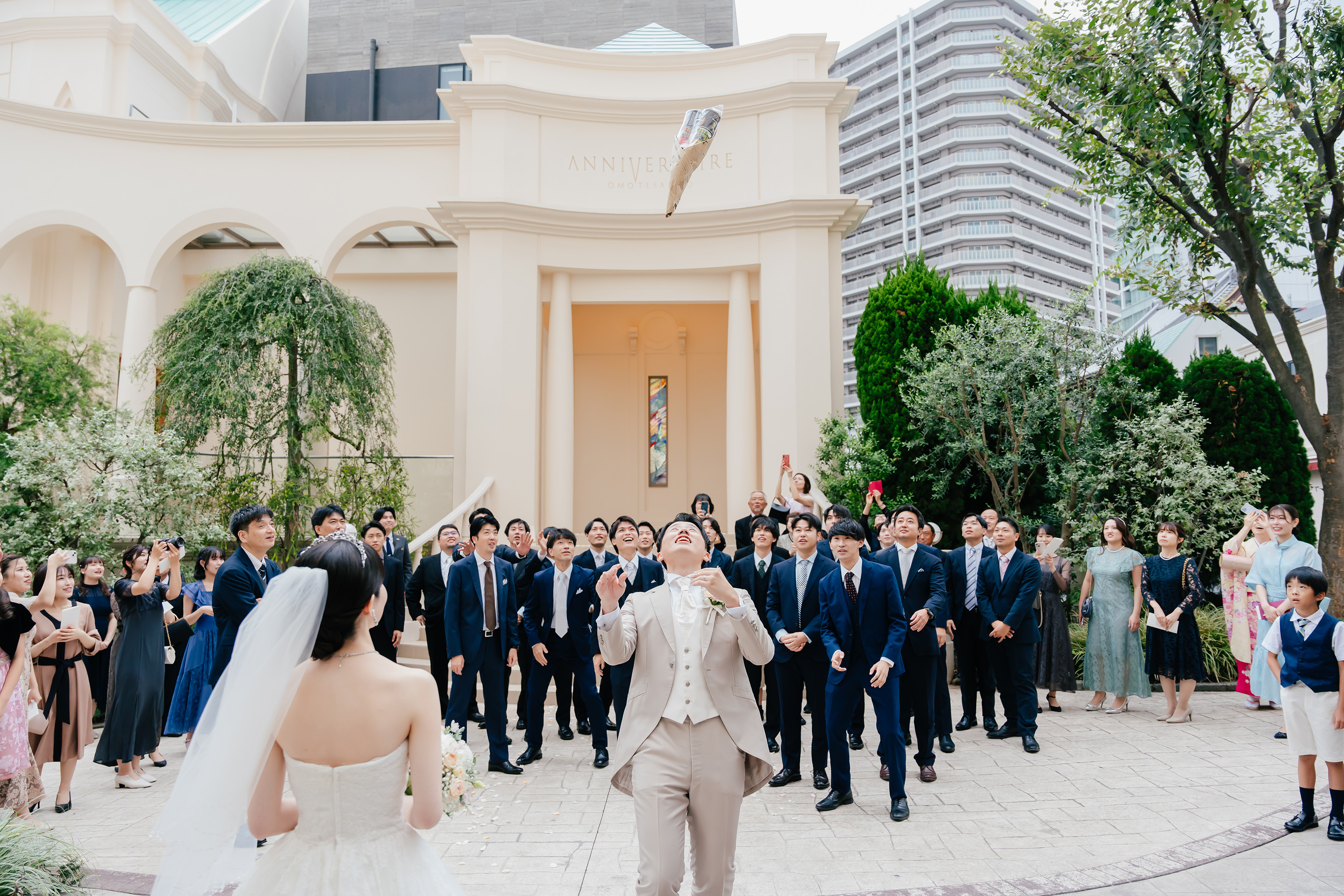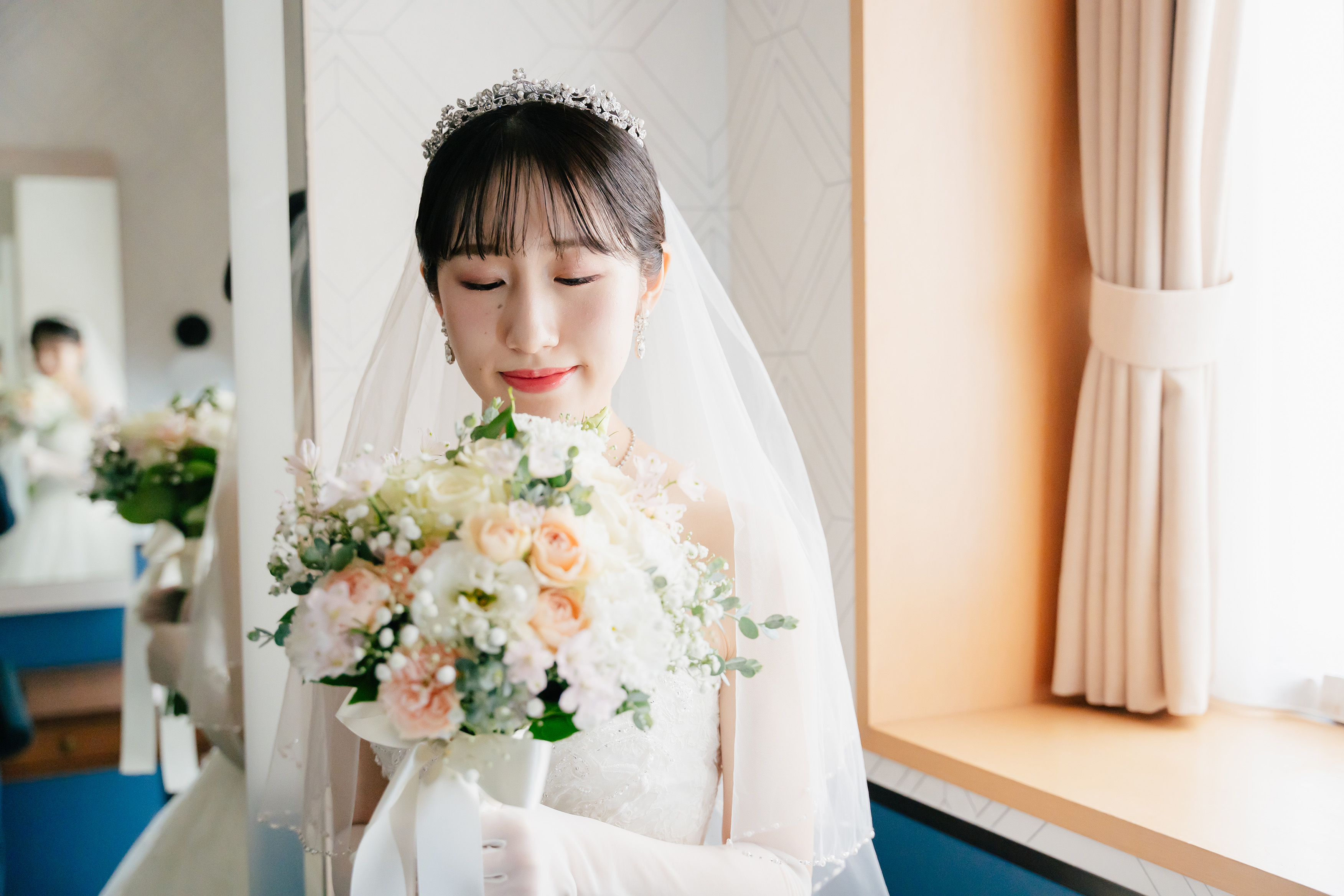 「Sharing love and happiness with a thankful heart in a relaxing atomosphere.」 をテーマにご準備を進めたおふたり。 ゲストのみなさまがリラックスして楽しめるよう、 会場はモーヴピンクやホワイトを取り入れて大人かわいい印象に。 また、より近い距離で楽しみたいという思いで設置したフォトスポットでは たくさんの素敵な笑顔を収めることができました。