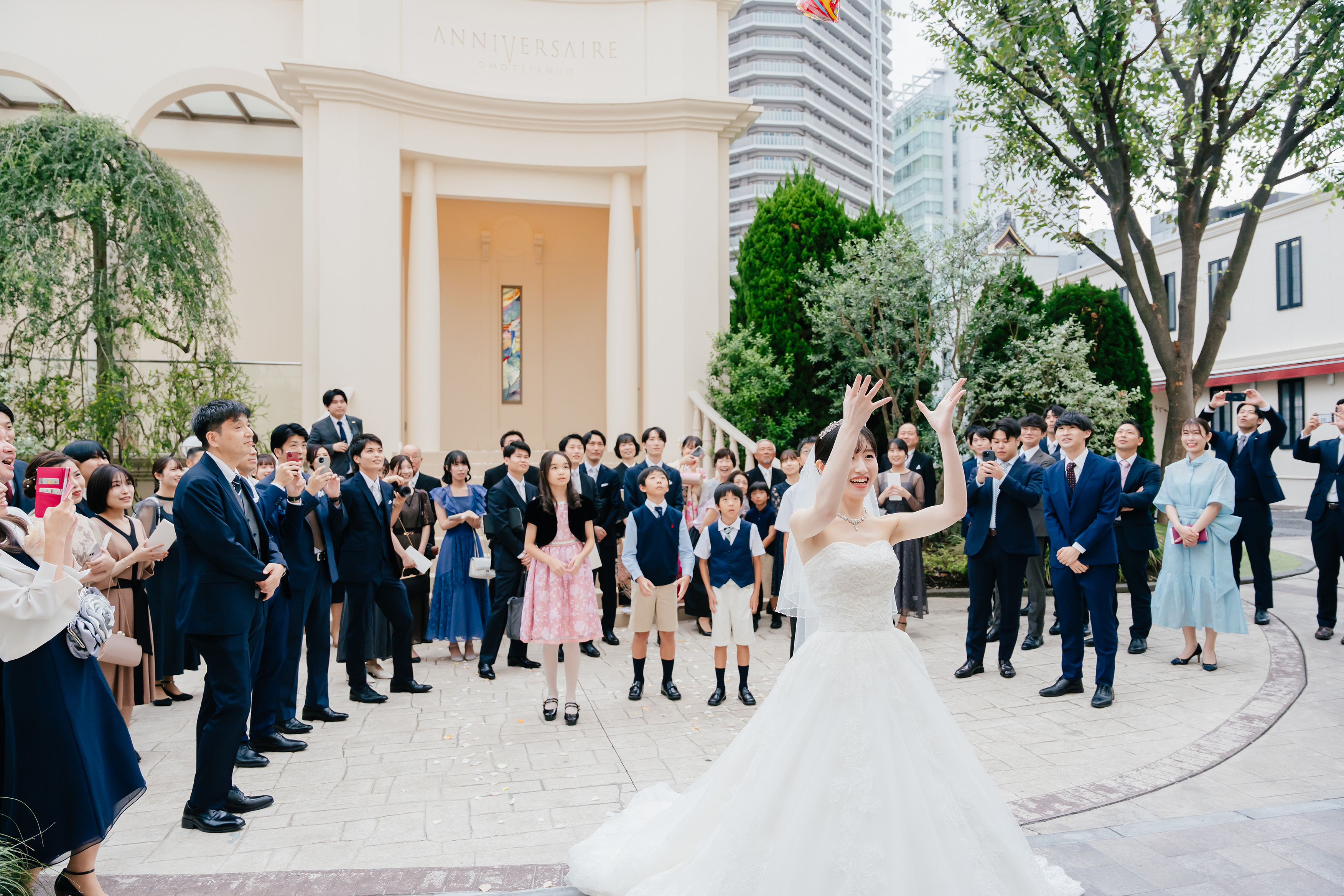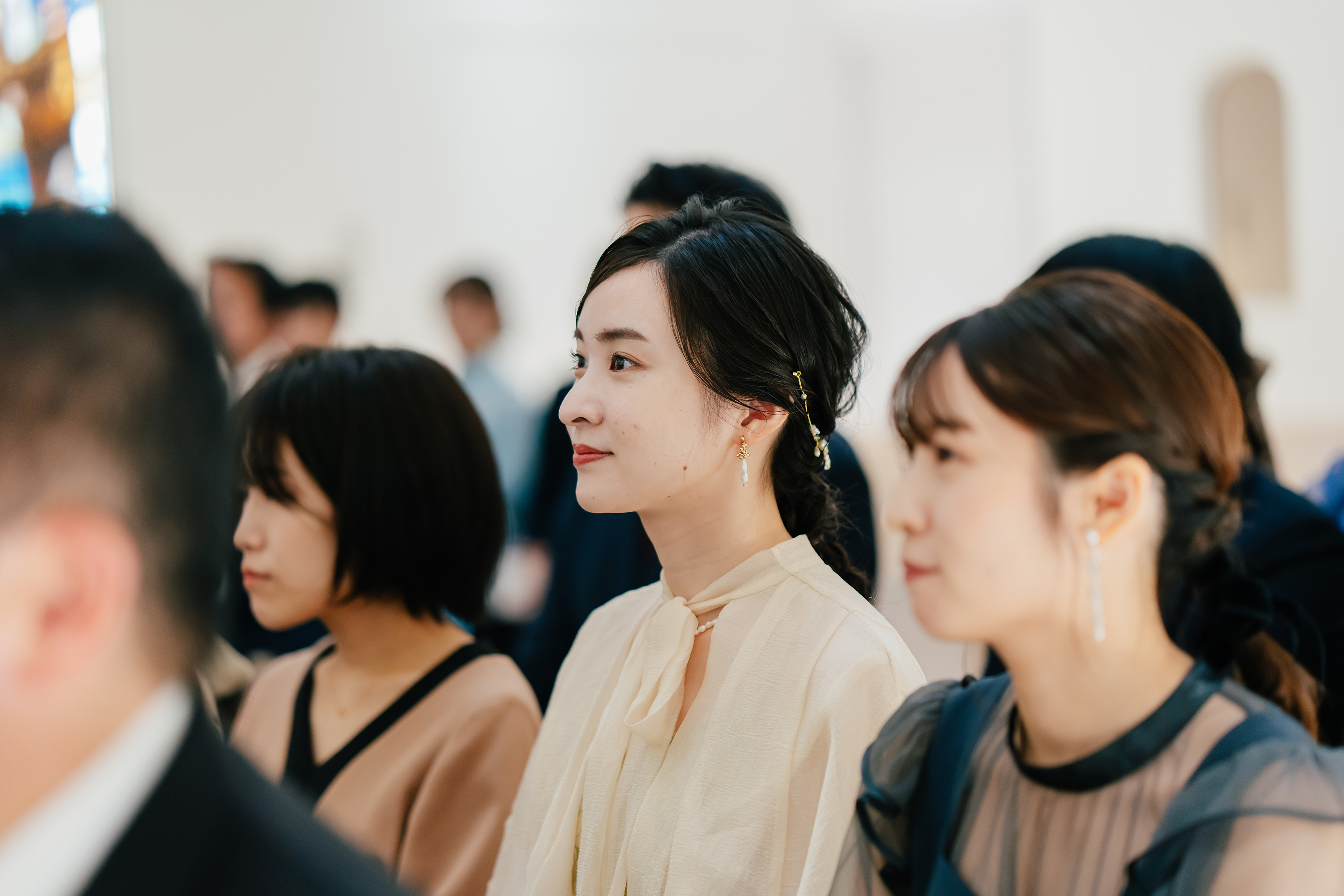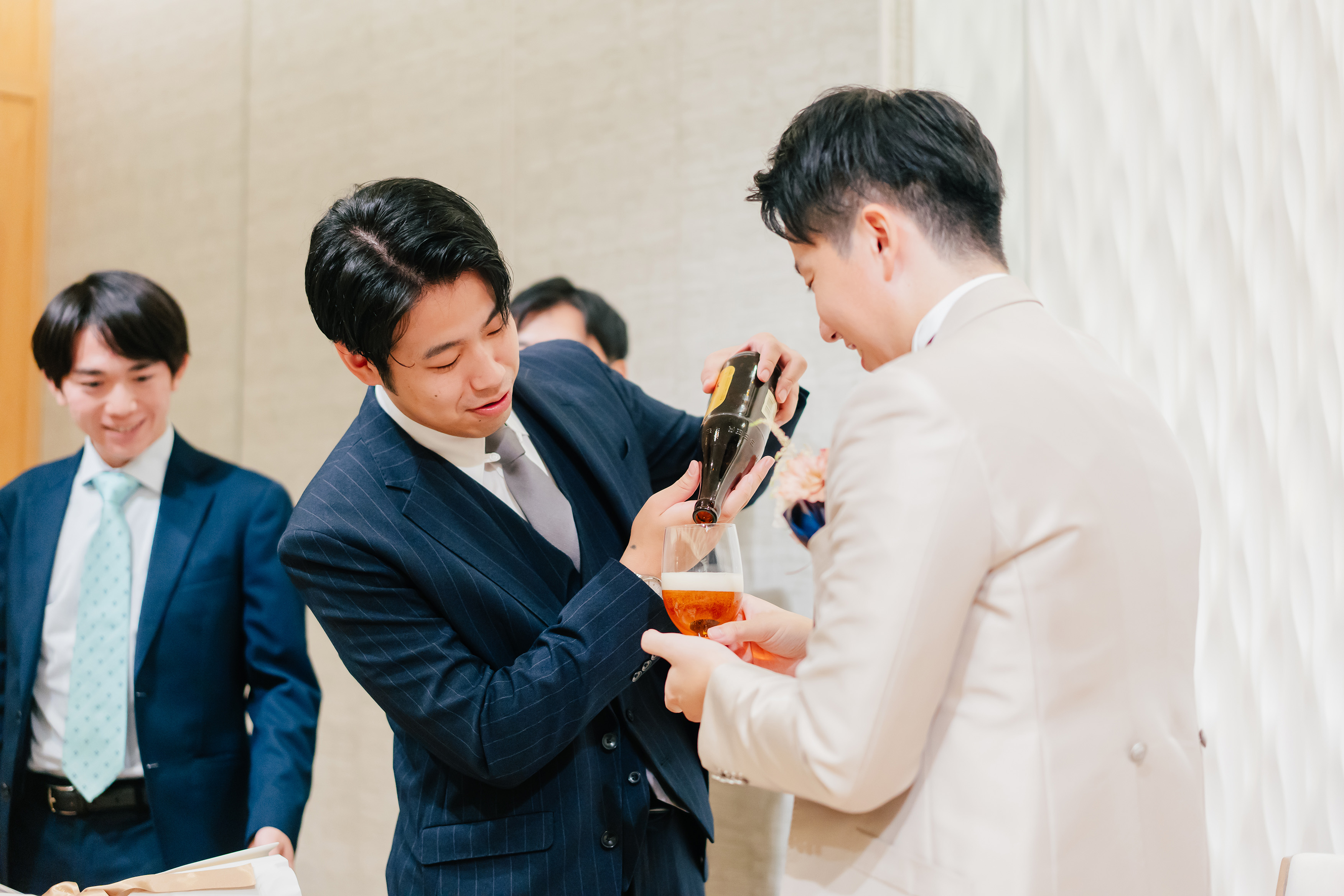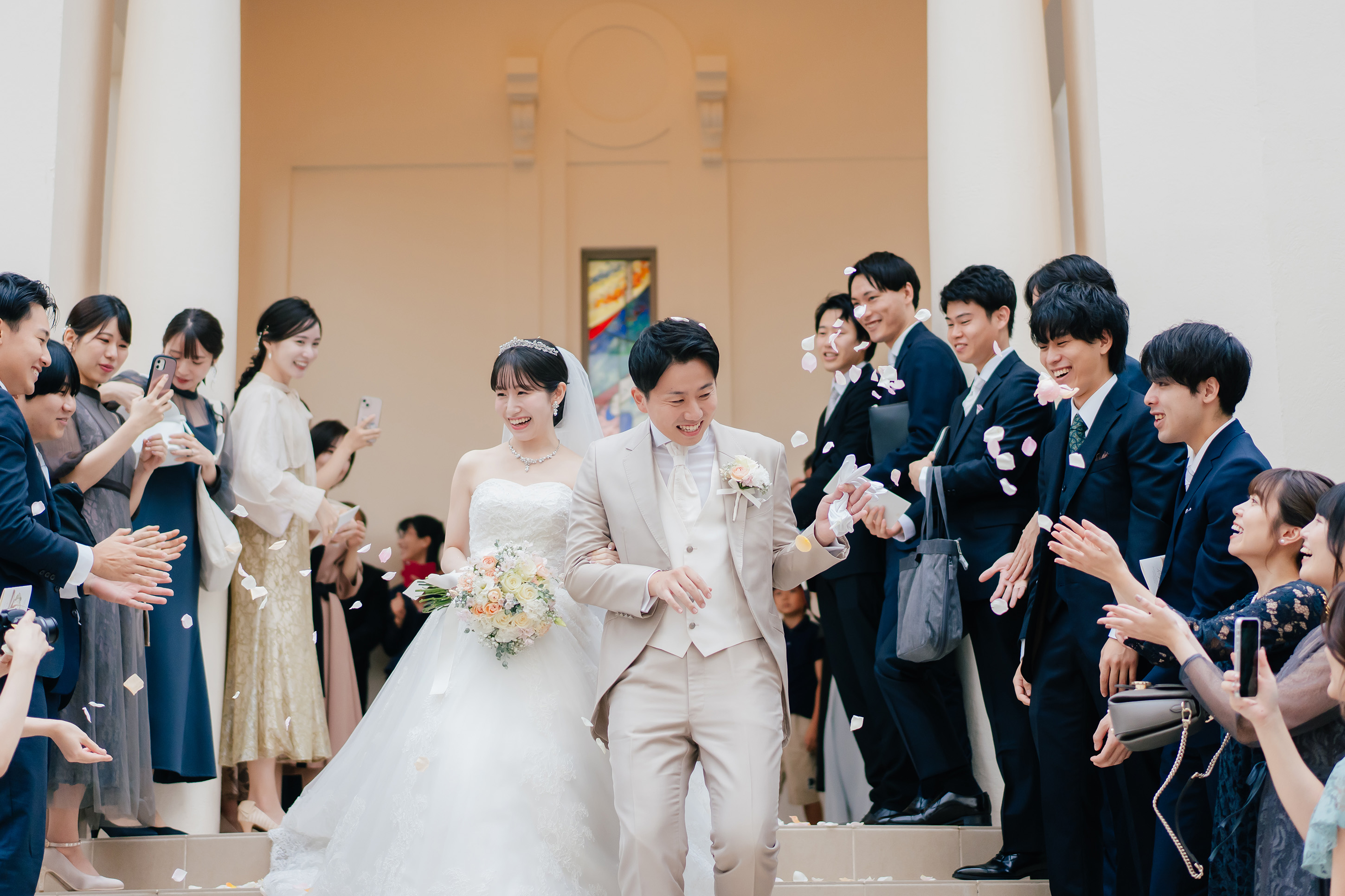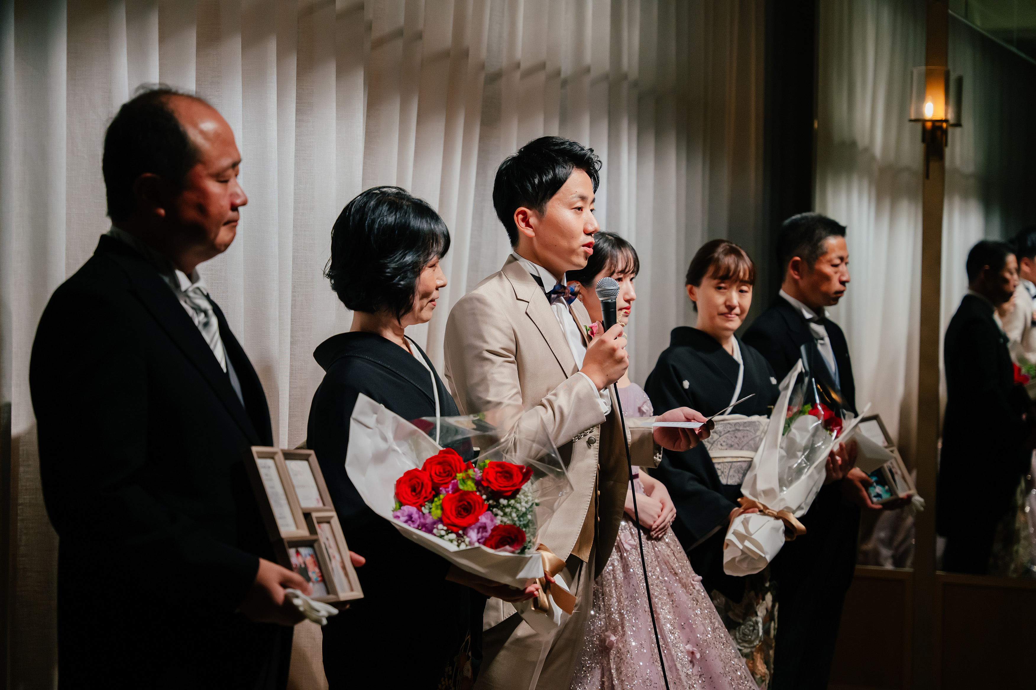 「Sharing love and happiness with a thankful heart in a relaxing atomosphere.」 をテーマにご準備を進めたおふたり。 ゲストのみなさまがリラックスして楽しめるよう、 会場はモーヴピンクやホワイトを取り入れて大人かわいい印象に。 また、より近い距離で楽しみたいという思いで設置したフォトスポットでは たくさんの素敵な笑顔を収めることができました。