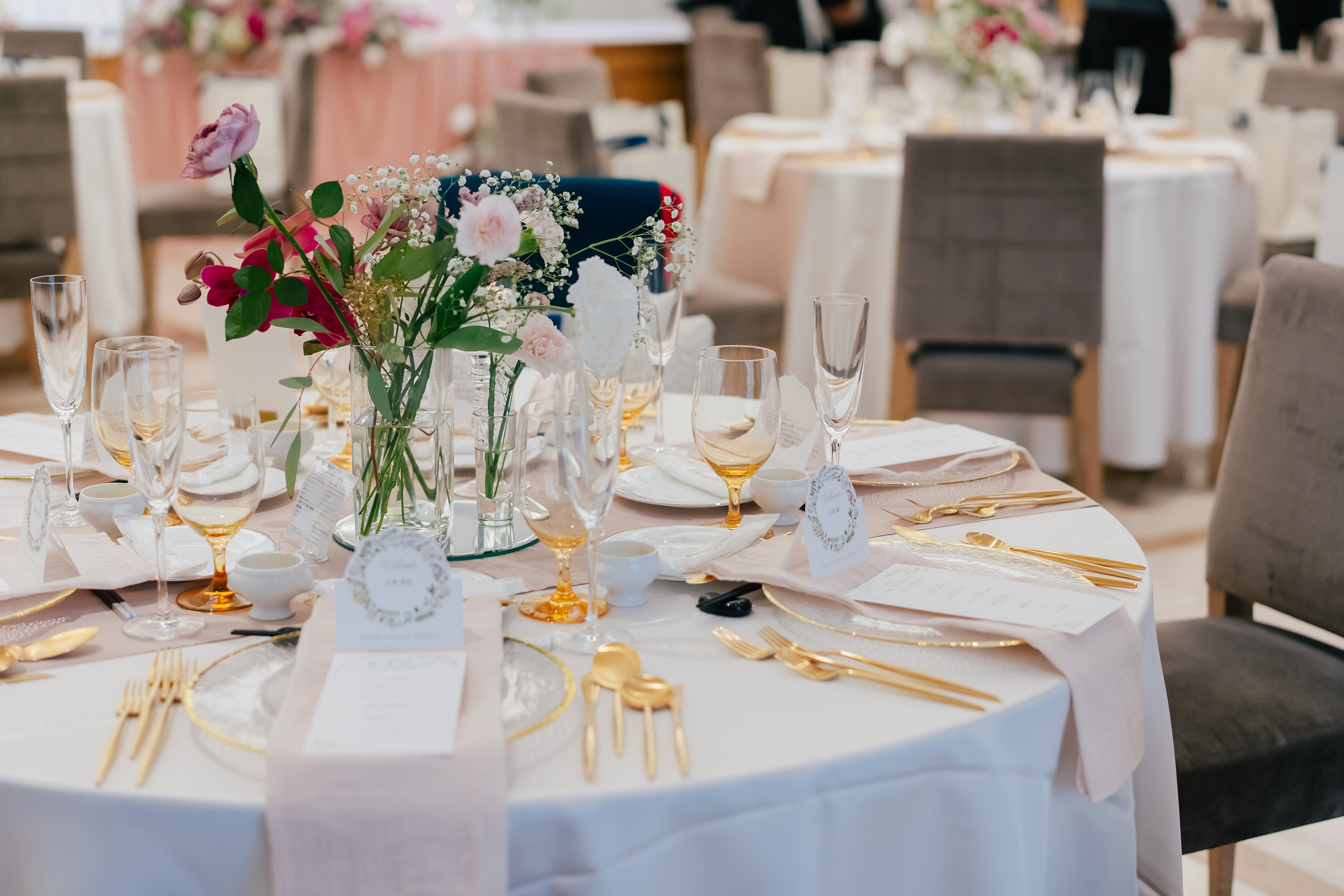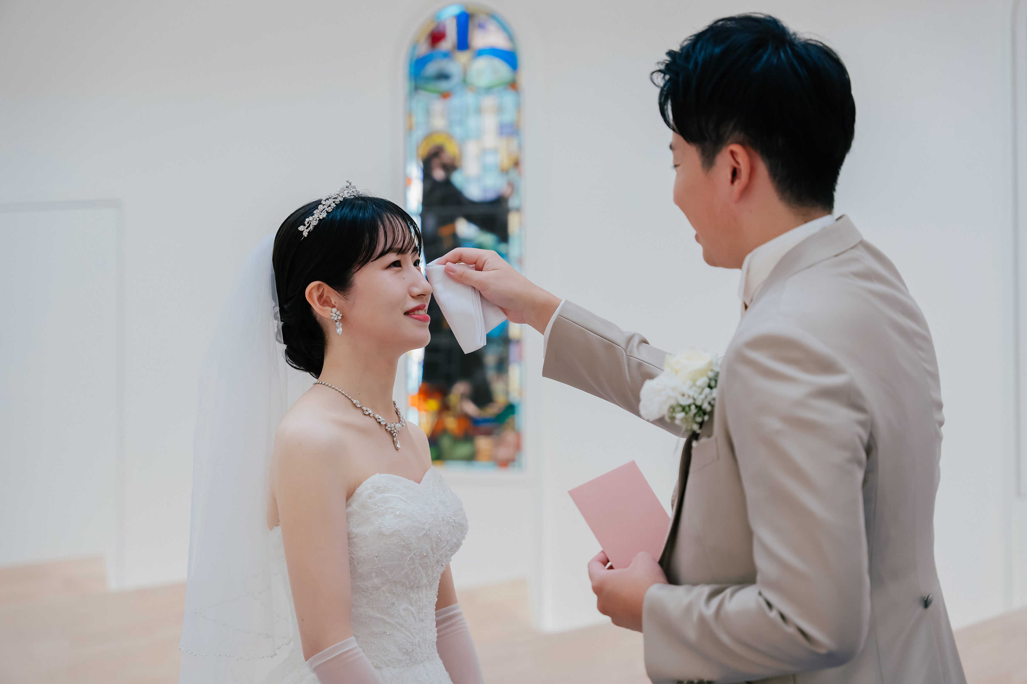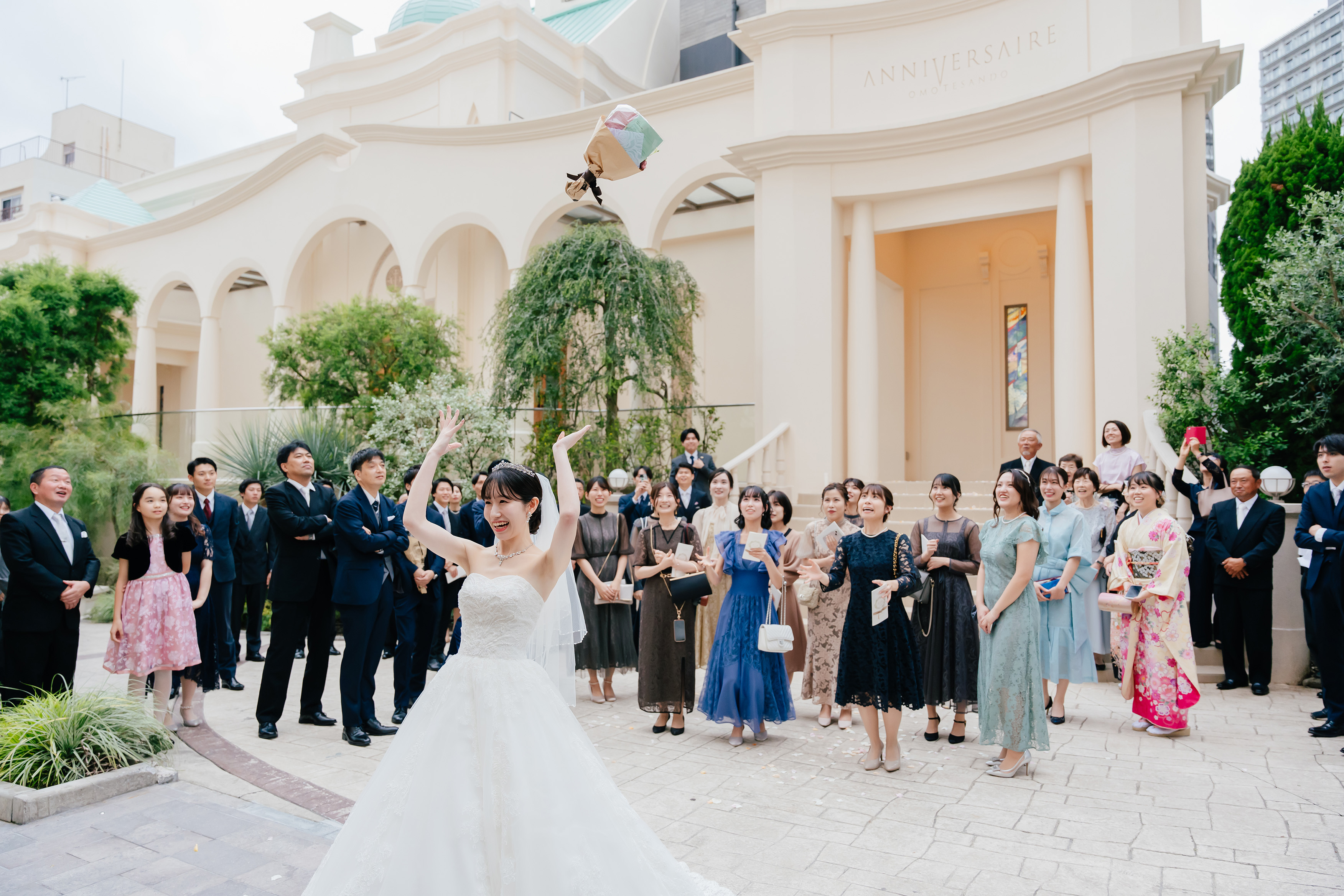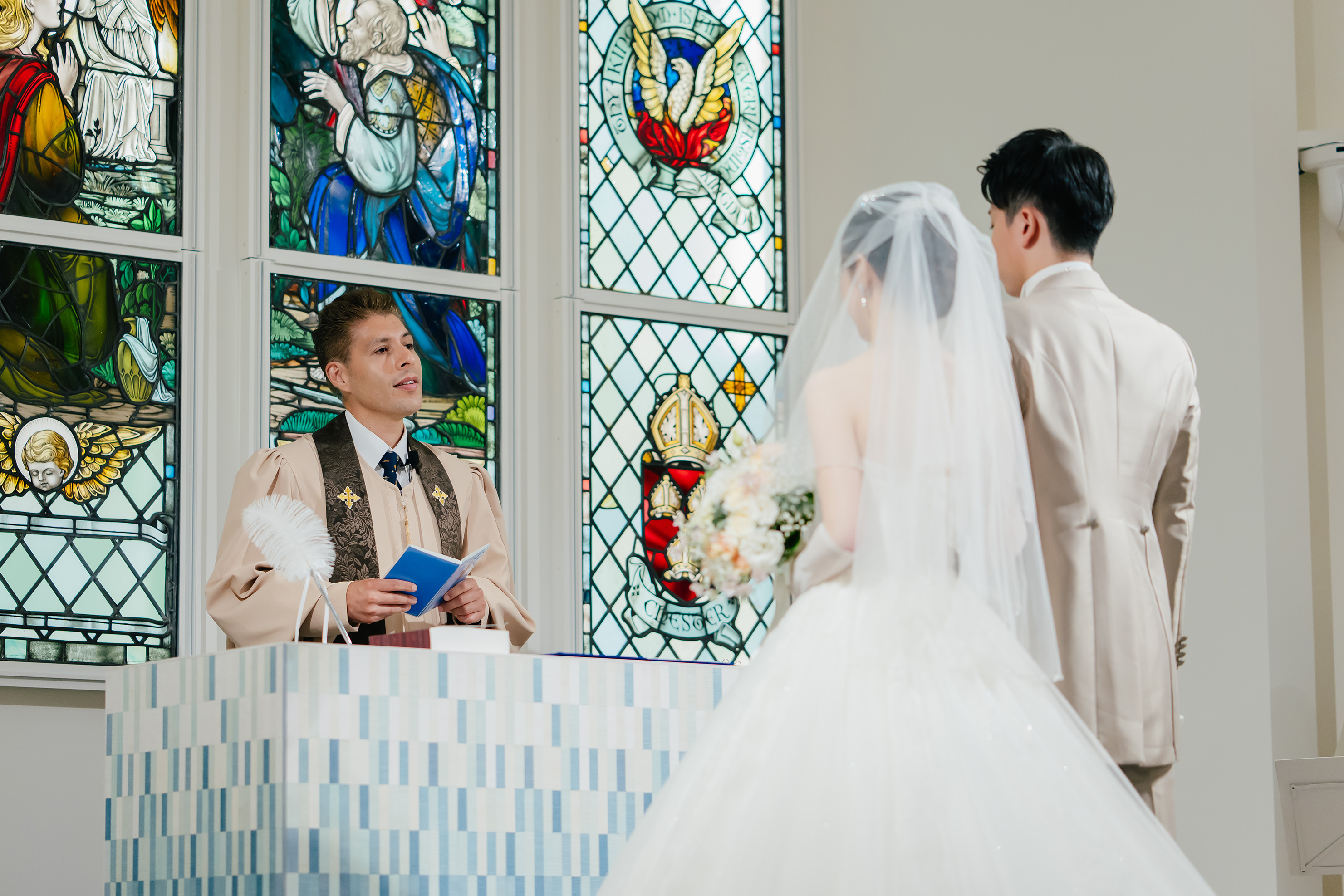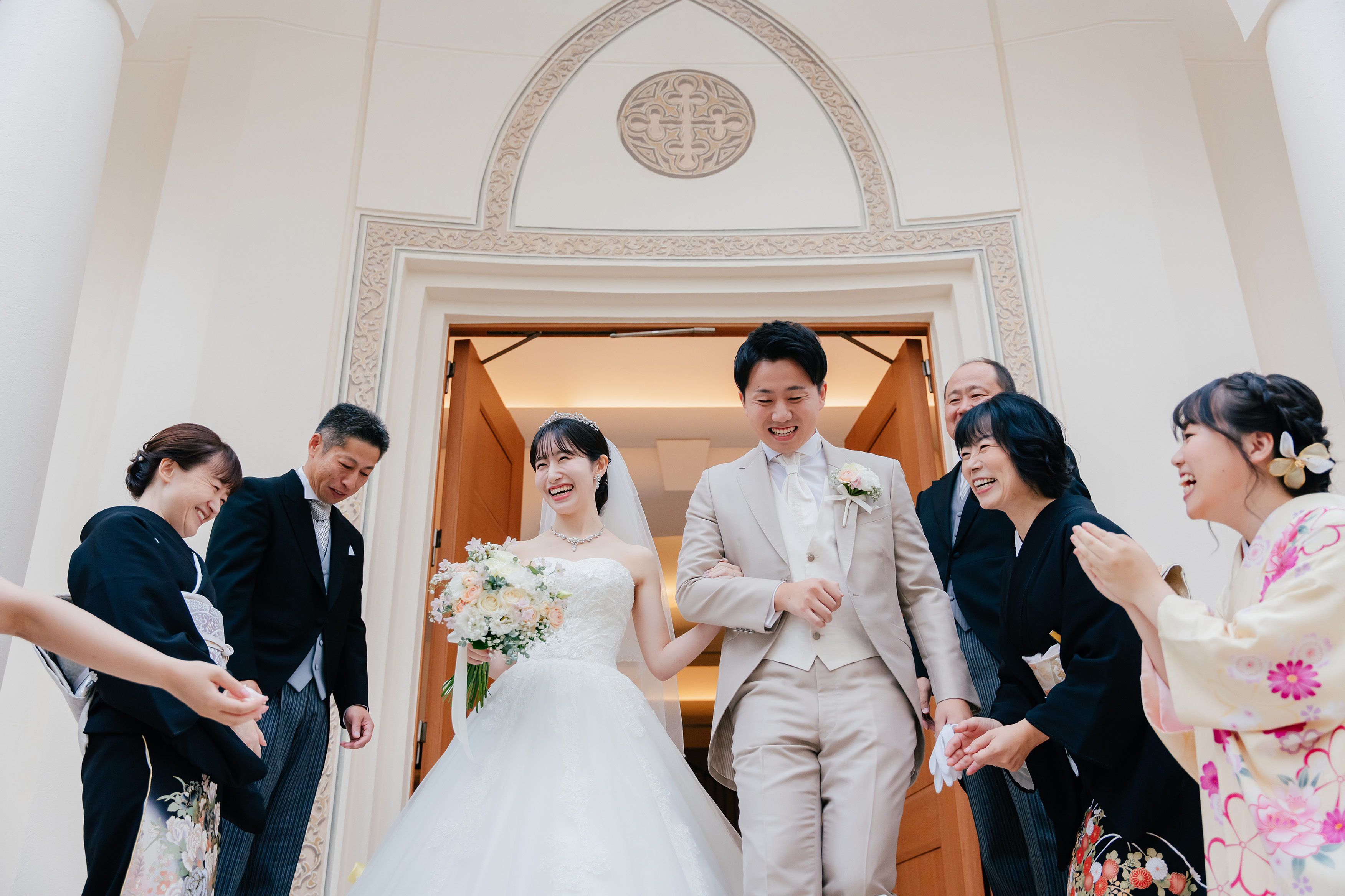 「Sharing love and happiness with a thankful heart in a relaxing atomosphere.」 をテーマにご準備を進めたおふたり。 ゲストのみなさまがリラックスして楽しめるよう、 会場はモーヴピンクやホワイトを取り入れて大人かわいい印象に。 また、より近い距離で楽しみたいという思いで設置したフォトスポットでは たくさんの素敵な笑顔を収めることができました。