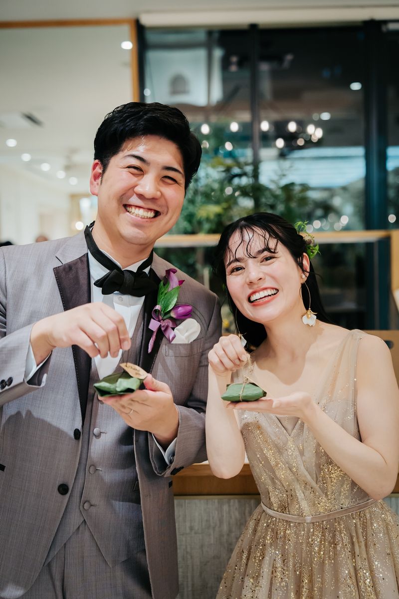 アットホームな演出にこだわったおふたりは『ドレスの色当てクイズ』『新郎の減量当てクイズ』を取り入れて、当選者の中から抽選でプレゼントをお渡ししたり、減量当てクイズではご新郎が自らプレゼン大会をすることで、ゲストの皆様を飽きさせない工夫もされています。 さらに、”招待状の返事が早い人”や”最後まで悩んでくれた人”におふたりが表彰する『勝手に表彰式』も行なわれ、思い出に残るシーンとなりました。