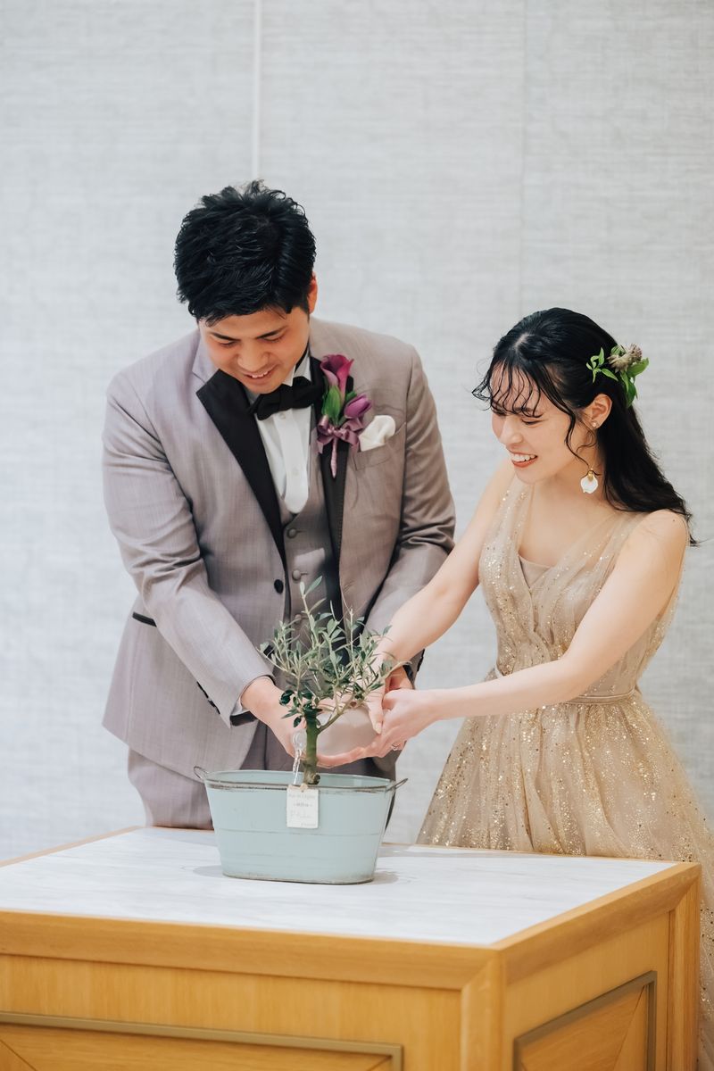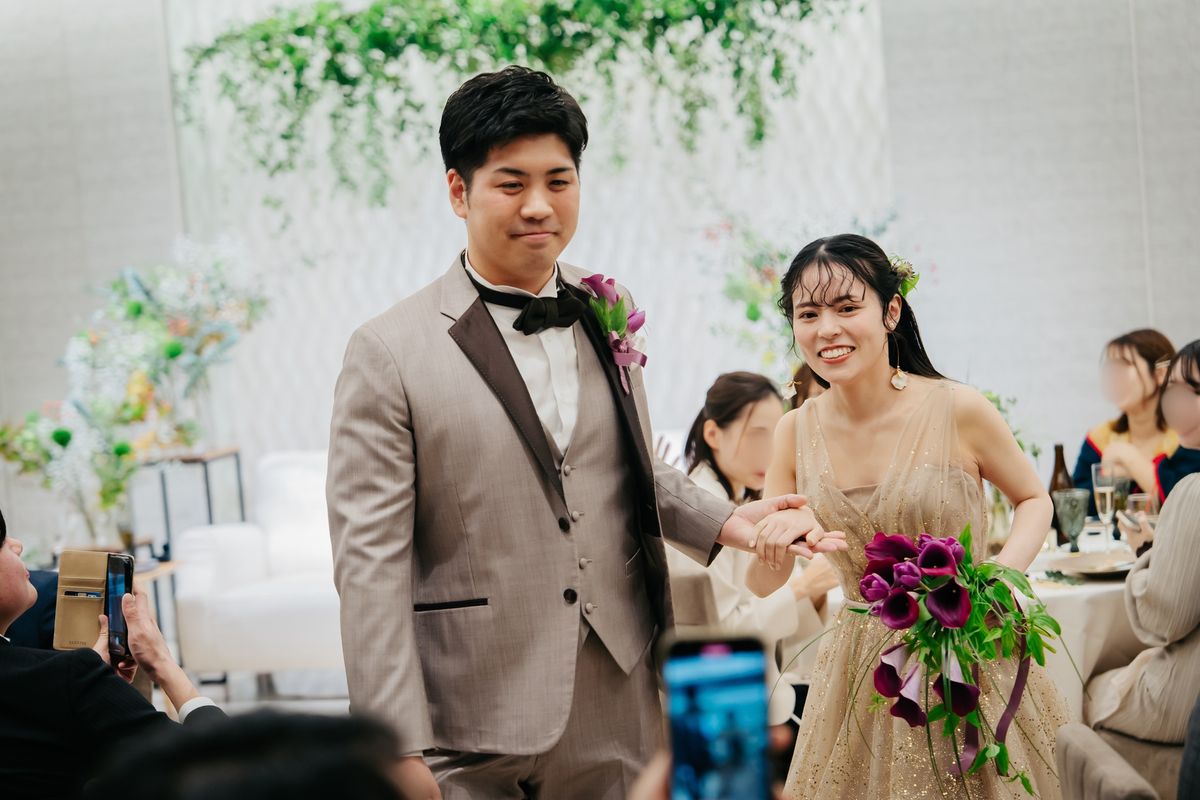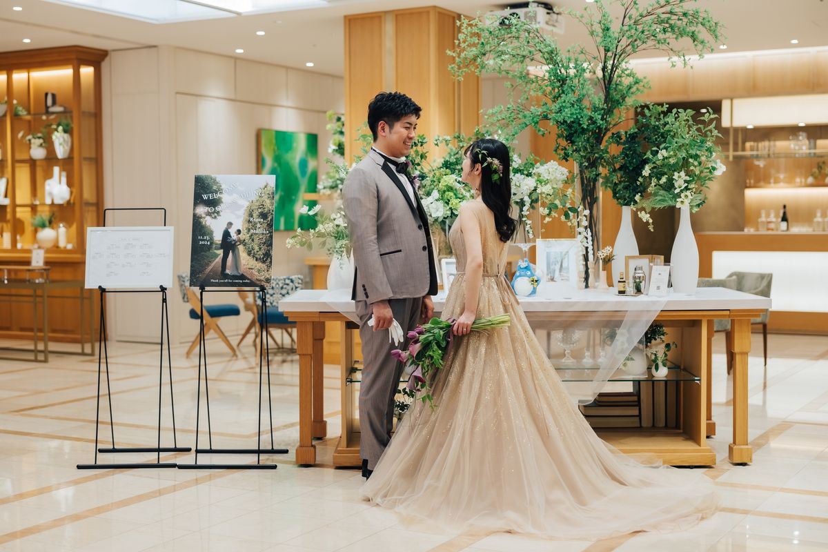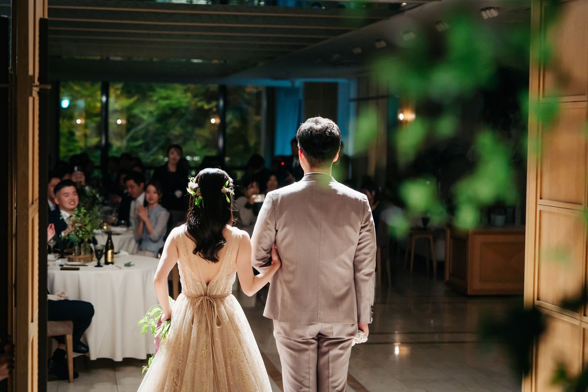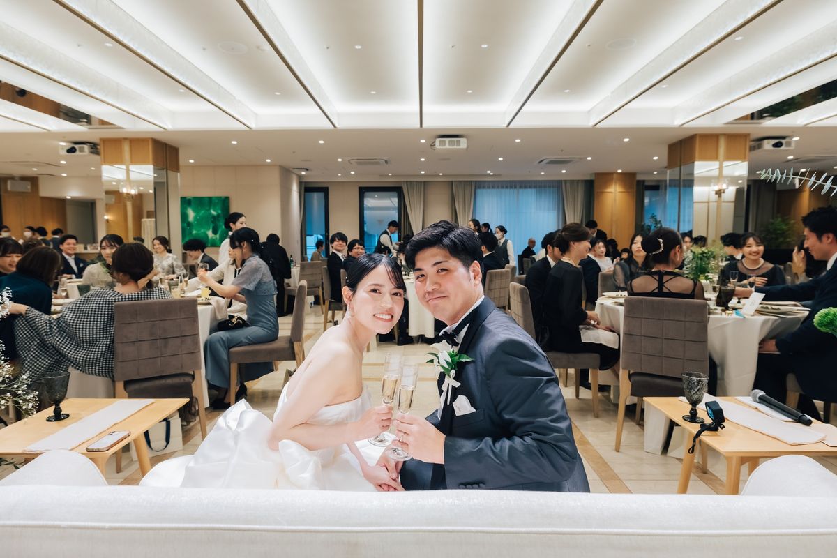 夫婦揃っての誕生日に挙式をされたおふたり。美しく紅葉した表参道のケヤキ並木が眺められる会場で、おふたりらしい演出をたくさん盛り込み、ゲストの皆様とアットホームで笑顔が絶えない時間を過ごされました。