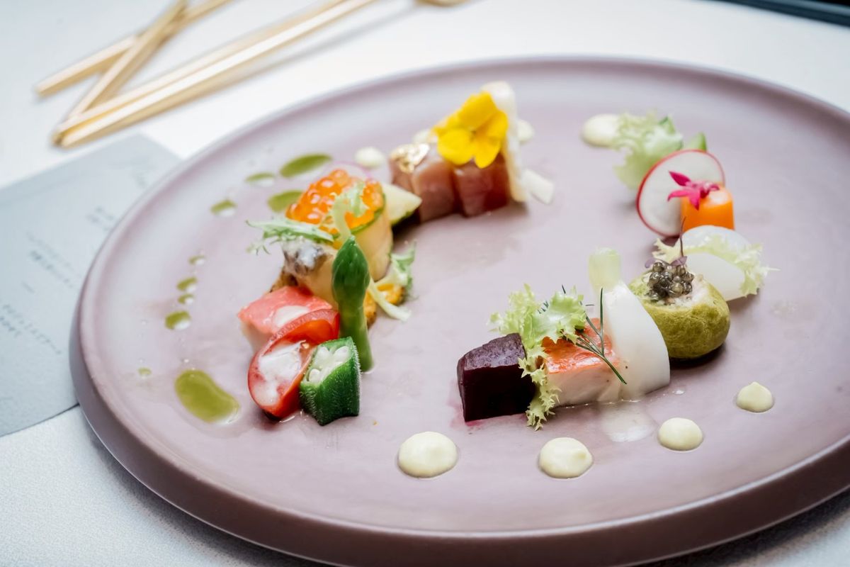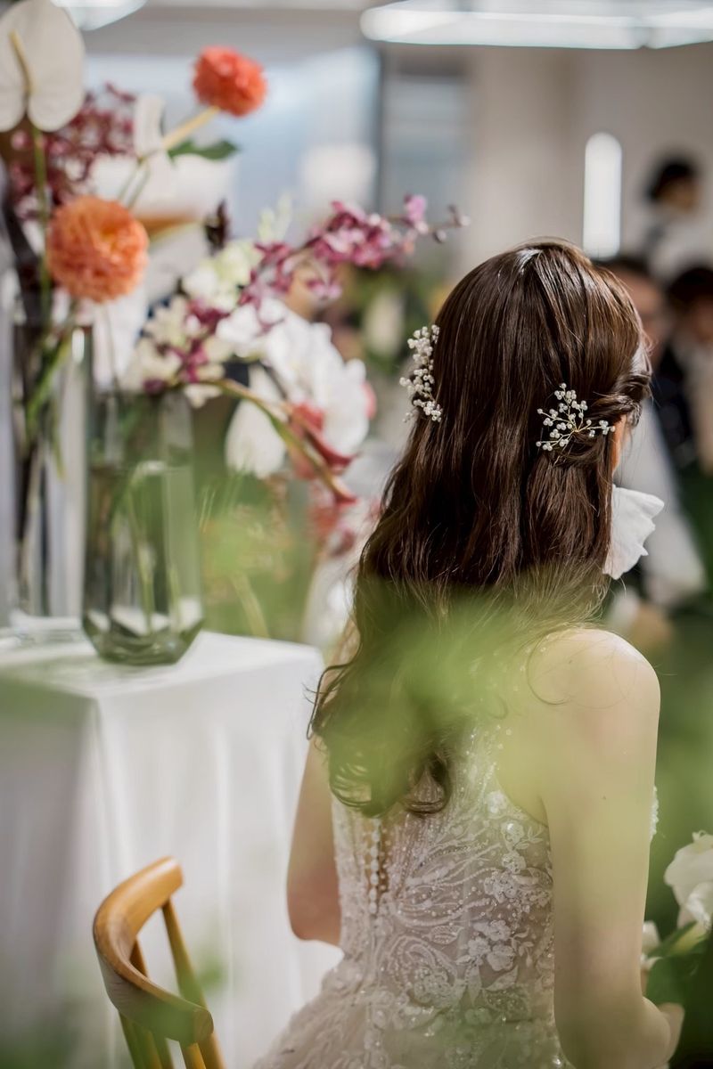 随所に様々なこだわりを詰め込んだおふたり。料理は味だけでなく、オリジナルメニューを提供できる点にも魅力を感じていただき、ふたりらしさを表現しながらゲストの満足度も上げることができました。ウェルカムパーティには旅行をきっかけに好きになった韓国料理を、コースには通常のフレンチにアレンジを加えつつおふたりの好きなフォアグラを取り入れたところがポイントです。オードブルには出身地の野菜を使うこだわりも。