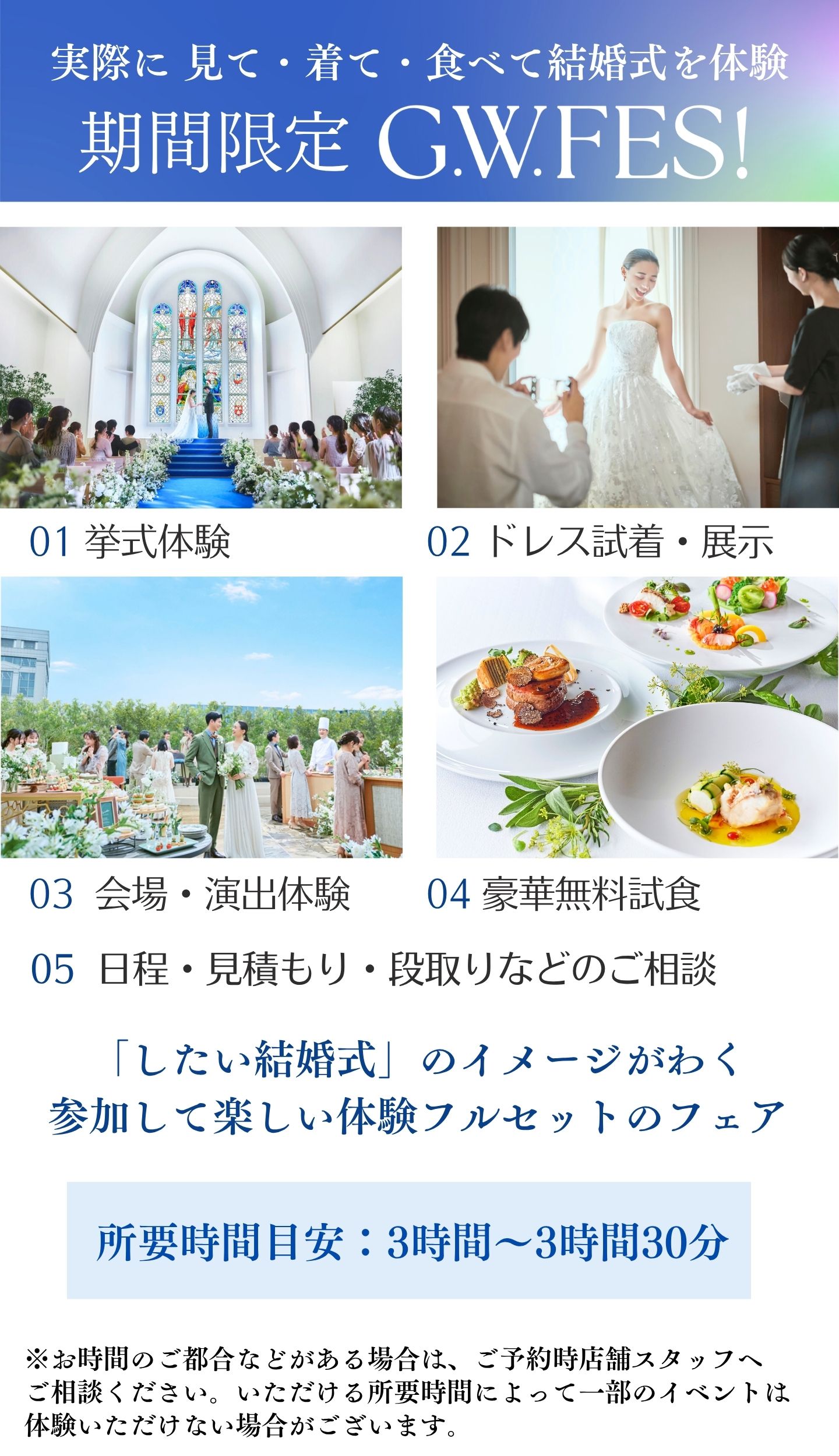 【豪華特典付き】憧れ叶うチャペルウェディング 期間限定開催・G.W.FES!