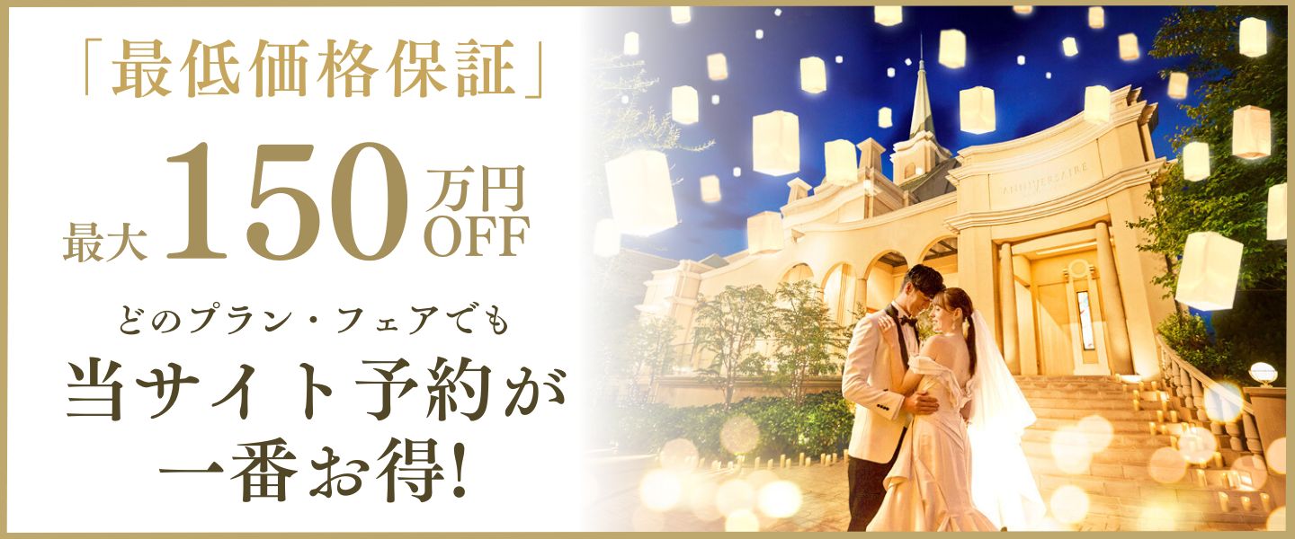 公式HPからフェア予約をすると、他式場サイトやカウンターで発生する掲載料や紹介料が発生しないので、その分割安なプラン価格でご案内でき、公式HPからのご予約を最安値(ベストレート)とさせていただいております。