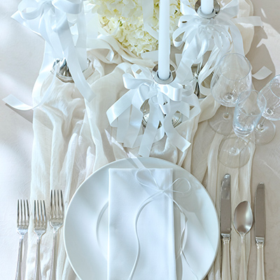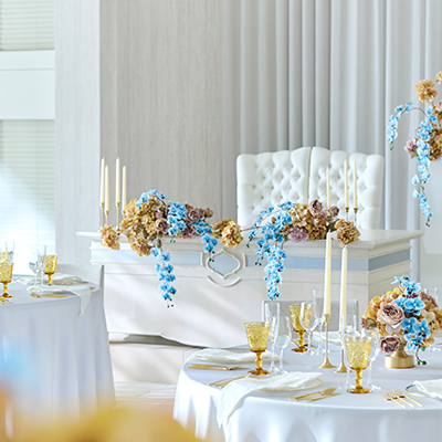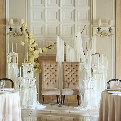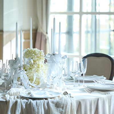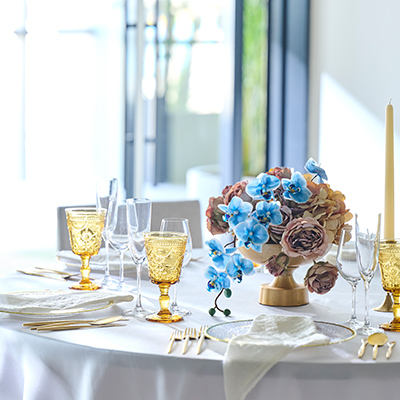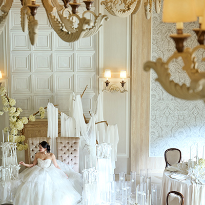たっぷりの布モチーフをメインに海外ウェディングをイメージさせる「エタニティ」