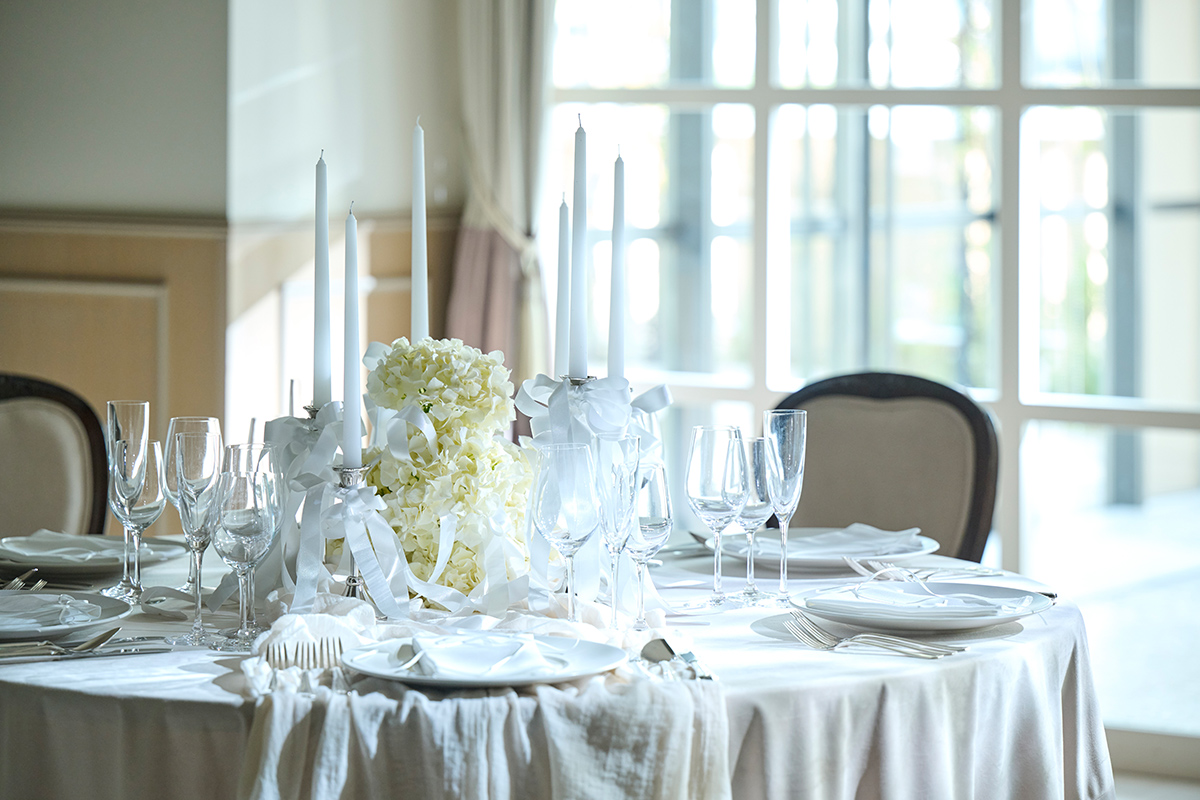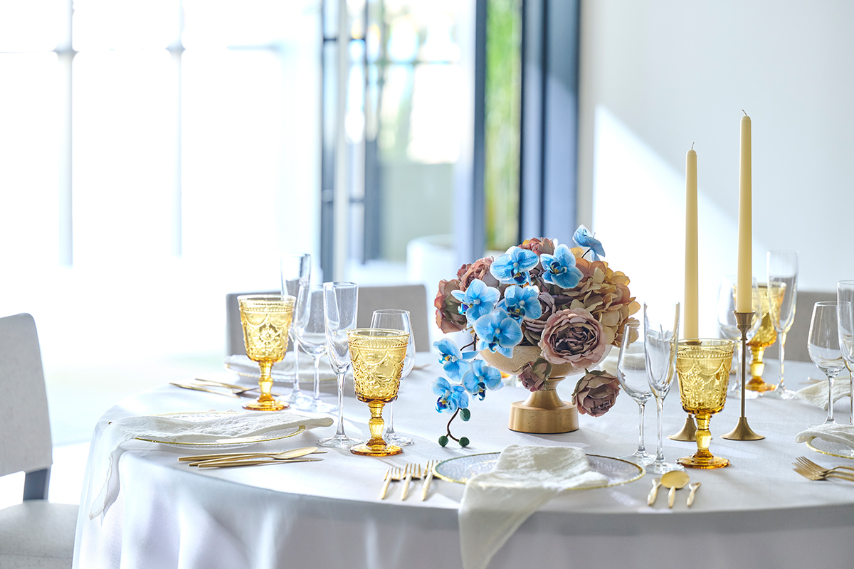 たっぷりの布モチーフをメインに海外ウェディングをイメージさせる「エタニティ」