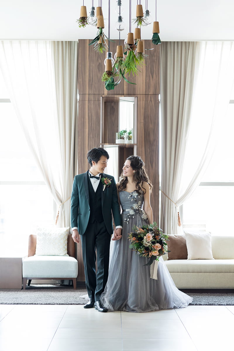 セージグリーンとグレーを基調にした「エバー・グリーン」。 “いつまでも色褪せない”という想いを込め、 おふたりの変わらない愛を表現します。