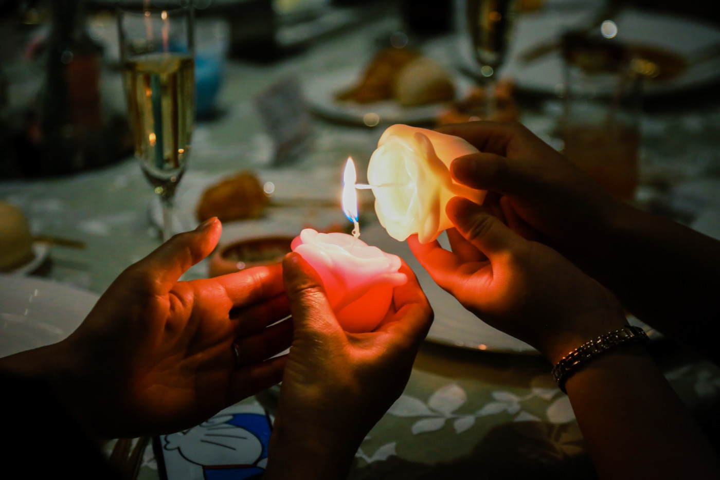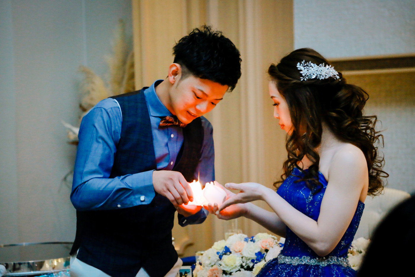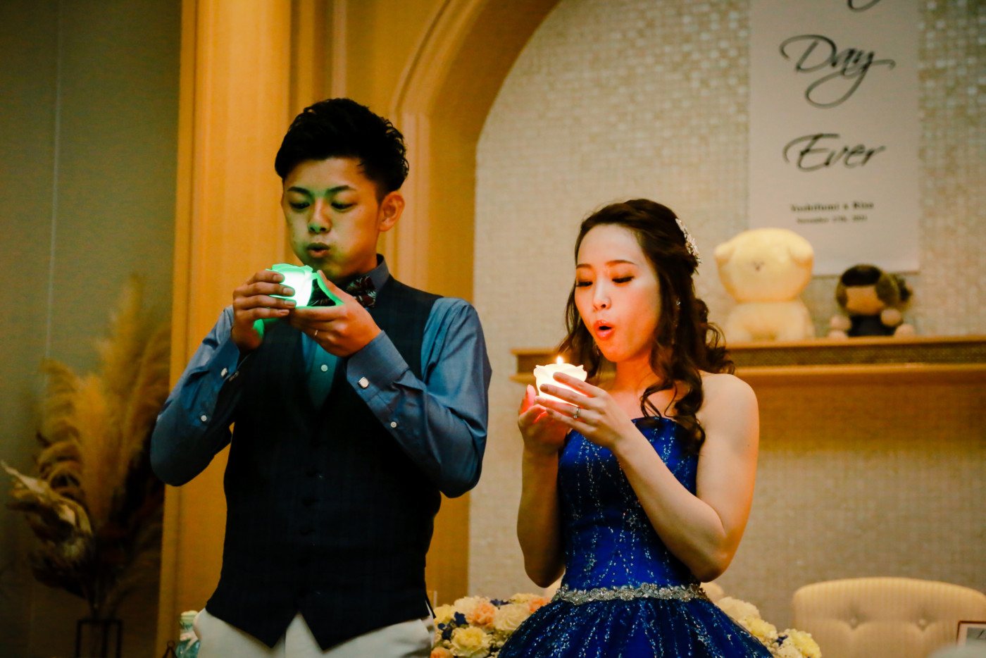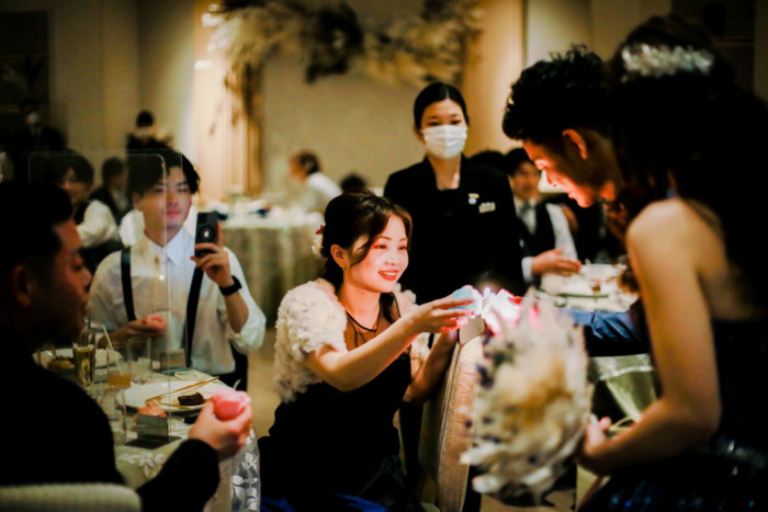 ゲスト皆様でキャンドルリレー、願いを込めてブローアウト。