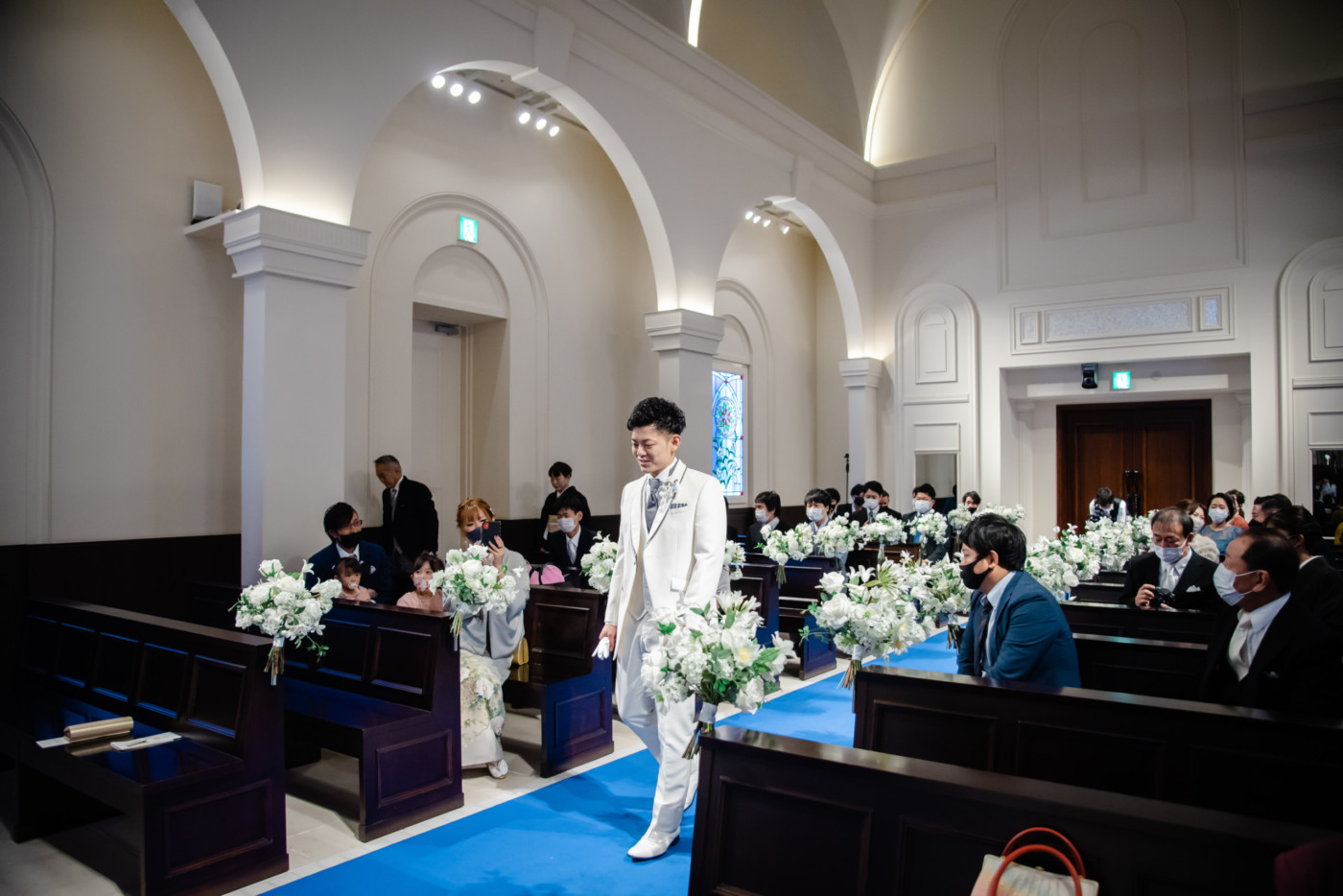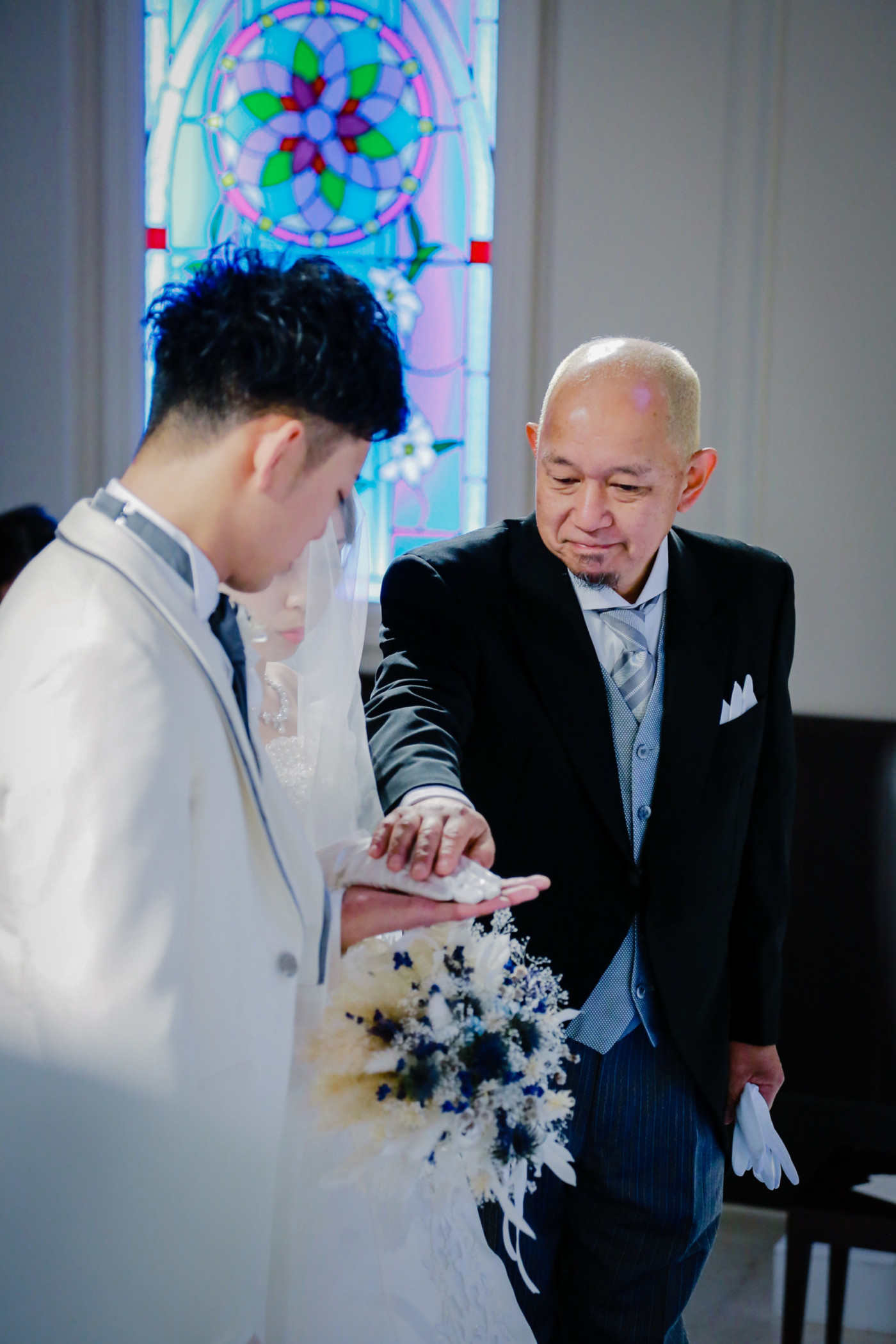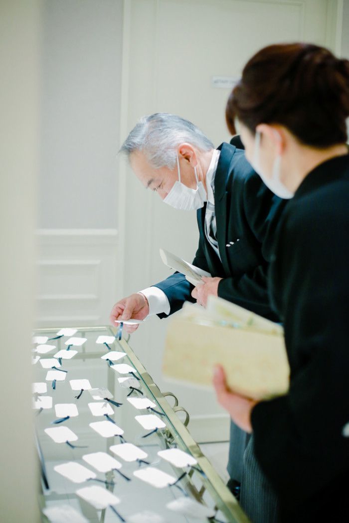 ご新郎入場はジャケットセレモニーをお父様、グローブをお母様より御手渡し頂きました。