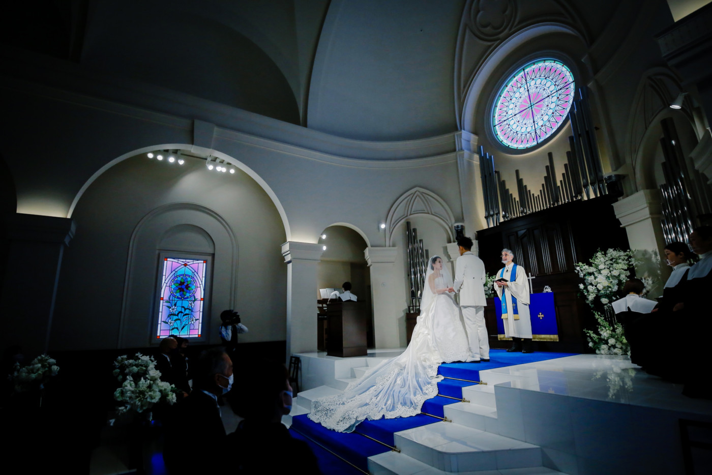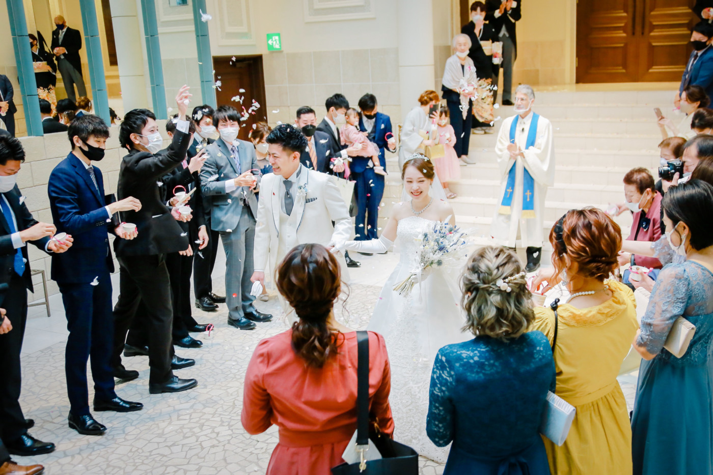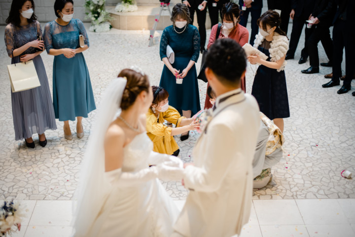 退場後には、お花の香りに包まれたフラワーシャワーへ。