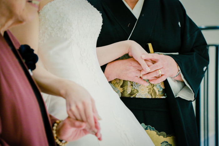 大切に育てた娘の手を、ご新郎に託す「確認の儀」。