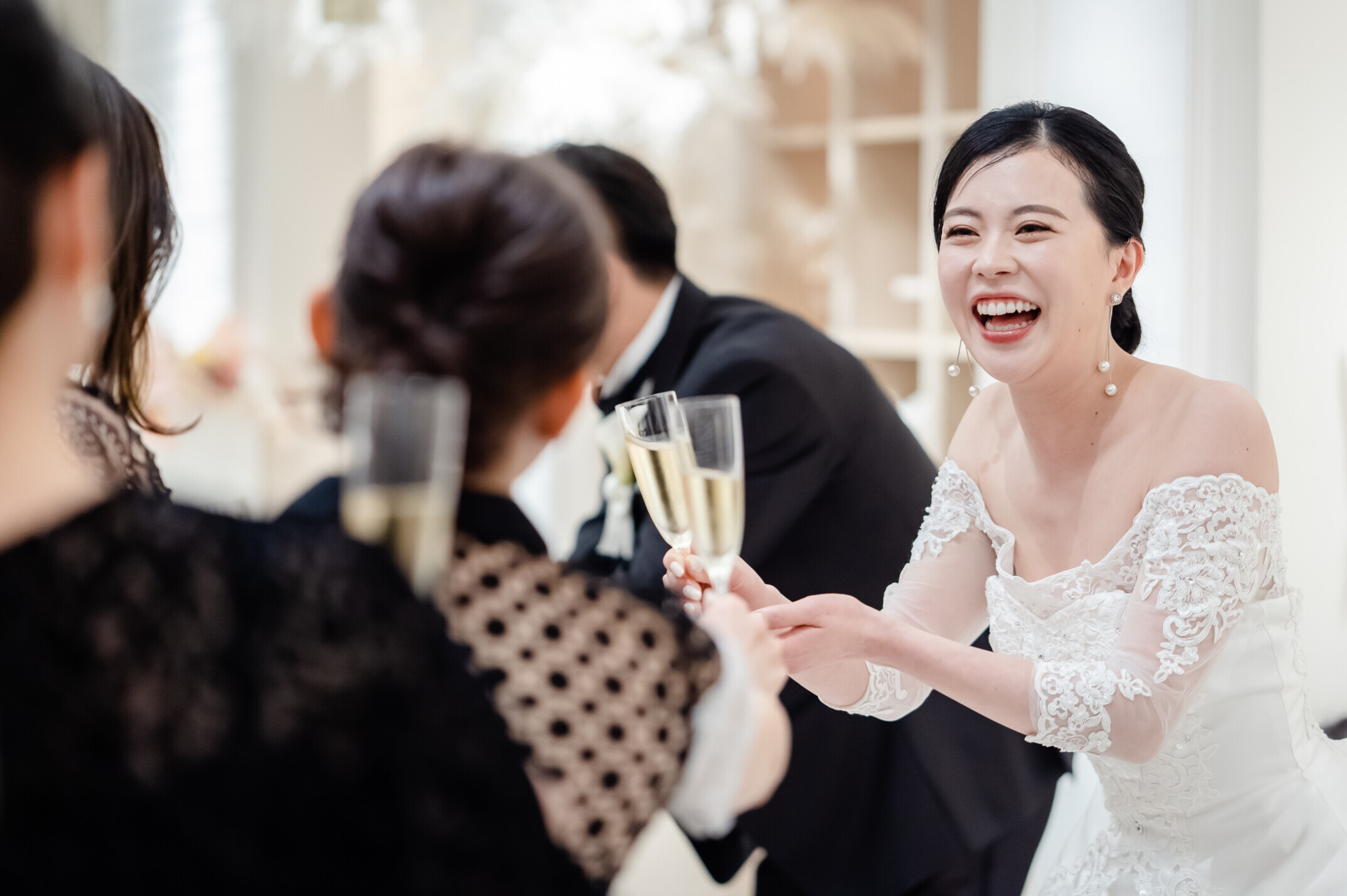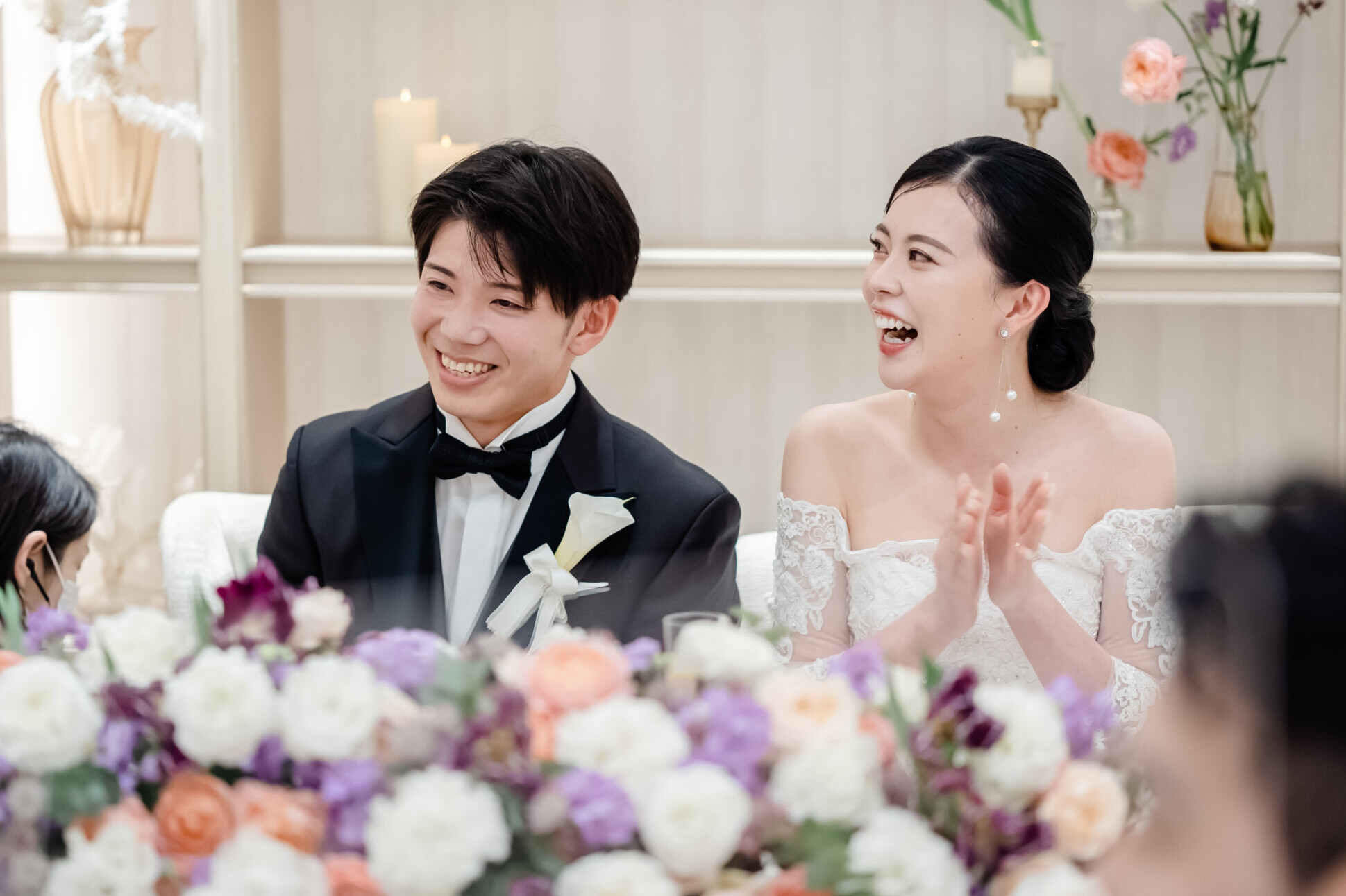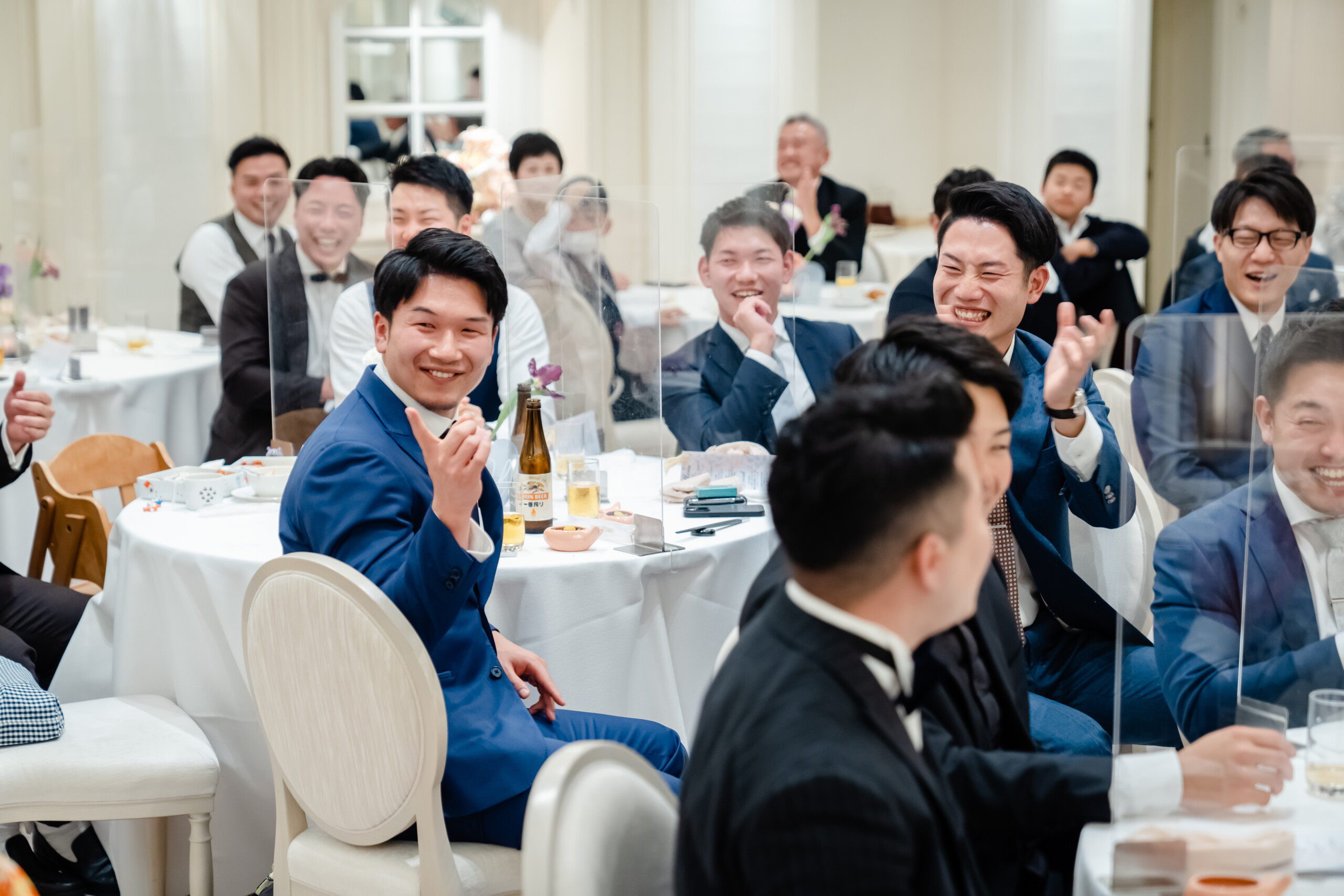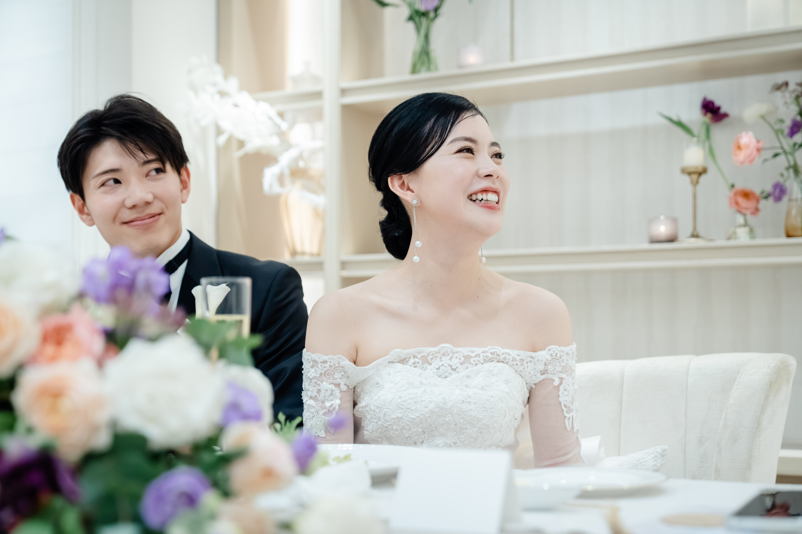 おふたりや家族、ゲストのとびっきりの笑顔が印象的なご結婚式 挙式からご披露宴まで、沢山の笑顔にあふれた1日でした お互いを見守る表情や親御様が見届けるお姿にとても愛情を感じるお写真ばかり 披露宴中は常にご友人や職場の仲間に囲まれていたおふたり おふたりのお人柄がわかる素敵な空間でした