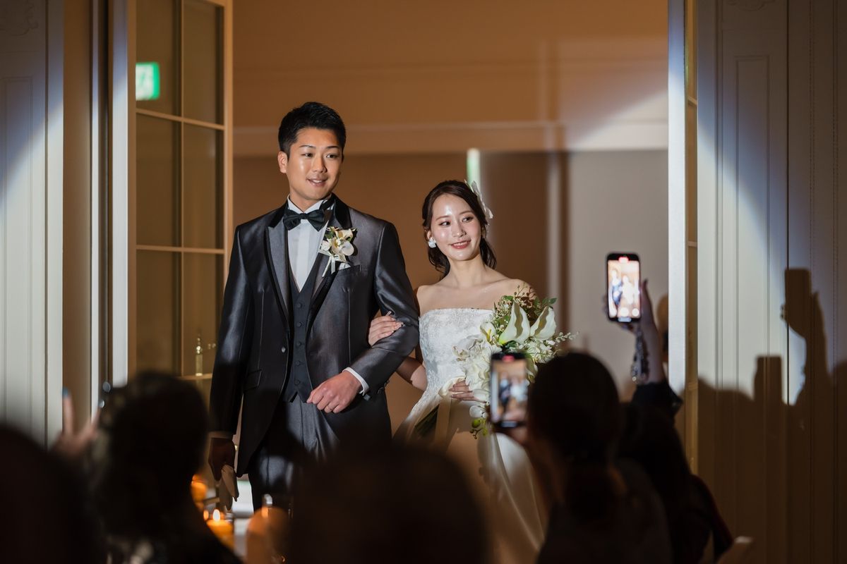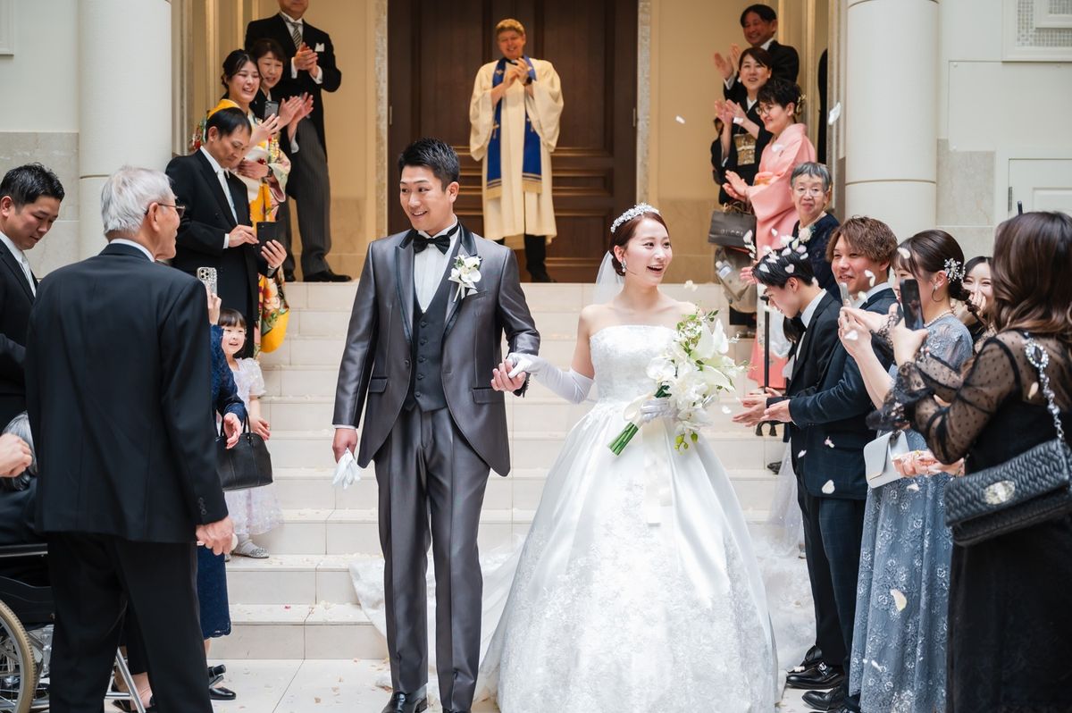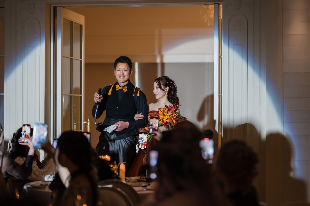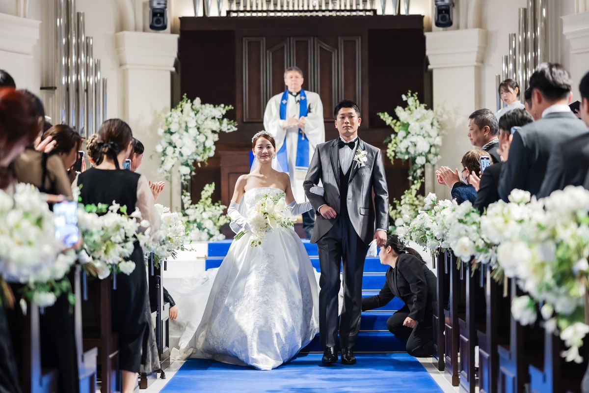 ゲストの皆様と楽しくワイワイできることにこだわったおふたり。セレモニームービーと青のバージンロードが印象的な挙式のあと、距離の近さを活かした温かな披露宴で、笑顔と感謝を交わす1日になりました。