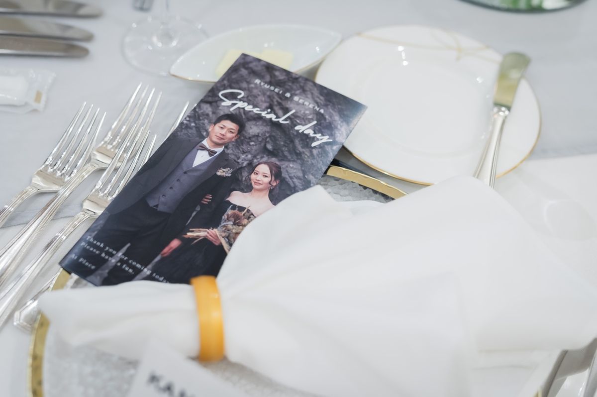 テーマに沿って、席札にメッセージを添えるなど感謝を伝える工夫を施されたおふたり。ペーパーアイテムは手作りで仕上げ、節約にも繋がっています。また、不安に思われたことはすぐにご相談をいただき、スケジュール確認を含め、おふたりの「ゲストの皆様に楽しんでもらう」という理想の結婚式に向けて、一緒に創り上げていきました。
