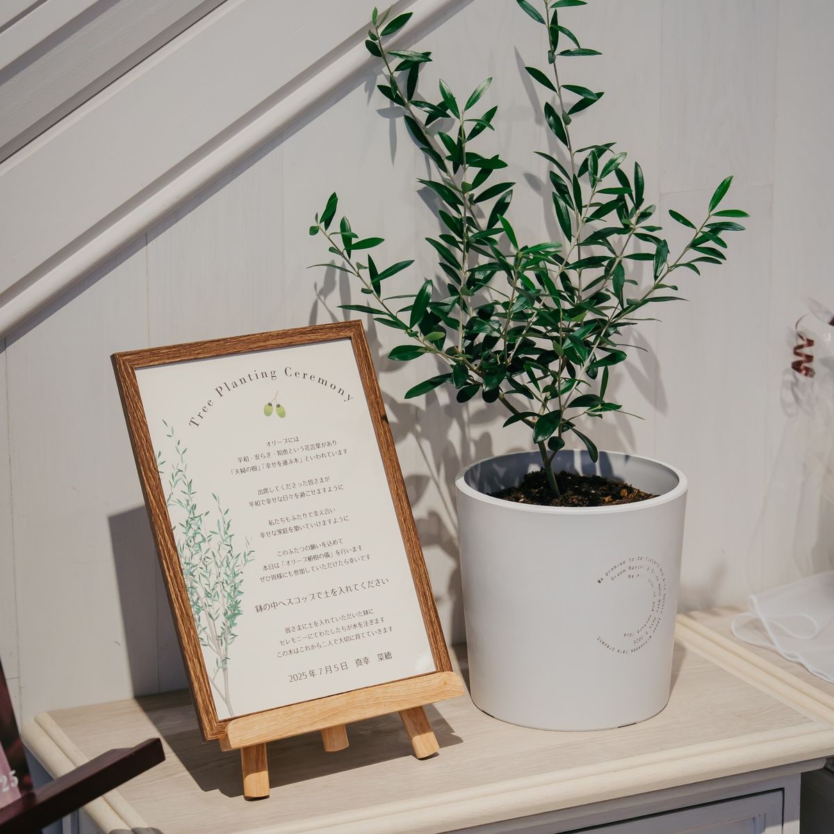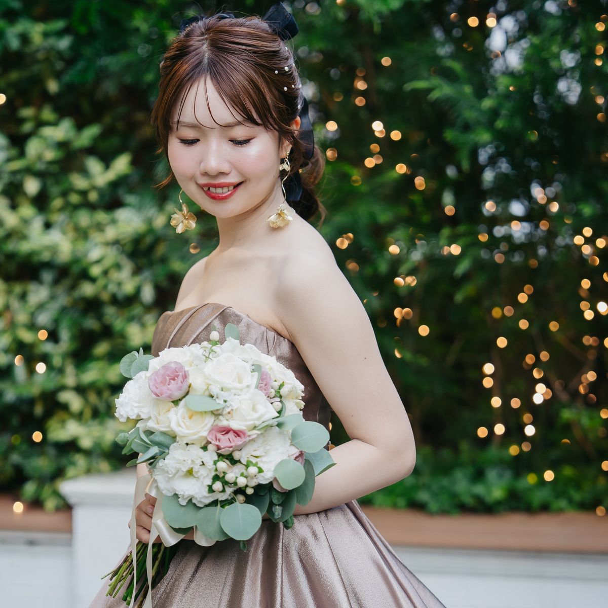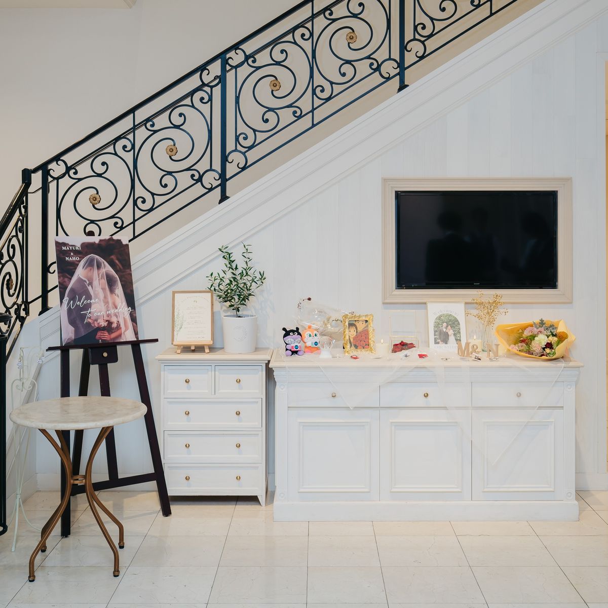 テーマの『楽しく、ゲストと近い結婚式』を叶えるため、打合せでは料理や装花、ヘアメイクまで丁寧にご相談いただきました。とてもお似合いになるドレスに出会え、ヘアチェンジは3回。ドレスごとに選ばれたアクセサリーも、センス抜群でした。ウェルカムスペースやお料理には、特にゲストに楽しんでいただける工夫がぎっしり!プチギフトやペーパーアイテムもご自身で用意され、おふたりらしい温かさを形にされていました。