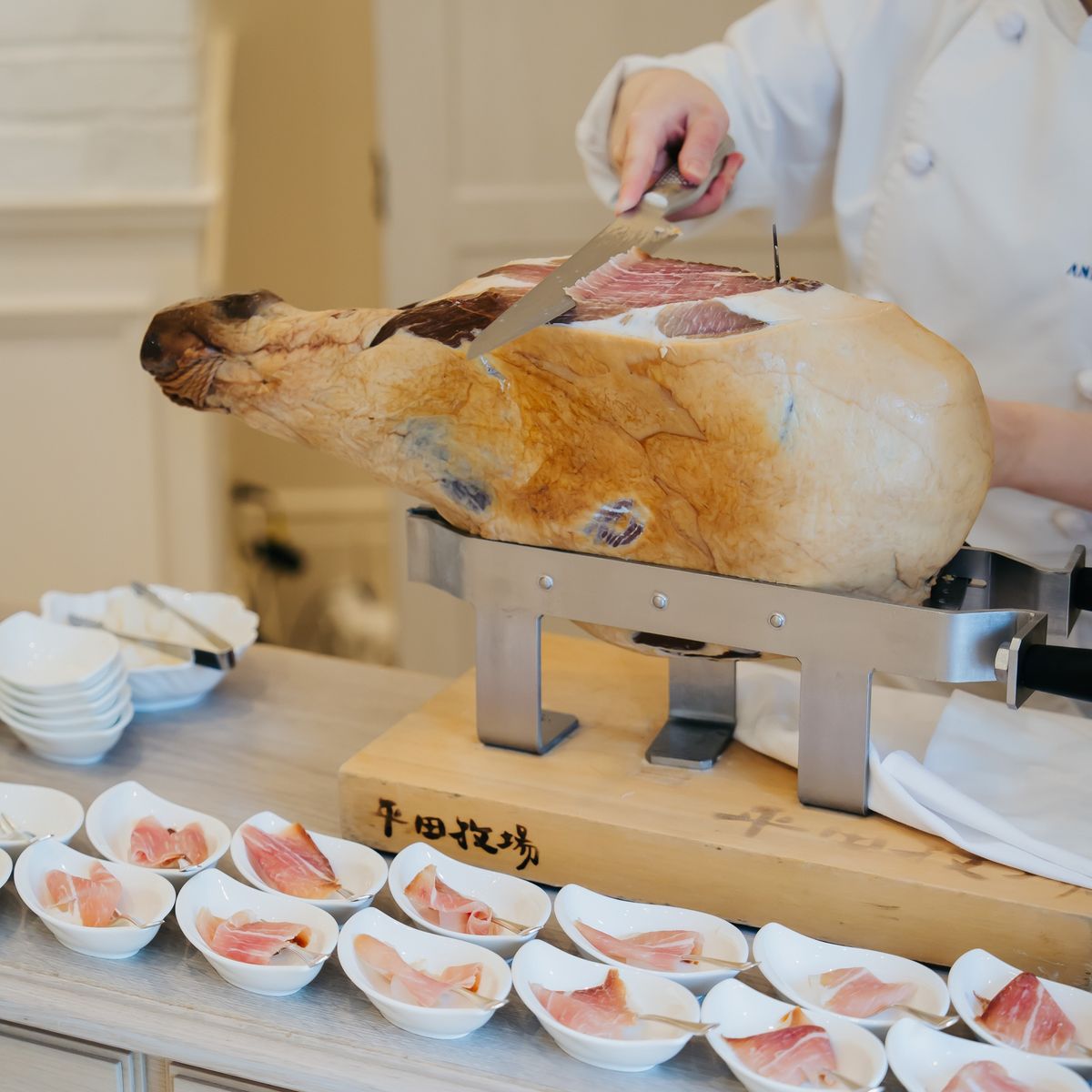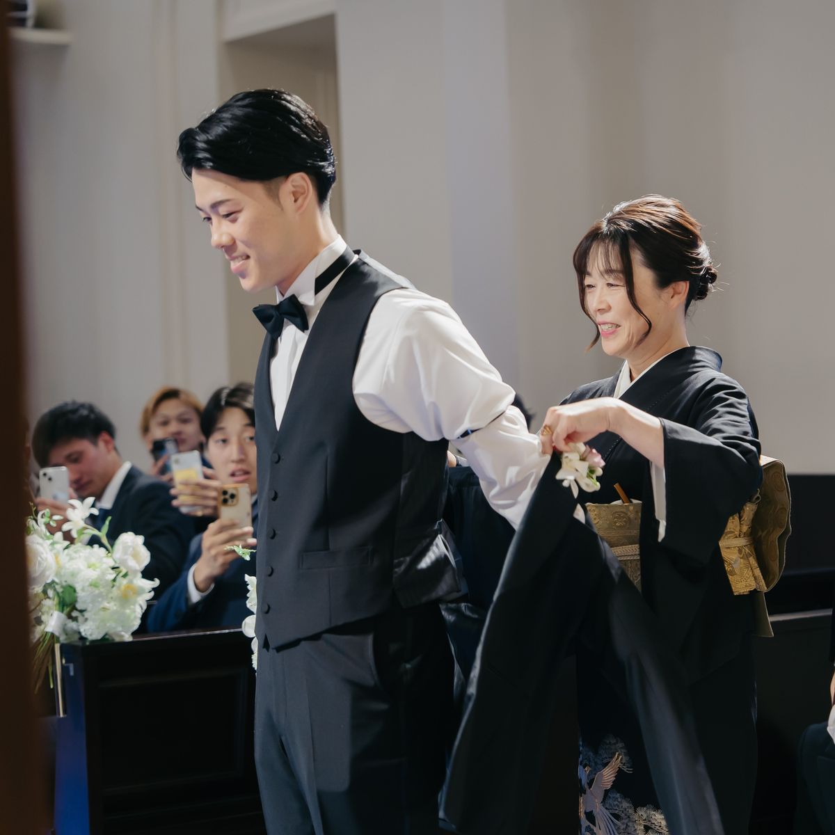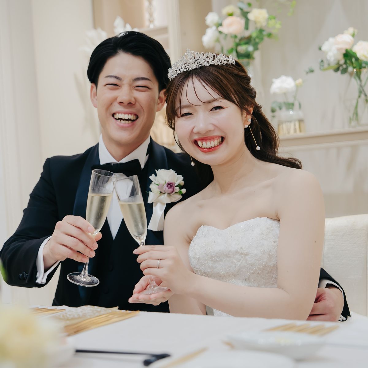おもてなし面では「美味しい料理でゲストを喜ばせたい」という強い想いのもと、生ハムを切り分ける演出やチョコフォンデュを含むデザートビュッフェ、和の味付けを取り入れたメニューなど、幅広い年代に楽しんでいただける内容に。趣向を凝らしたおもてなしに、おふたりの感謝の気持ちが込められていました。両親へのお手紙のシーンでは会場全体が感動の渦に包まれ、多くのゲストが涙する温かな時間となりました。