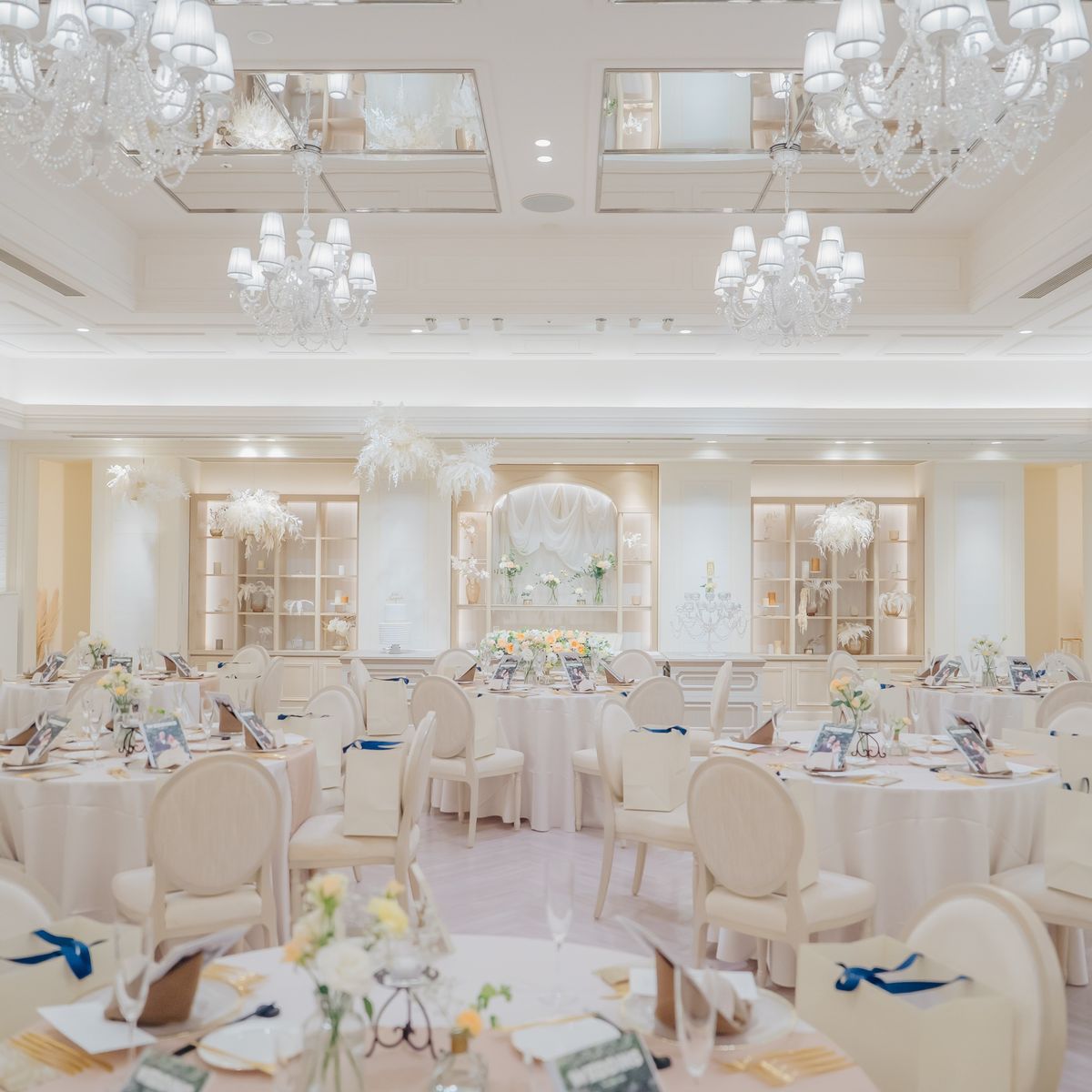 チャペルの青いバージンロードに惹かれたというおふたりは『楽しく、ゲストと近い結婚式』をテーマに掲げ、ゲストの皆様に楽しい時間を過ごしていただけることにこだわっていました。料理や演出に心を込めて準備された姿が印象的です。