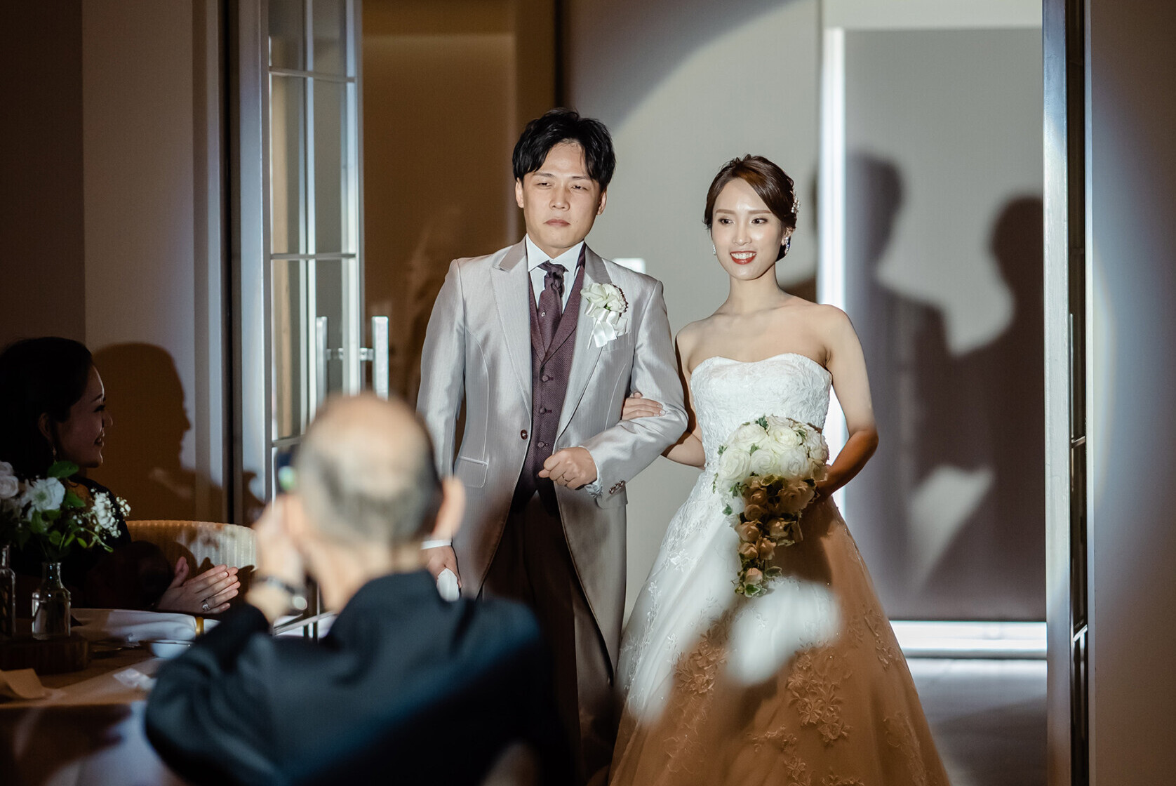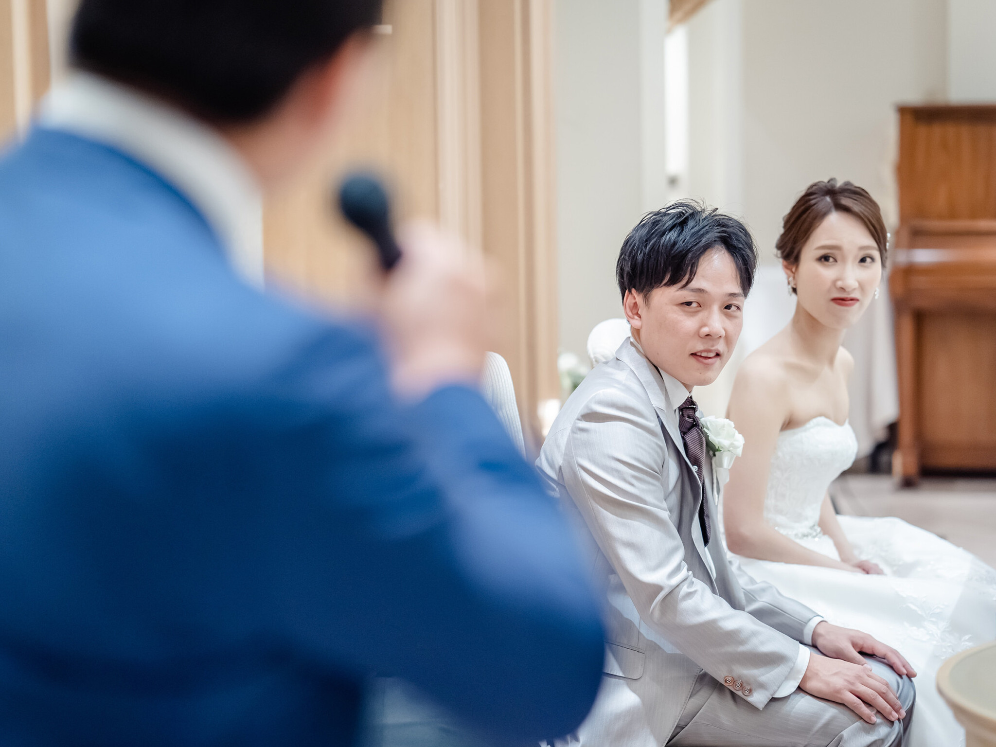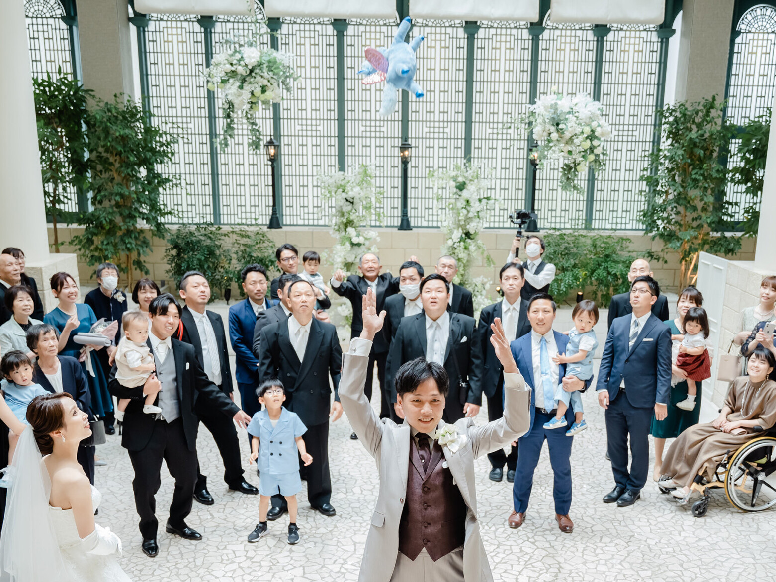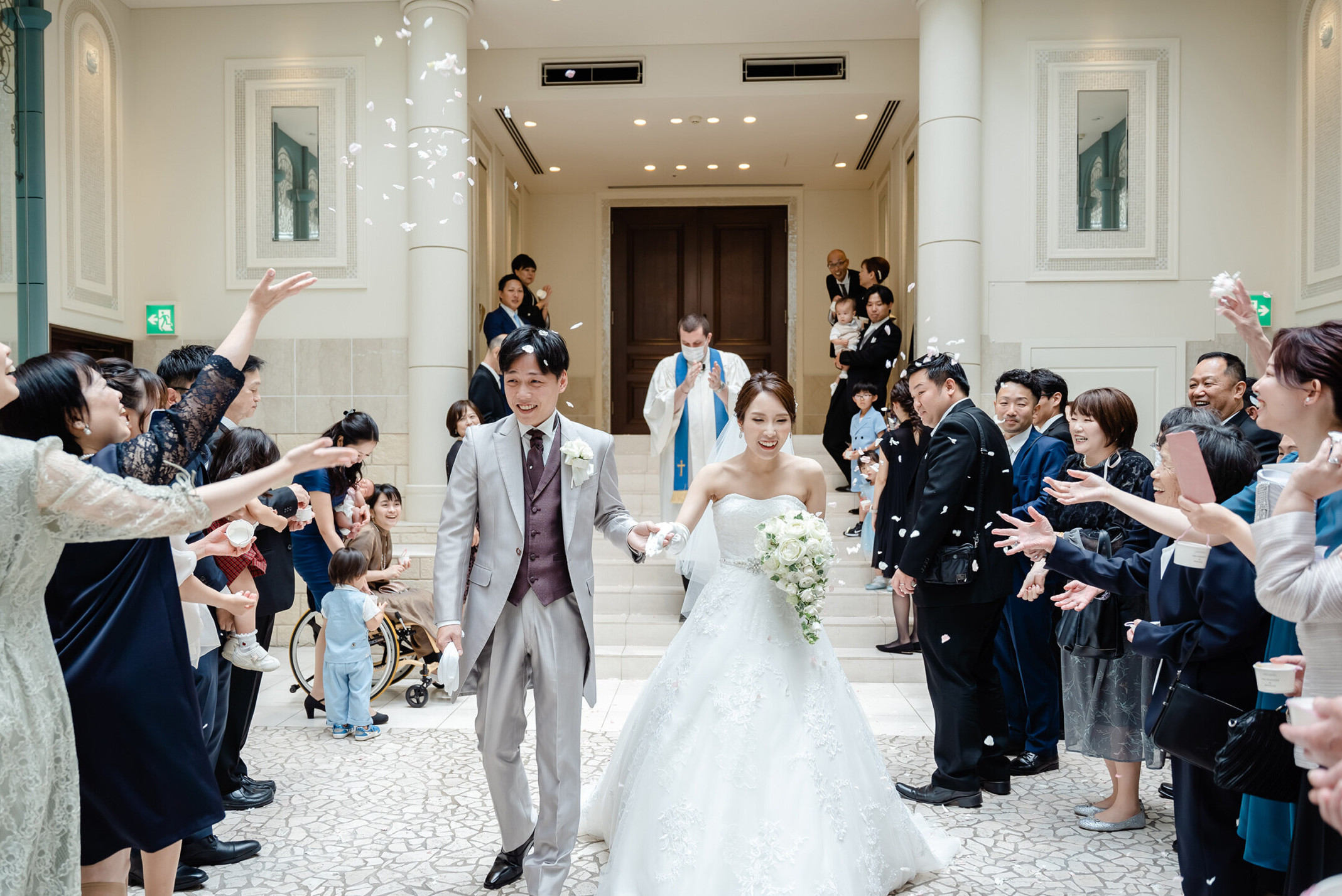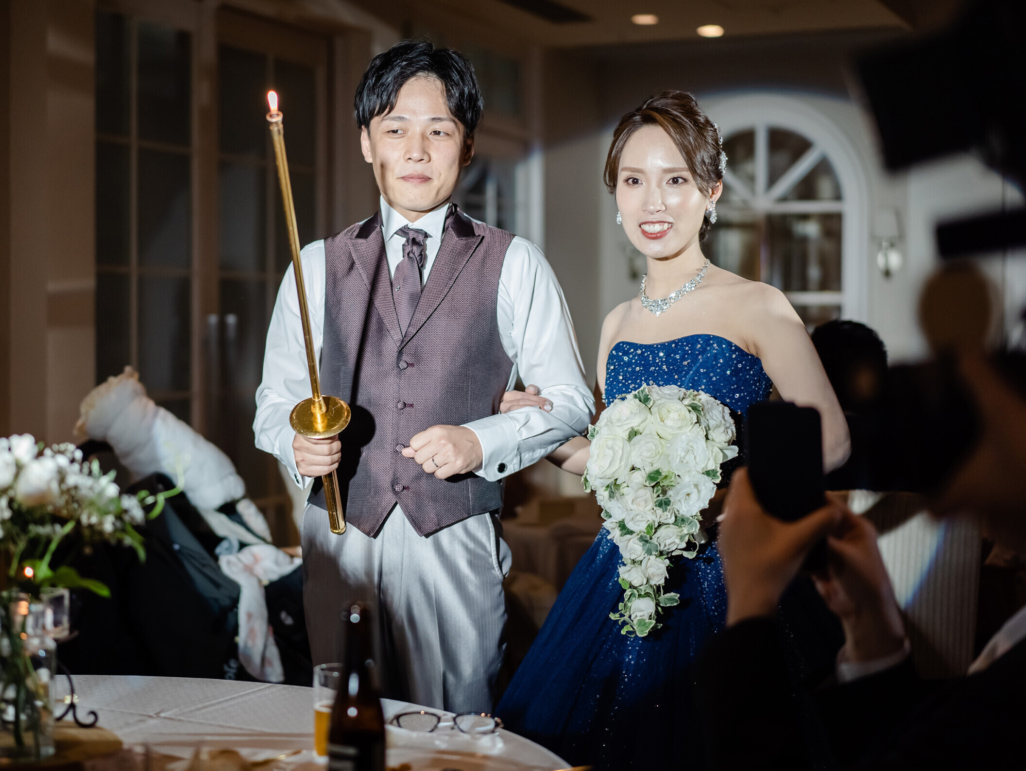「親御様にドレス姿を直接みてもらいたい」 そんな想いから結婚式をすることを決めたおふたり 挙式の前にファミリーミートを行い、 誰よりも先にドレス姿を見てもらうことにしました 挙式や披露宴ではゲストとの距離が近づくような演出を入れて 写真タイムもしっかり取り、思い出が沢山残せる時間づくりを意識しました