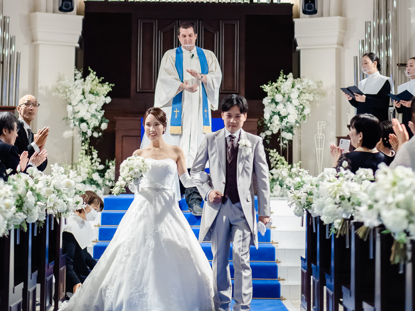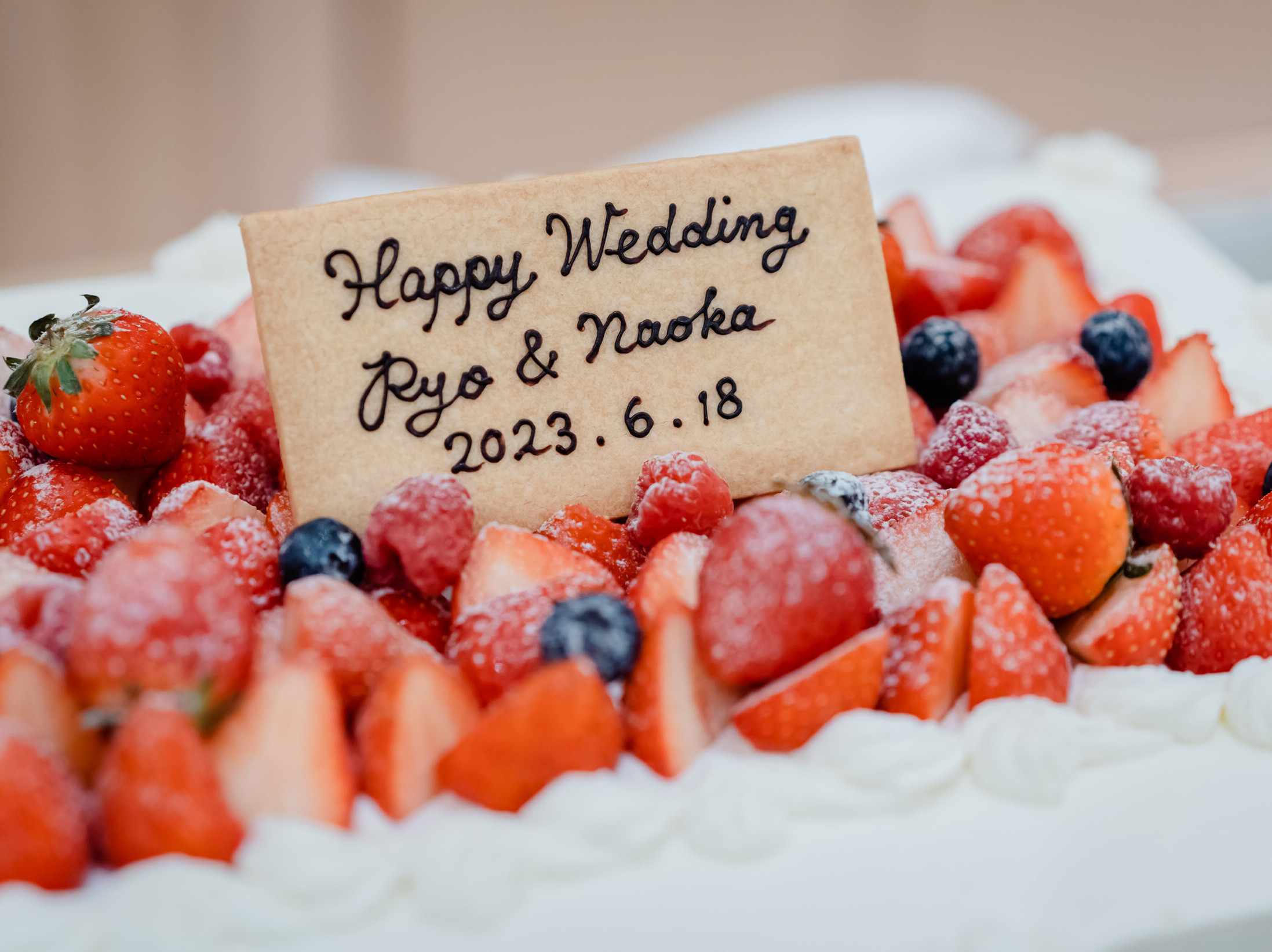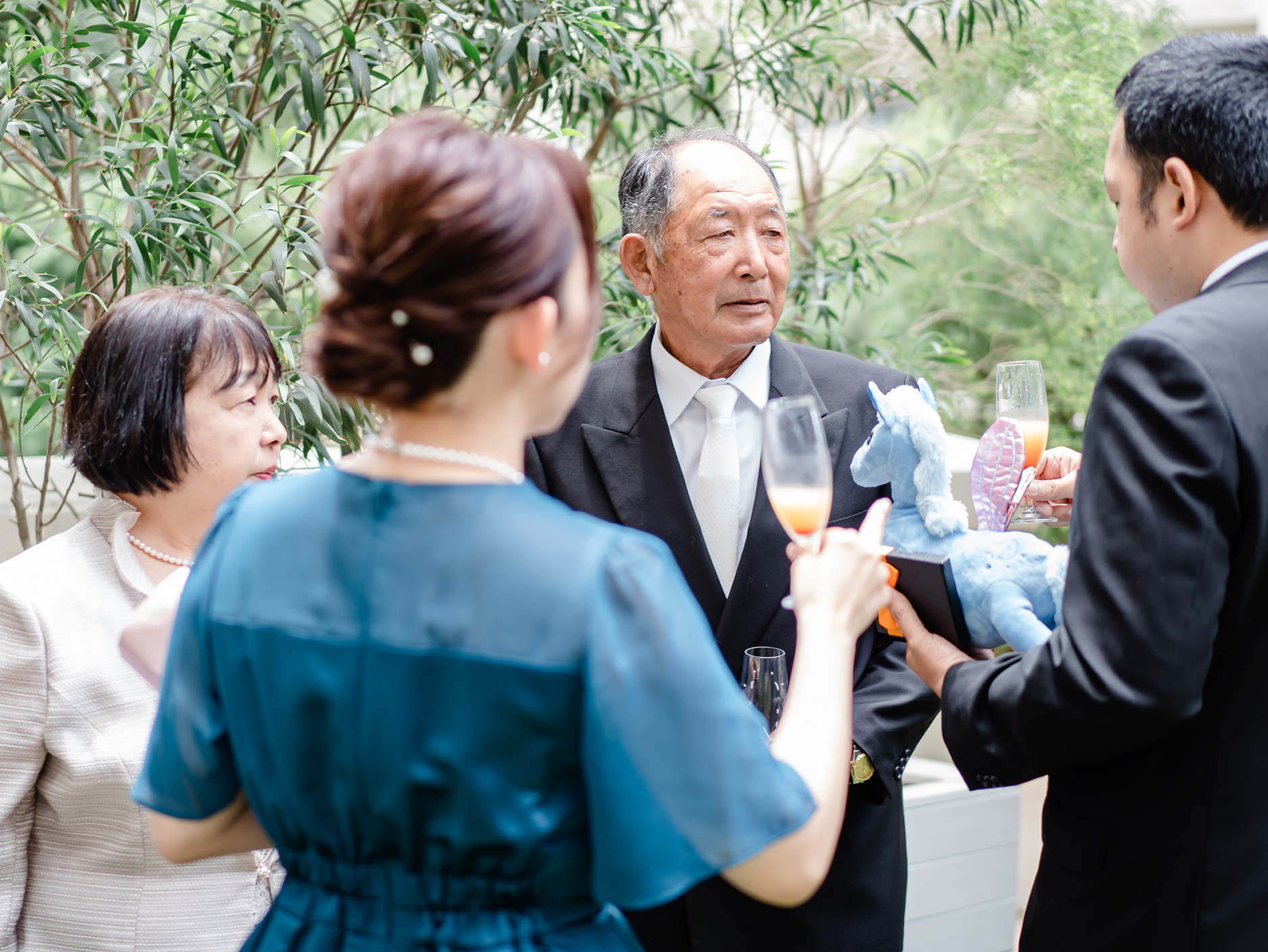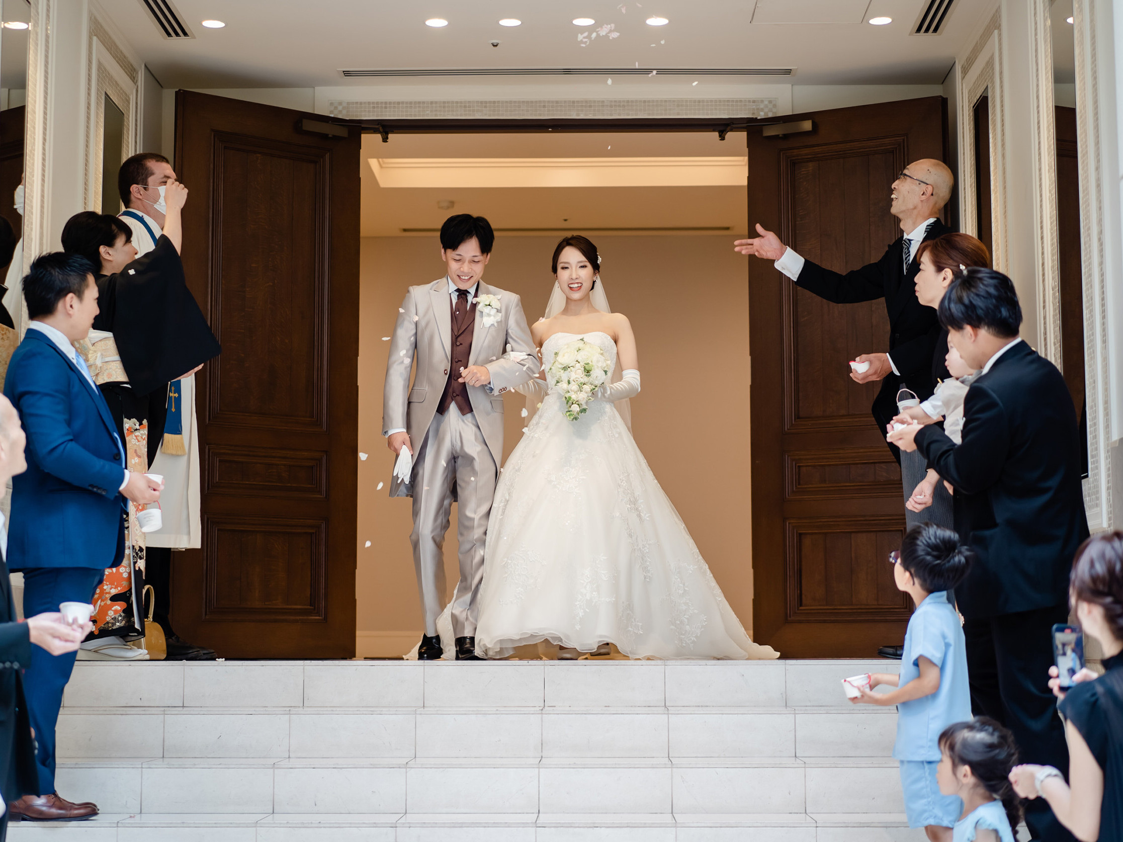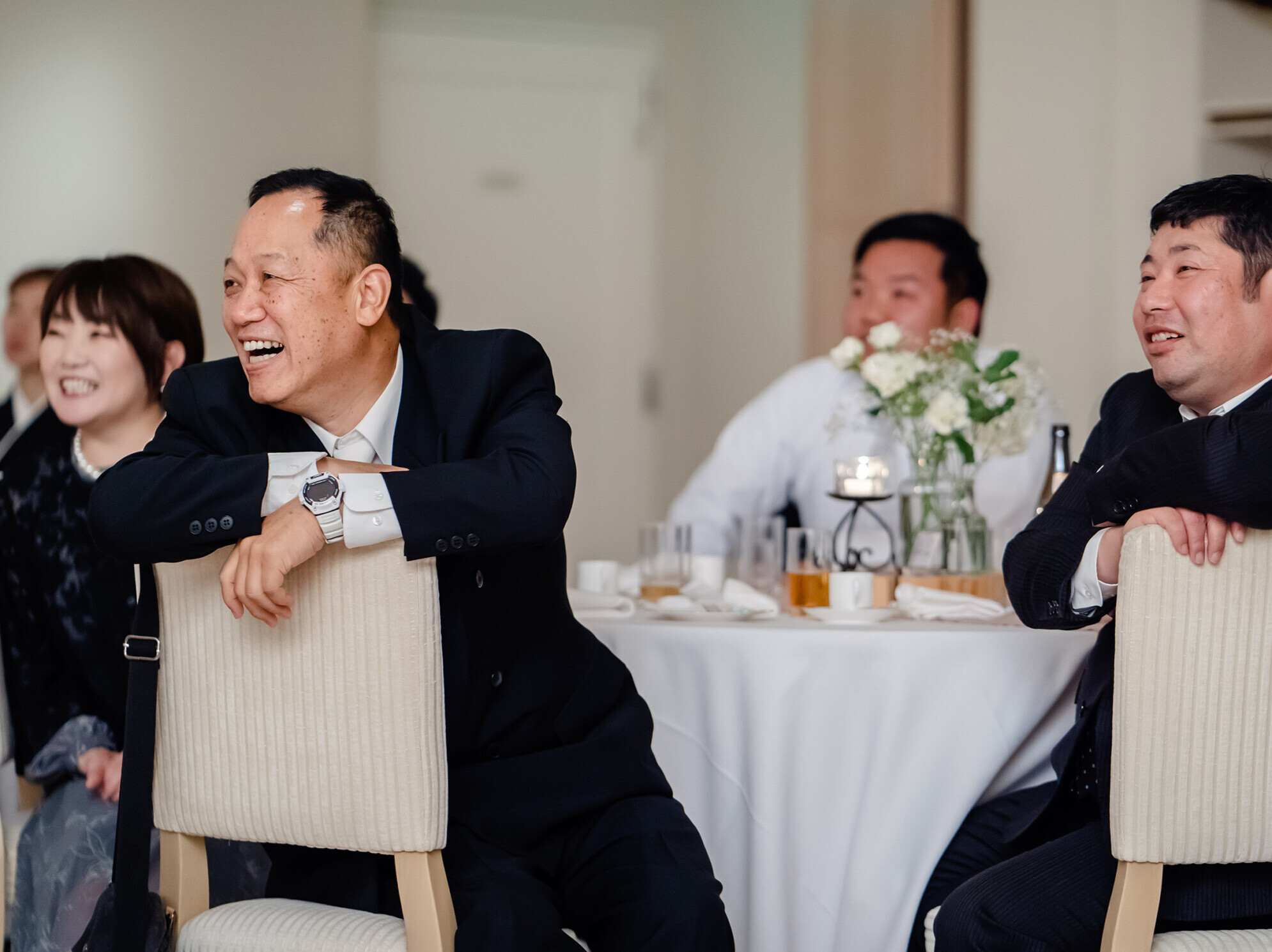 「親御様にドレス姿を直接みてもらいたい」 そんな想いから結婚式をすることを決めたおふたり 挙式の前にファミリーミートを行い、 誰よりも先にドレス姿を見てもらうことにしました 挙式や披露宴ではゲストとの距離が近づくような演出を入れて 写真タイムもしっかり取り、思い出が沢山残せる時間づくりを意識しました