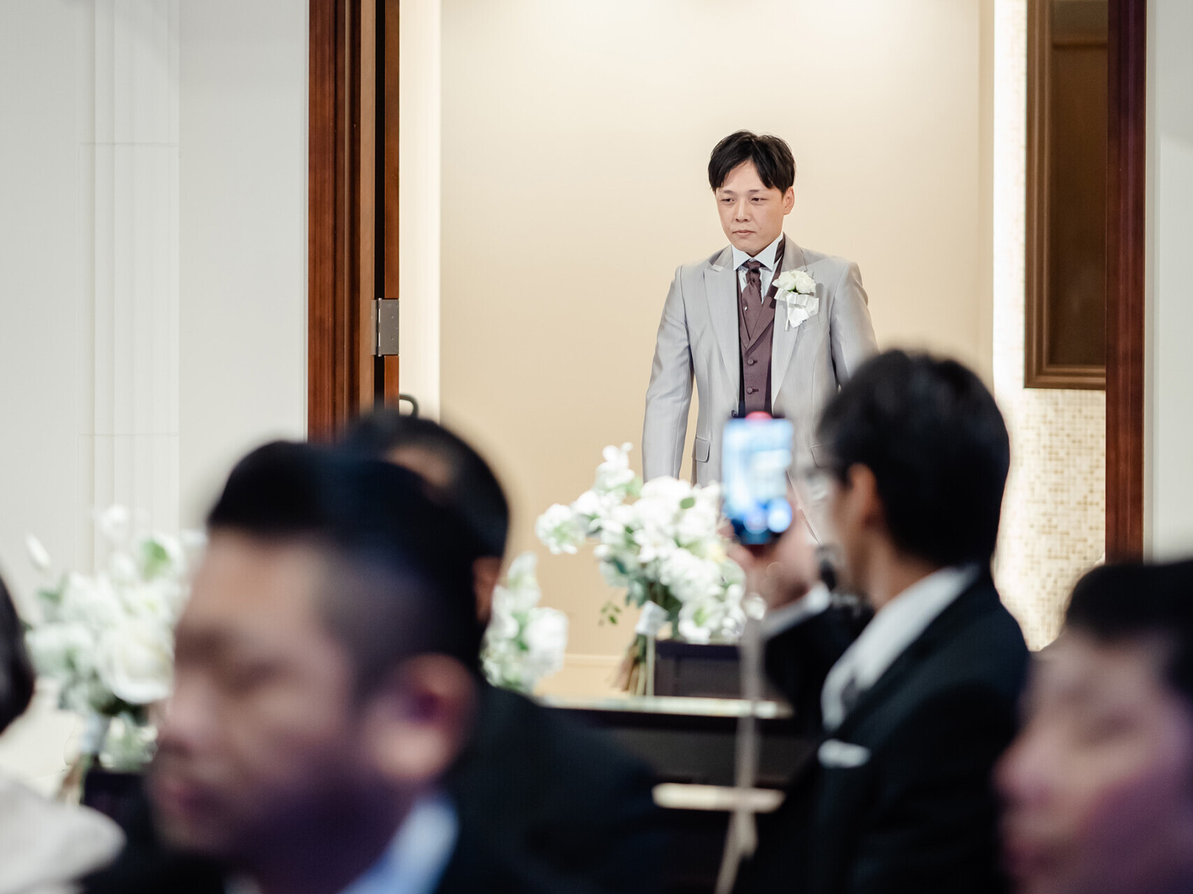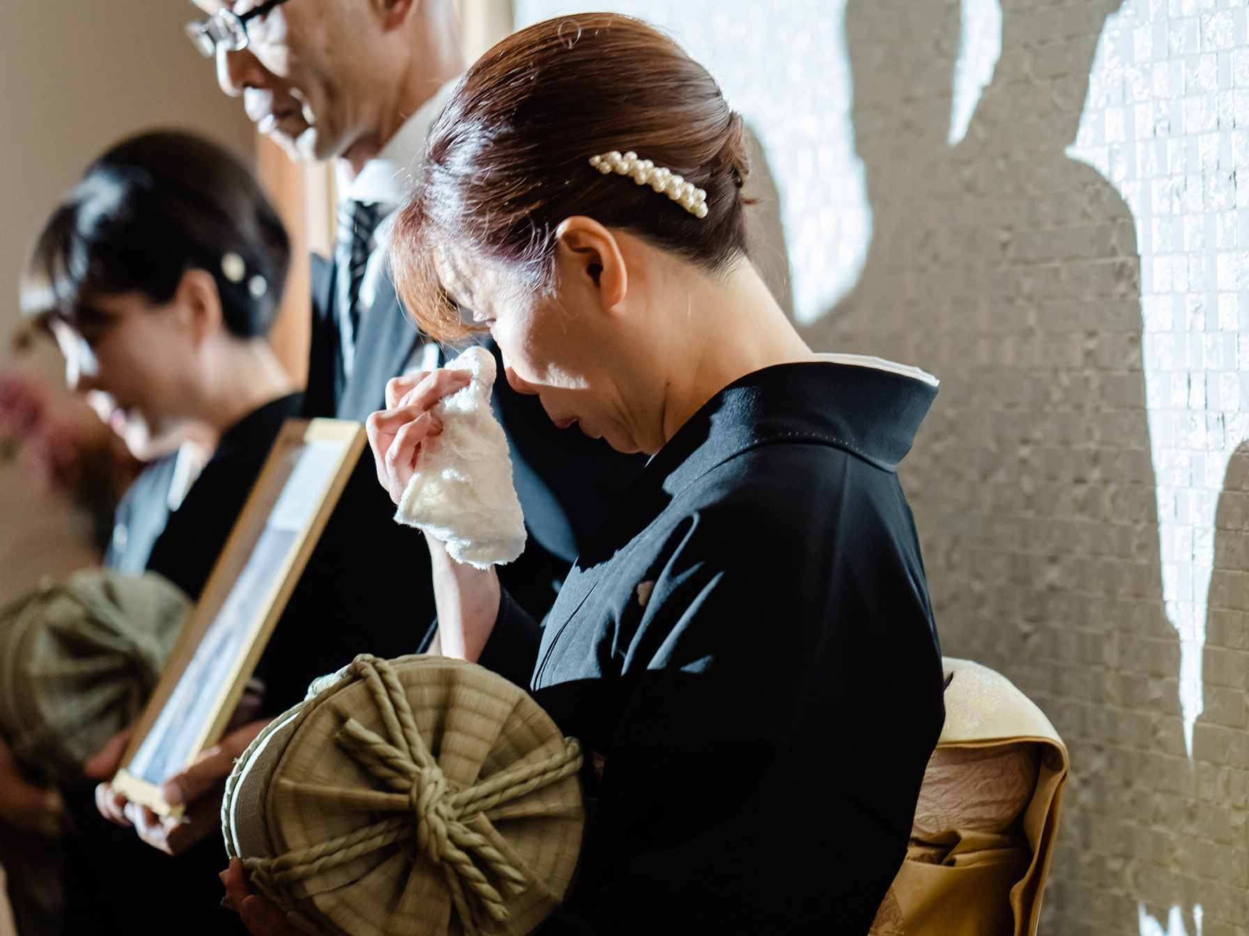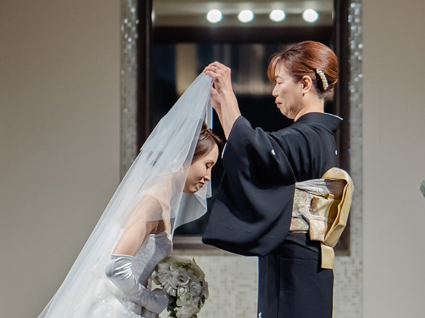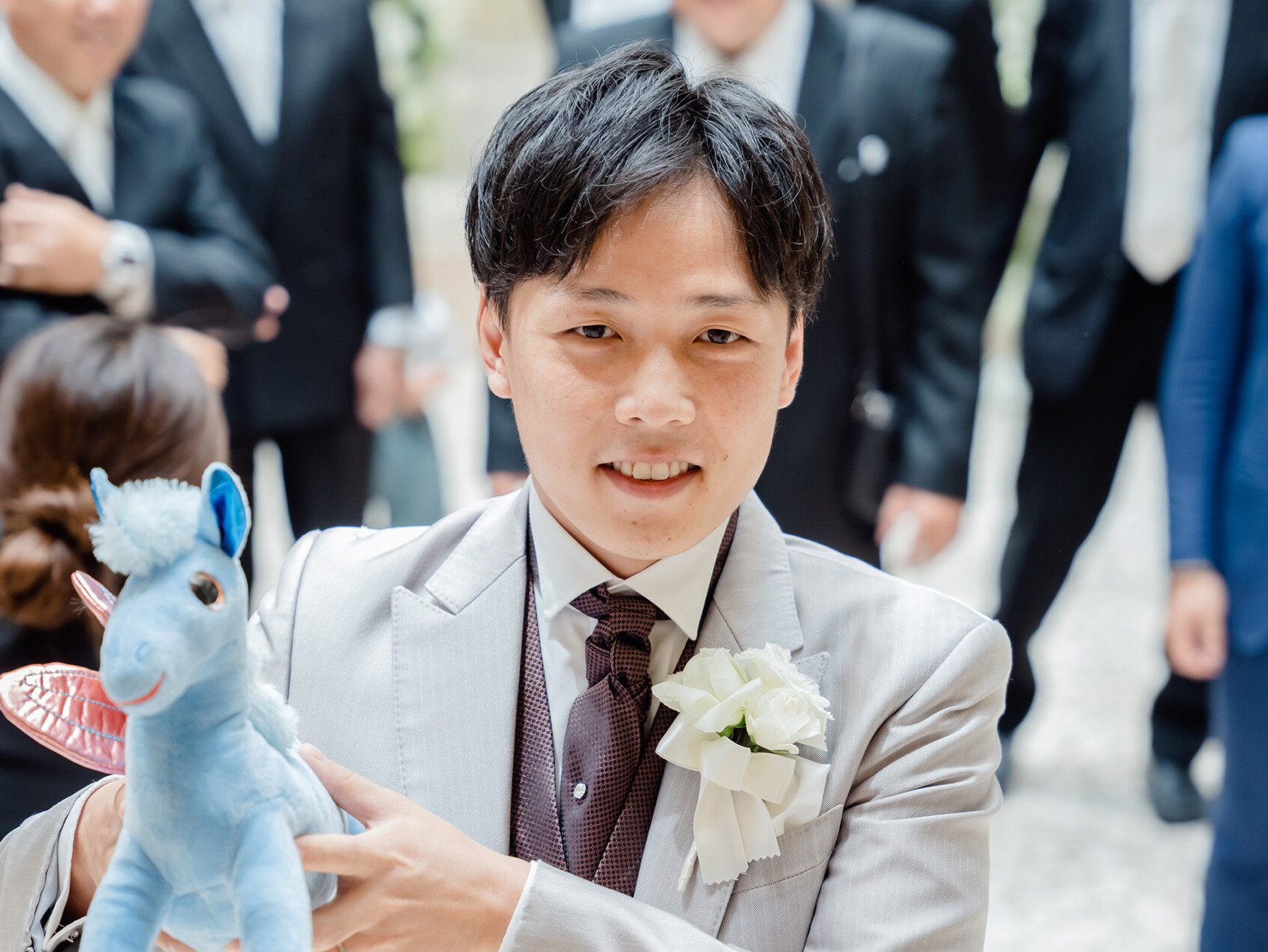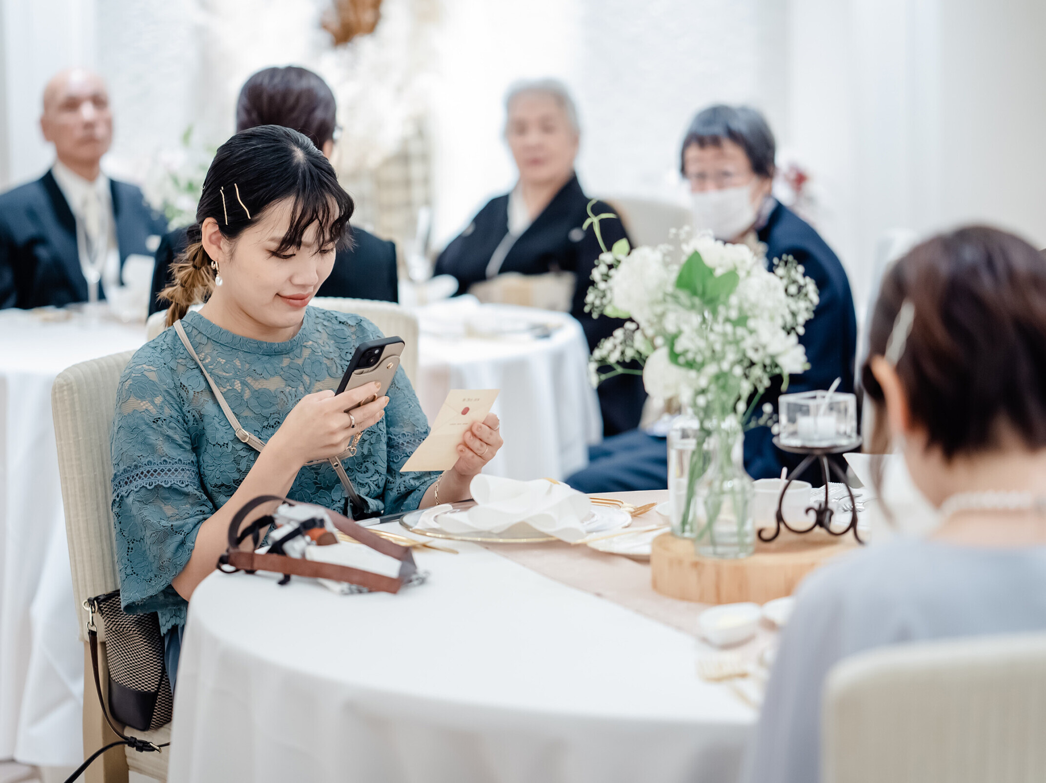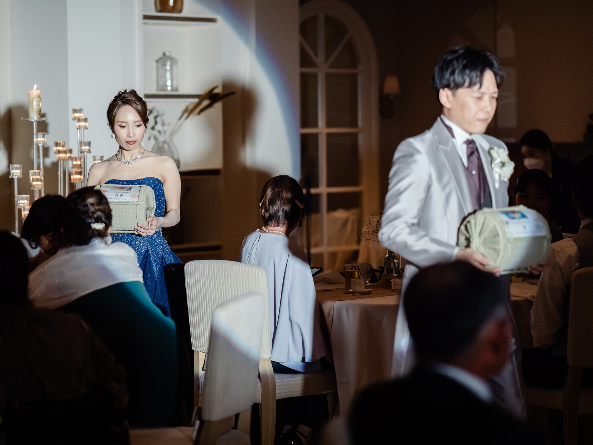 「親御様にドレス姿を直接みてもらいたい」 そんな想いから結婚式をすることを決めたおふたり 挙式の前にファミリーミートを行い、 誰よりも先にドレス姿を見てもらうことにしました 挙式や披露宴ではゲストとの距離が近づくような演出を入れて 写真タイムもしっかり取り、思い出が沢山残せる時間づくりを意識しました