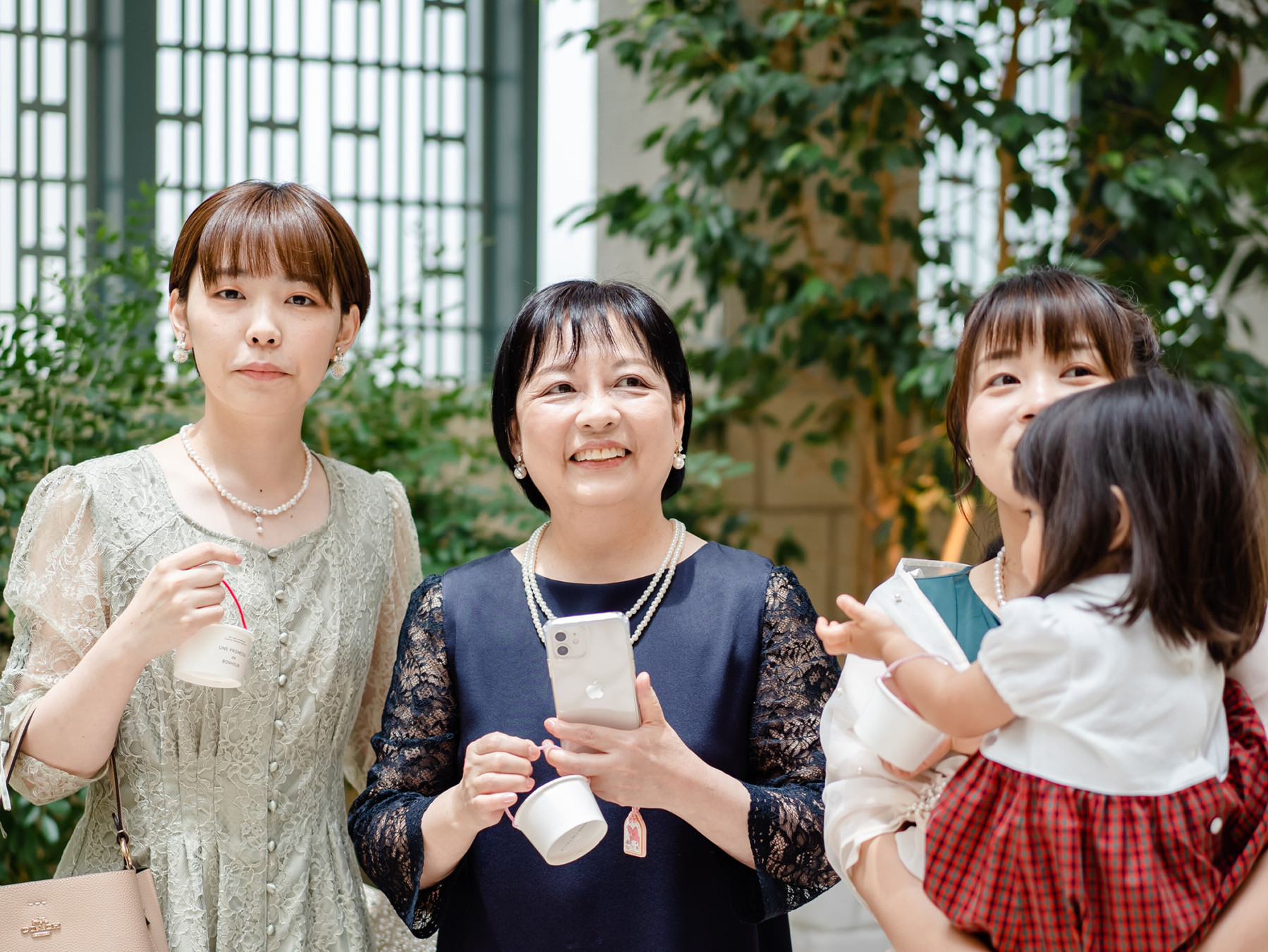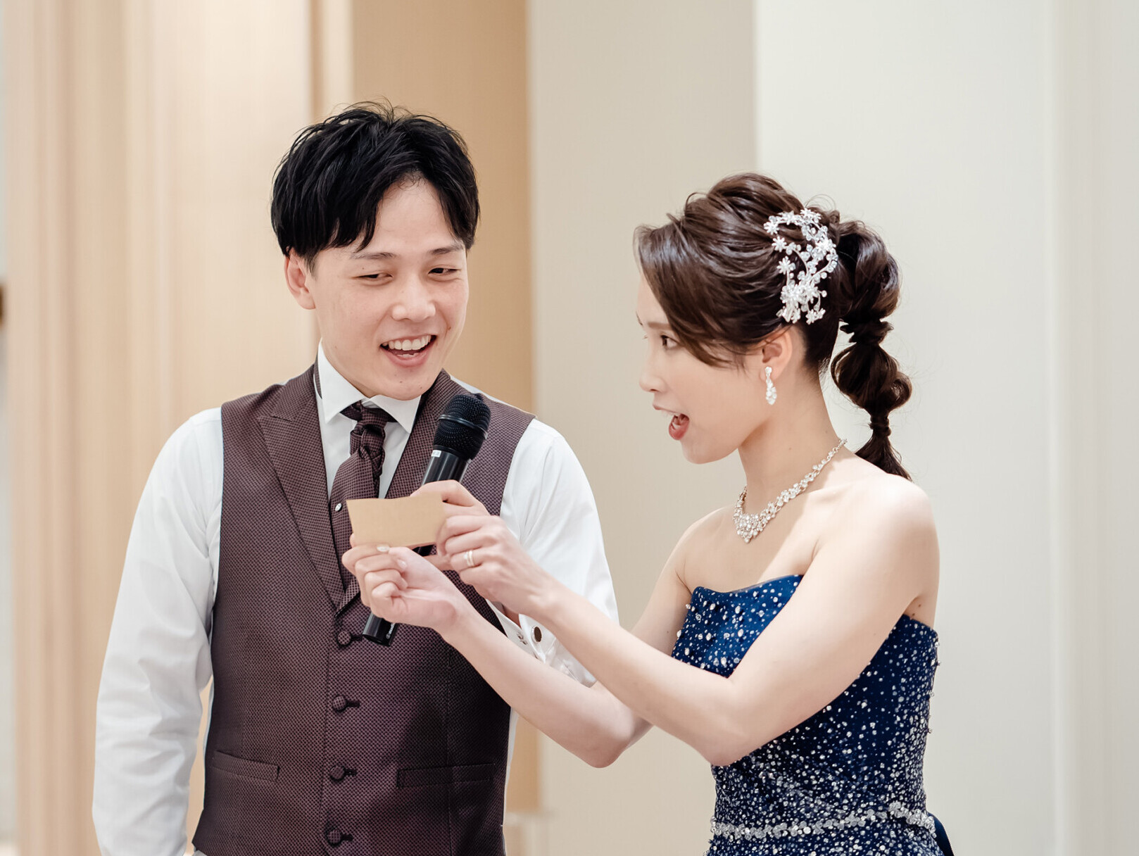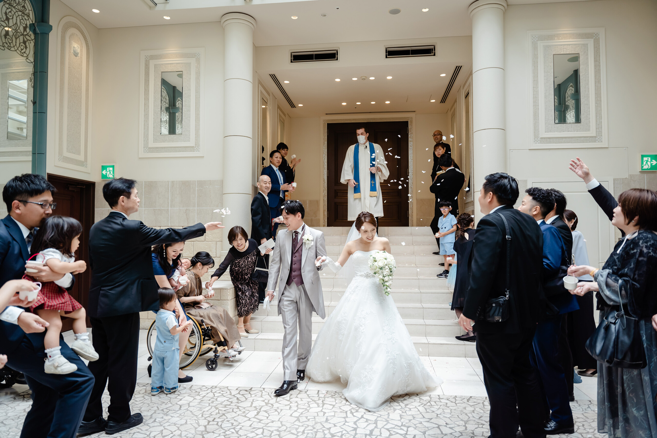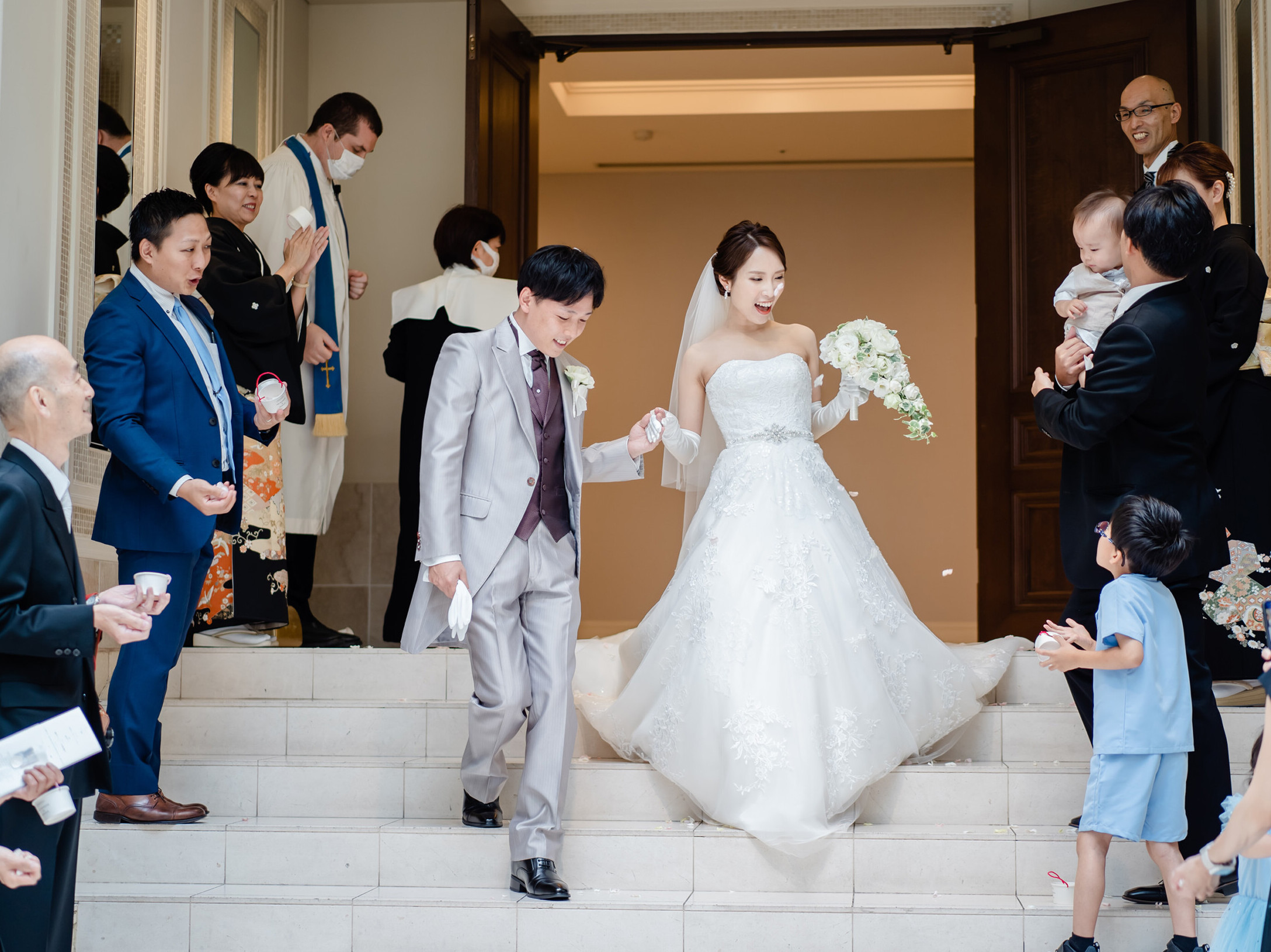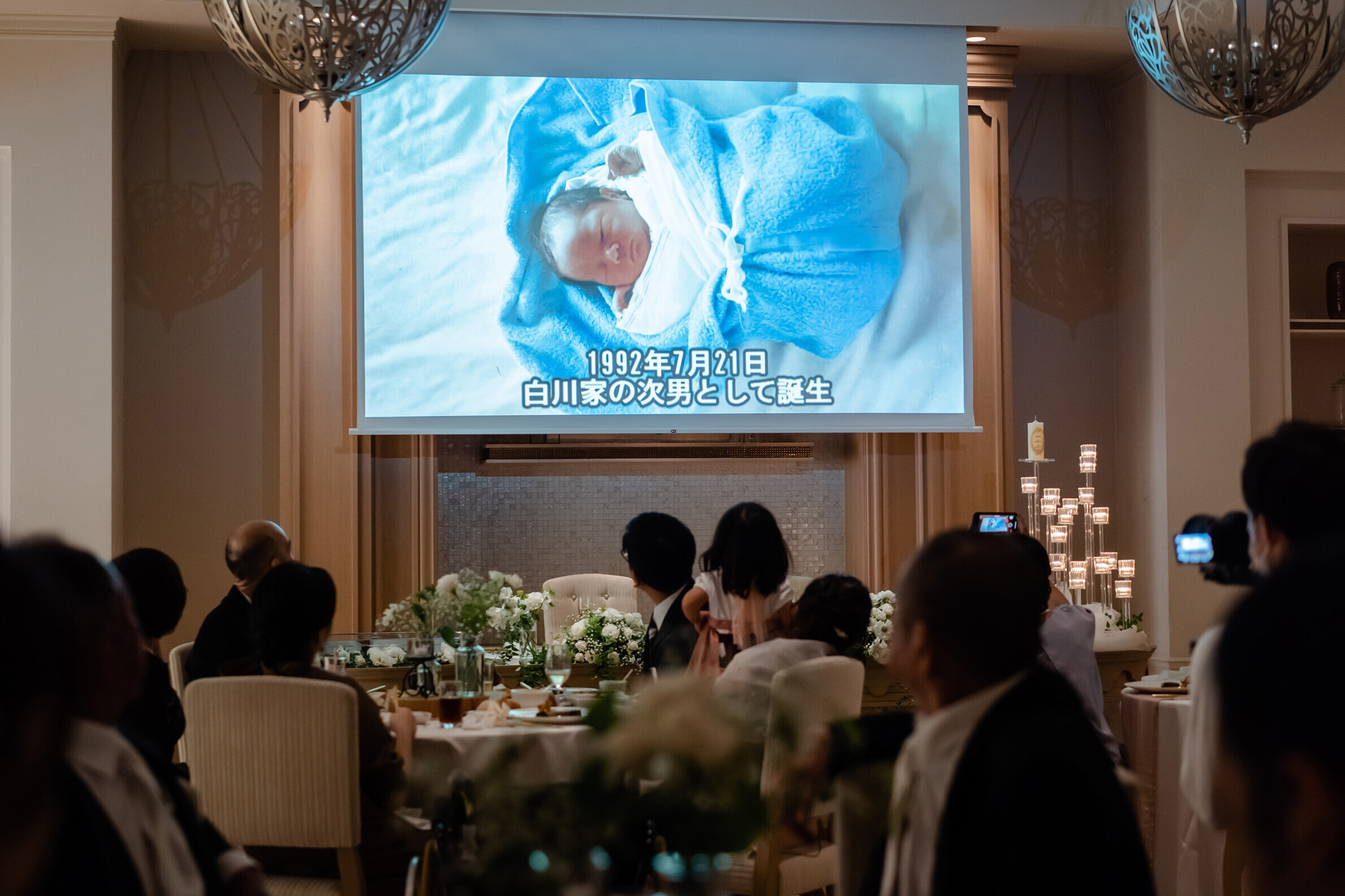 「親御様にドレス姿を直接みてもらいたい」 そんな想いから結婚式をすることを決めたおふたり 挙式の前にファミリーミートを行い、 誰よりも先にドレス姿を見てもらうことにしました 挙式や披露宴ではゲストとの距離が近づくような演出を入れて 写真タイムもしっかり取り、思い出が沢山残せる時間づくりを意識しました