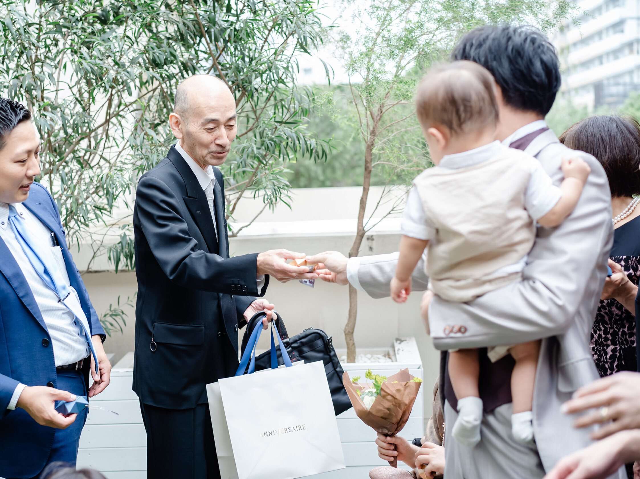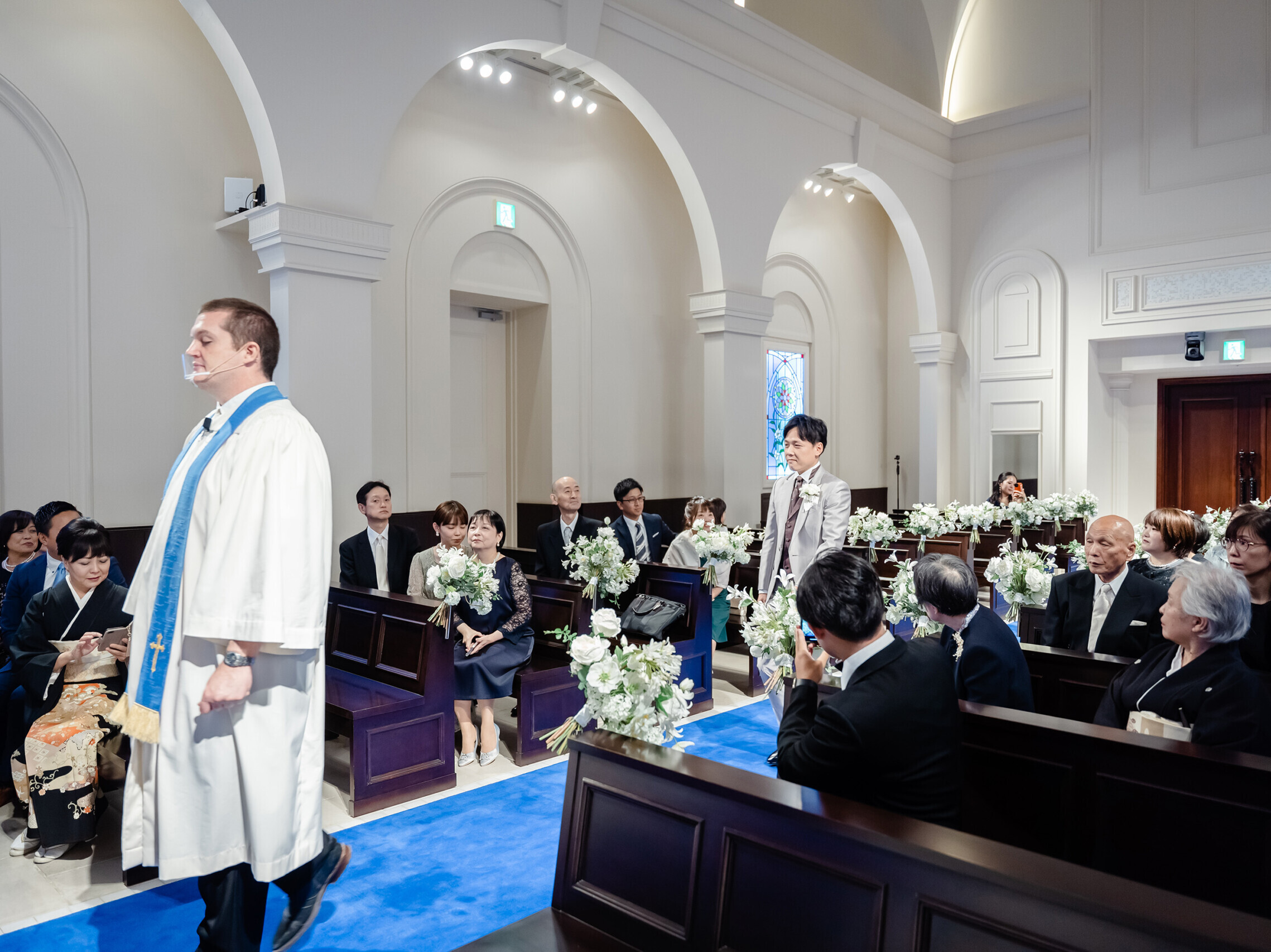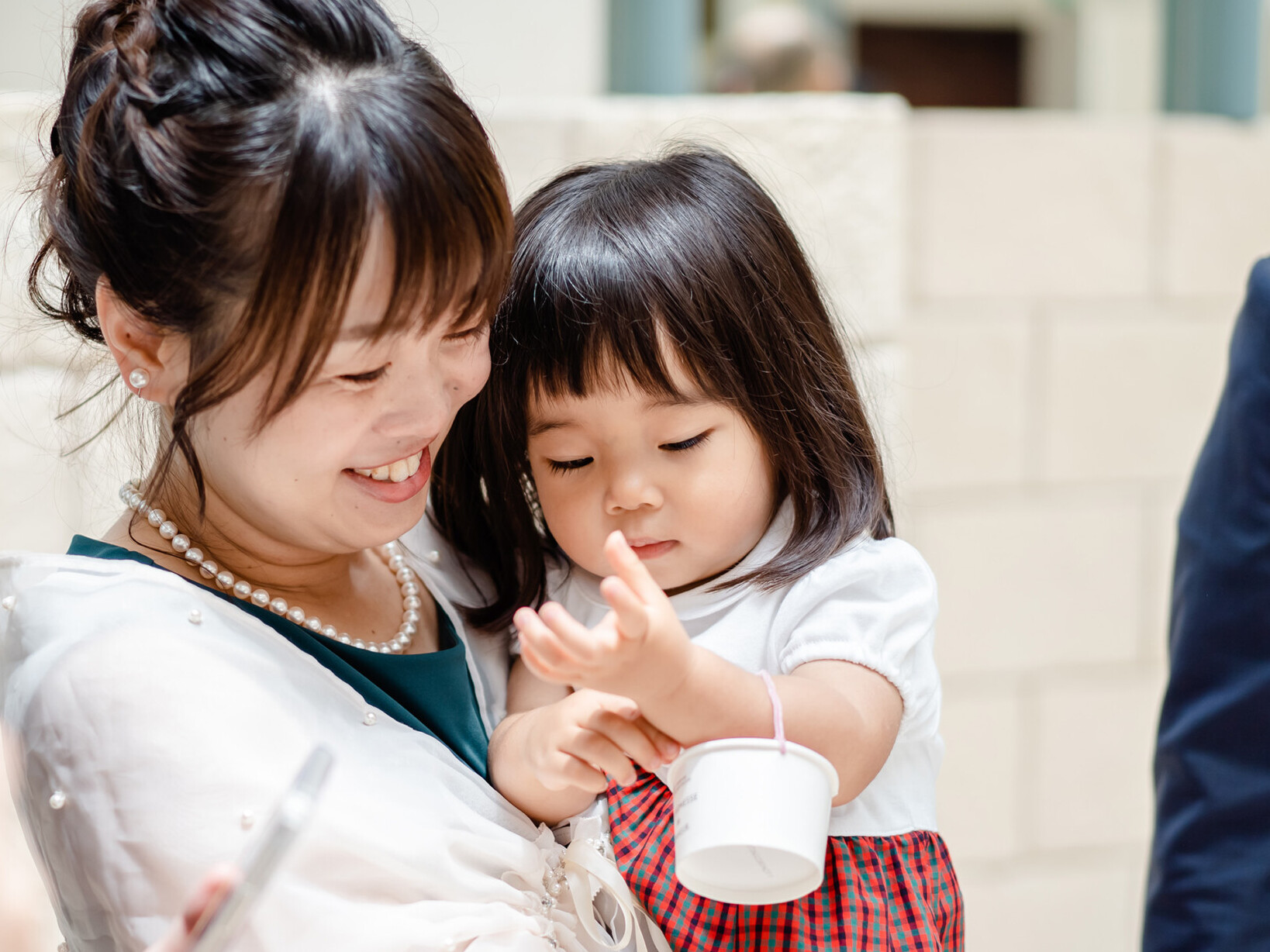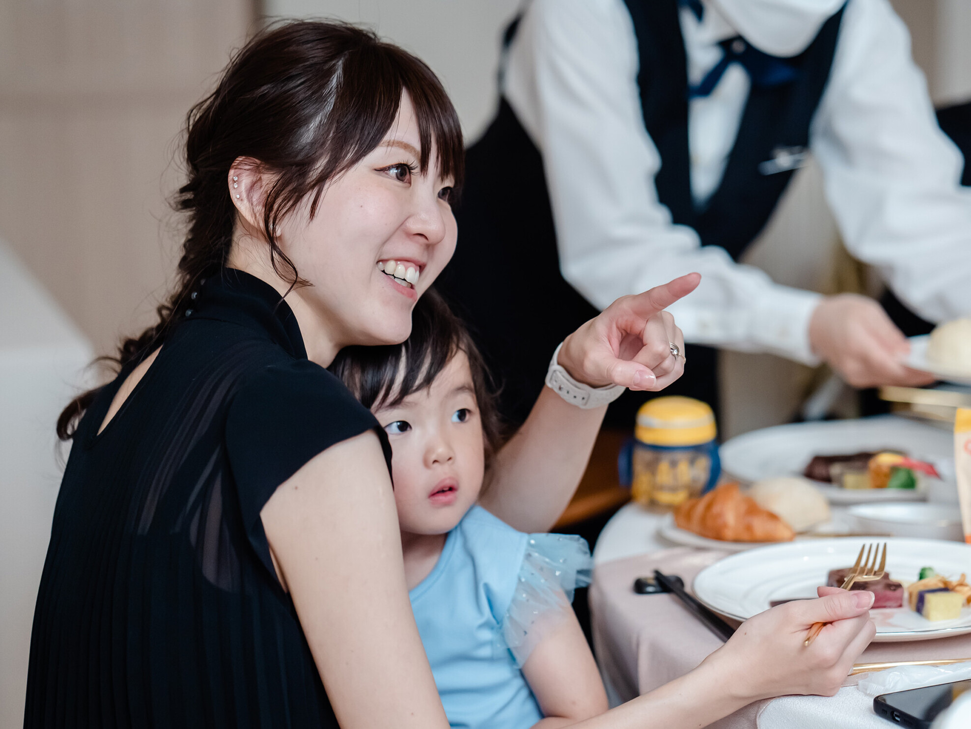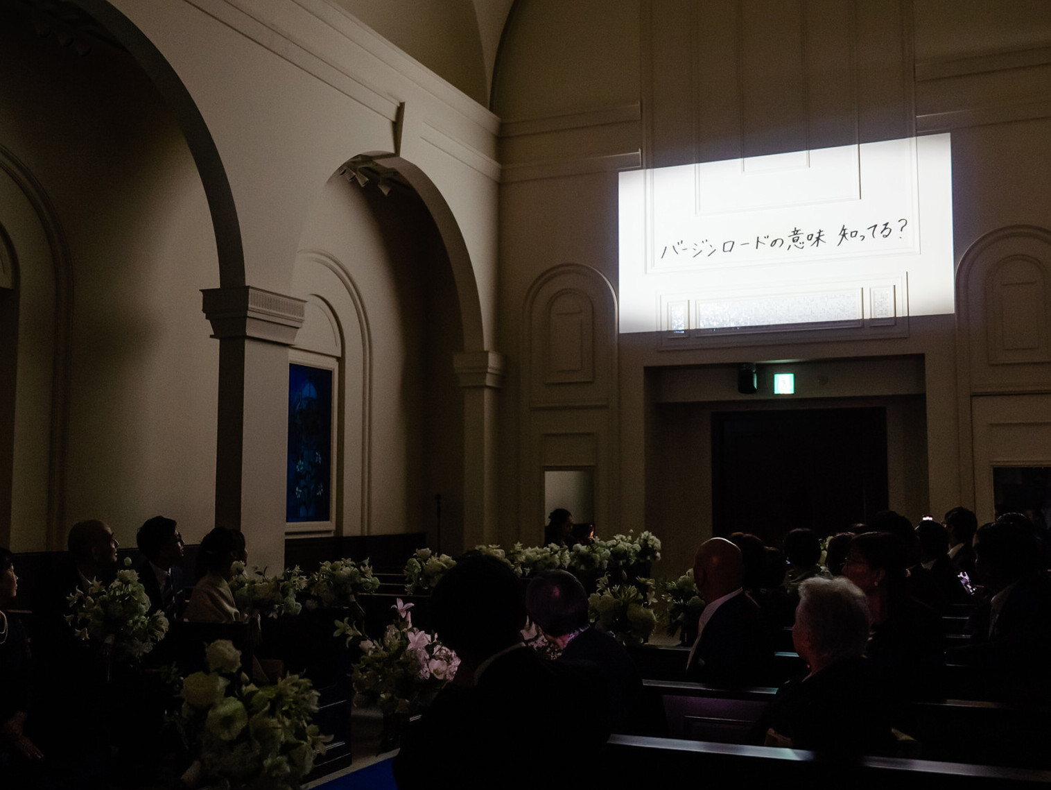 「親御様にドレス姿を直接みてもらいたい」 そんな想いから結婚式をすることを決めたおふたり 挙式の前にファミリーミートを行い、 誰よりも先にドレス姿を見てもらうことにしました 挙式や披露宴ではゲストとの距離が近づくような演出を入れて 写真タイムもしっかり取り、思い出が沢山残せる時間づくりを意識しました