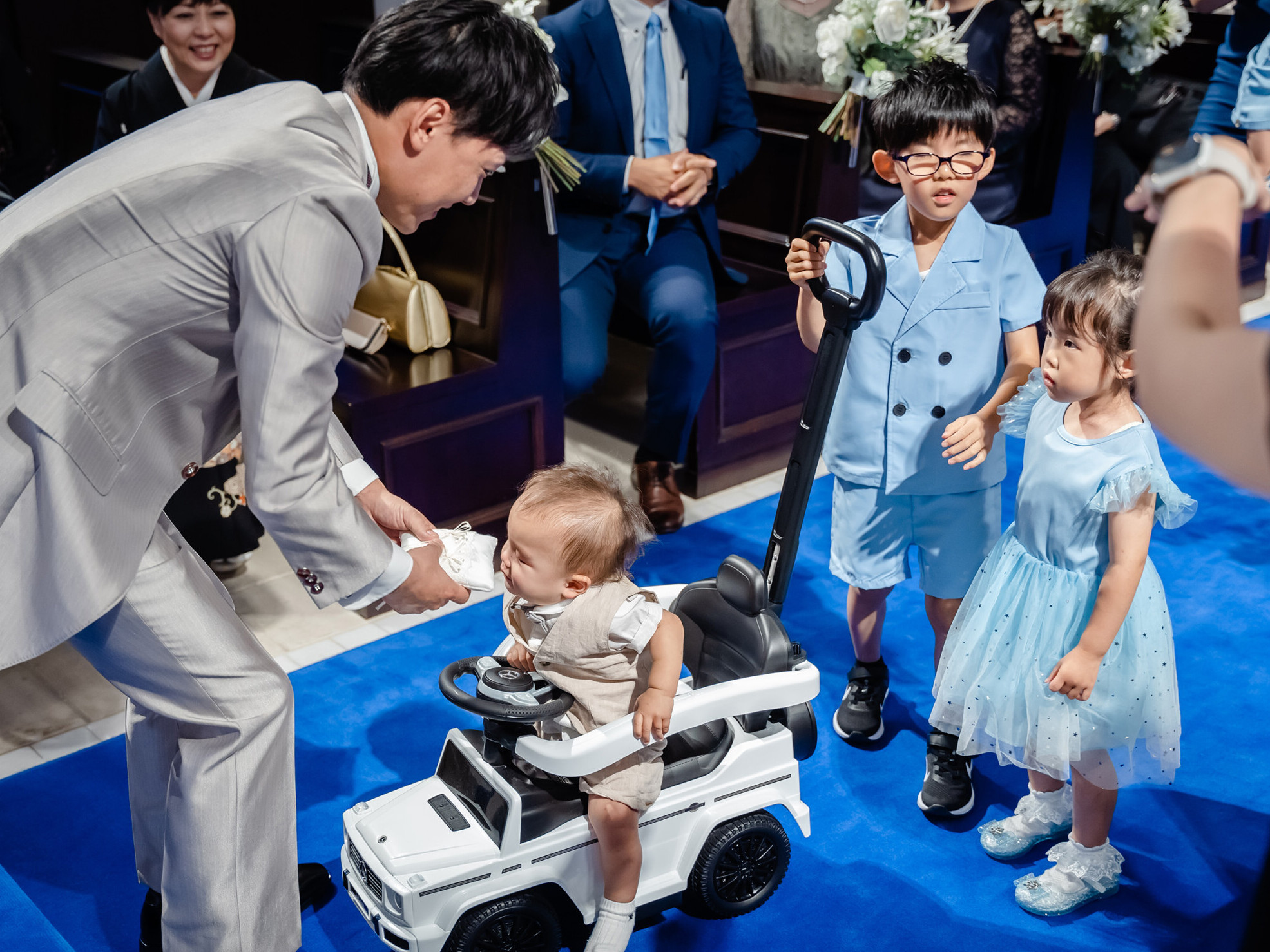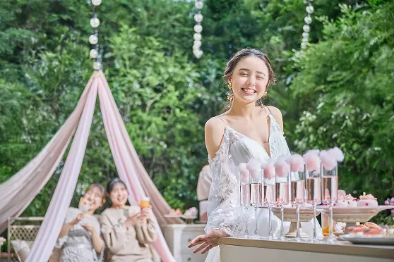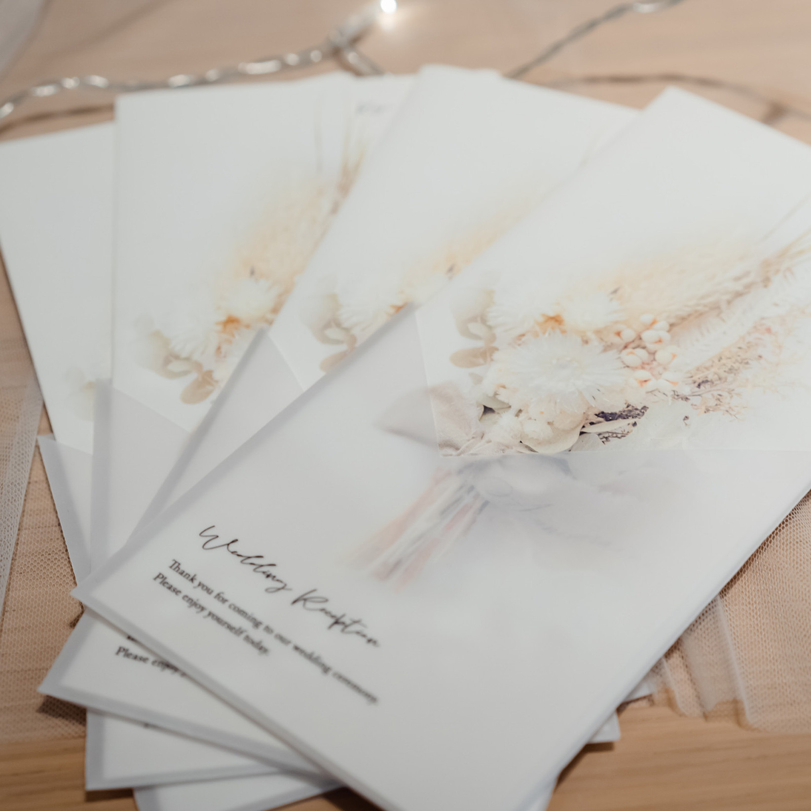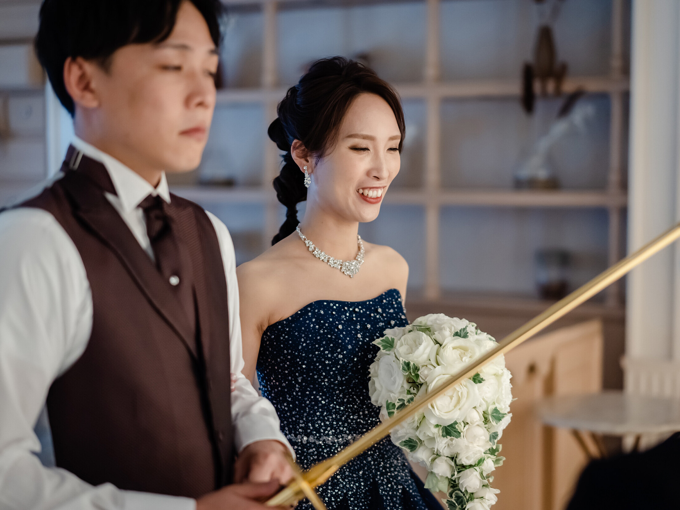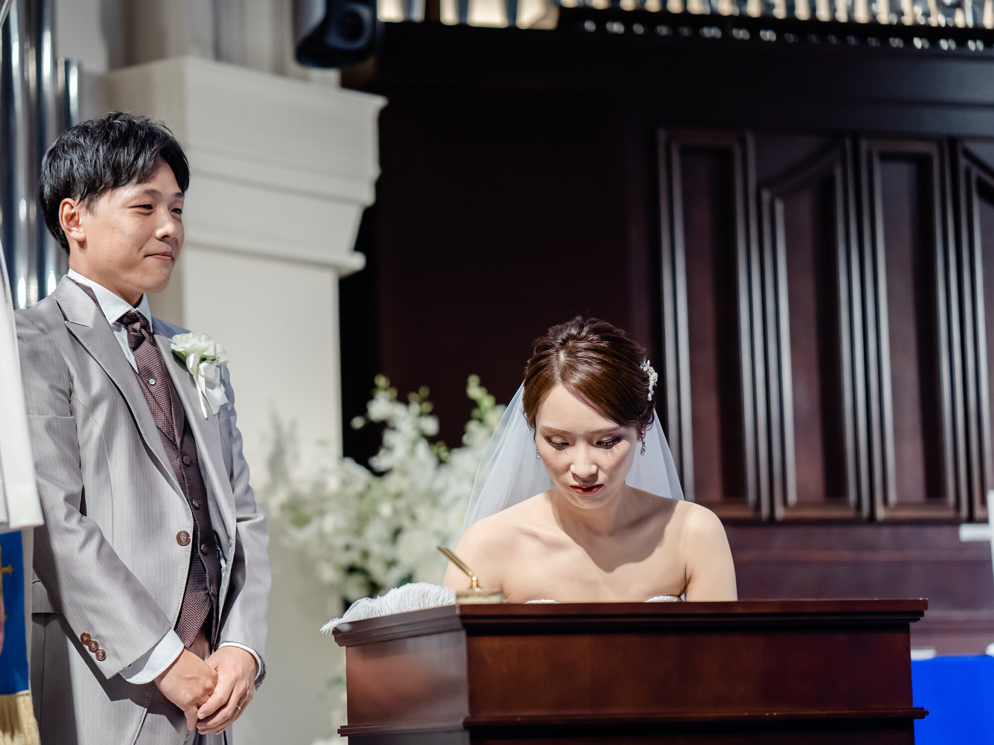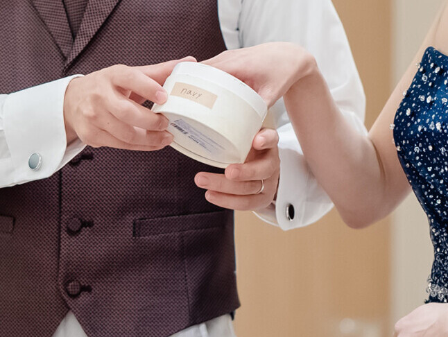 「親御様にドレス姿を直接みてもらいたい」 そんな想いから結婚式をすることを決めたおふたり 挙式の前にファミリーミートを行い、 誰よりも先にドレス姿を見てもらうことにしました 挙式や披露宴ではゲストとの距離が近づくような演出を入れて 写真タイムもしっかり取り、思い出が沢山残せる時間づくりを意識しました