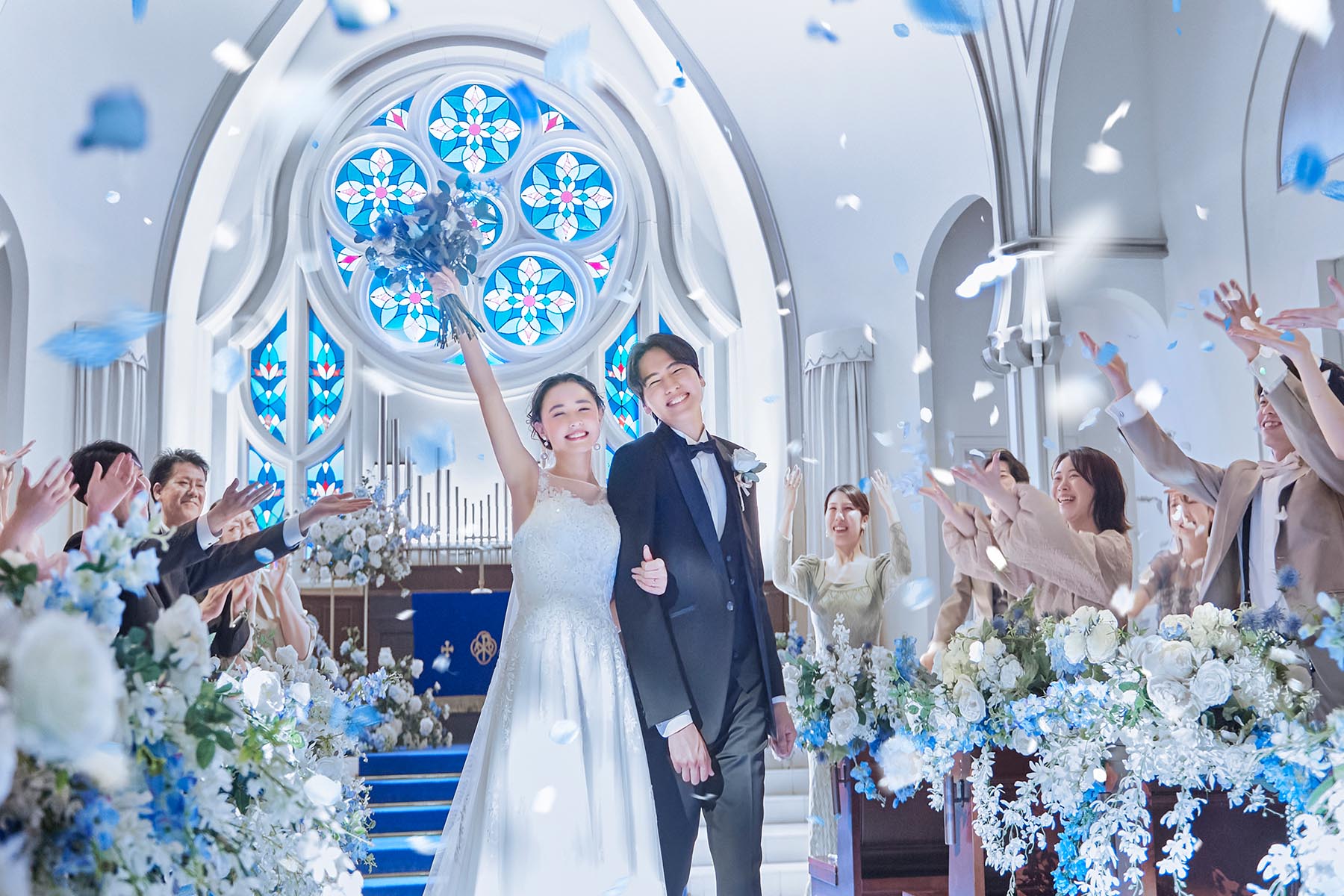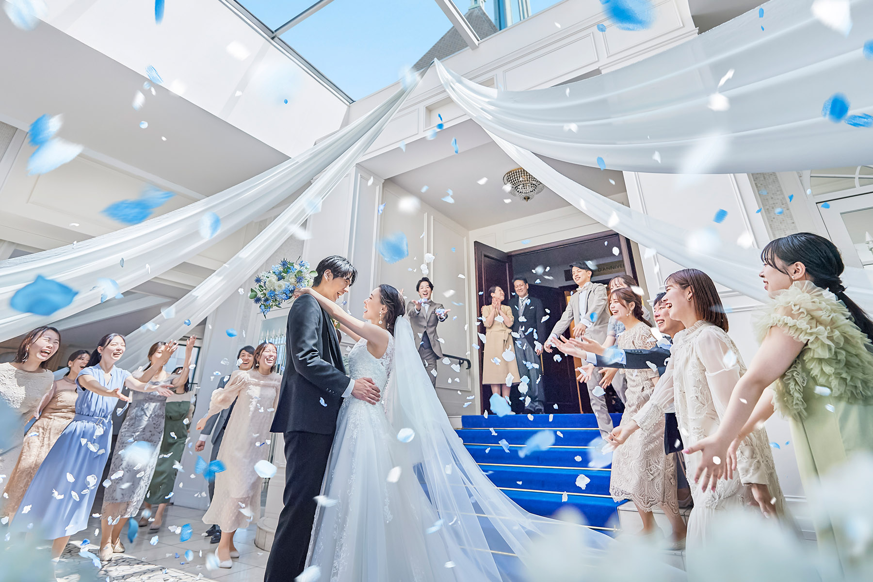 友人たちの心からの「おめでとう」を一身に浴びた瞬間、挙式での緊張はやわらぎ、おふたりにやっと笑顔がこぼれます