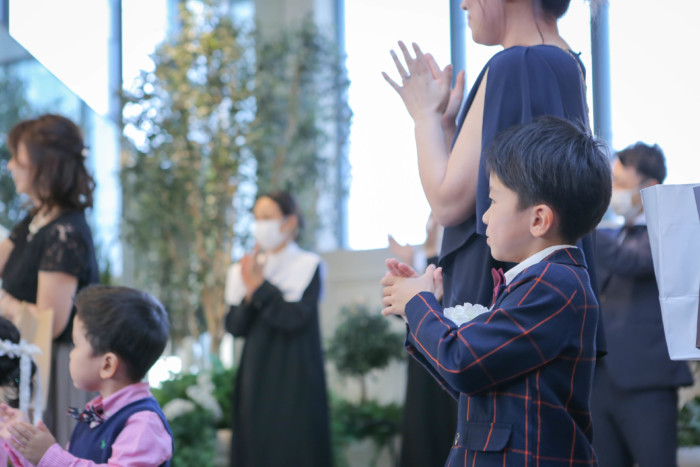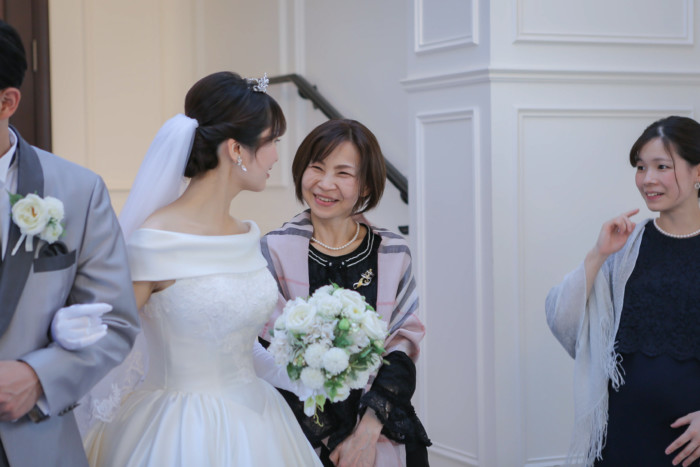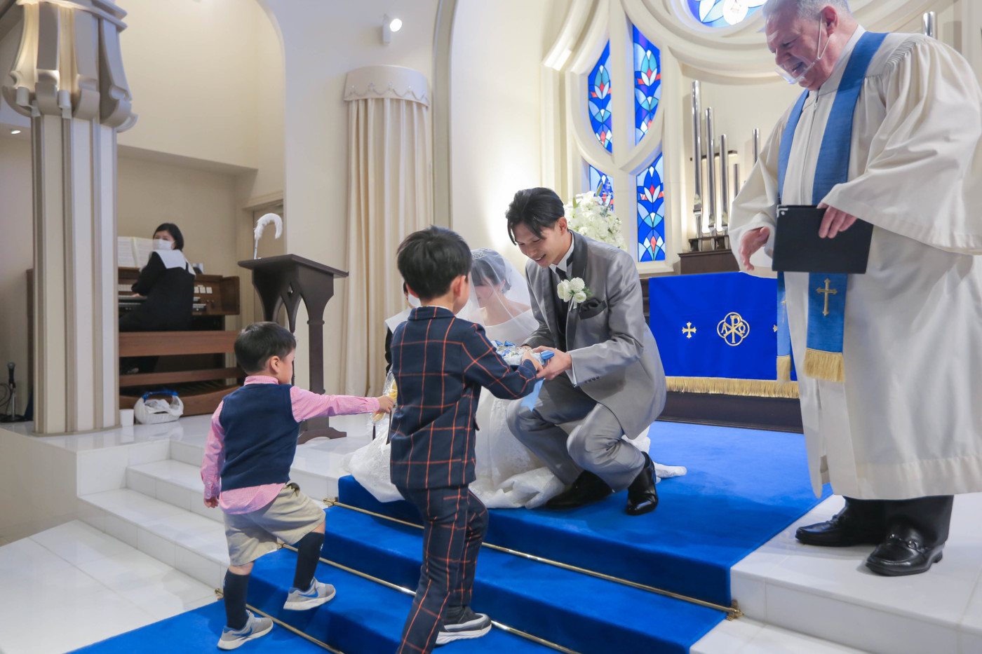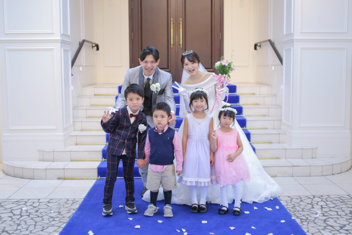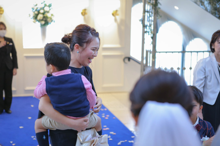 フォトウエディングをご選択されたおふたり。 ご新婦お母様より、「挙式をサプライズでプレゼントしたい」とご相談を頂きました。 撮影前にチャペルの扉前でお母様からサプライズのカミングアウト! とても驚いてくださったご新婦の表情にお母様も笑顔が溢れていました。 挙式会場にはお母様と手を取り合いご入場、ベールダウンのセレモニー。 可愛らしいフラワーガール・リングボーイのお手伝いにもほっこり。 挙式が結びとなり、おふたりが退場された後にもサプライズが! ゲスト皆様が花道を作って下さるフラワーシャワーへ! たくさんのお写真を撮ったり、皆様とお話がしっかり出来る空間に。 家族で過ごす特別な記念日となりました。