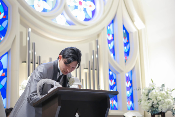 挙式が結びとなり、フォトウエディングのお時間に。 ご新郎はご新婦へのサプライズをご用意していらっしゃいました。
