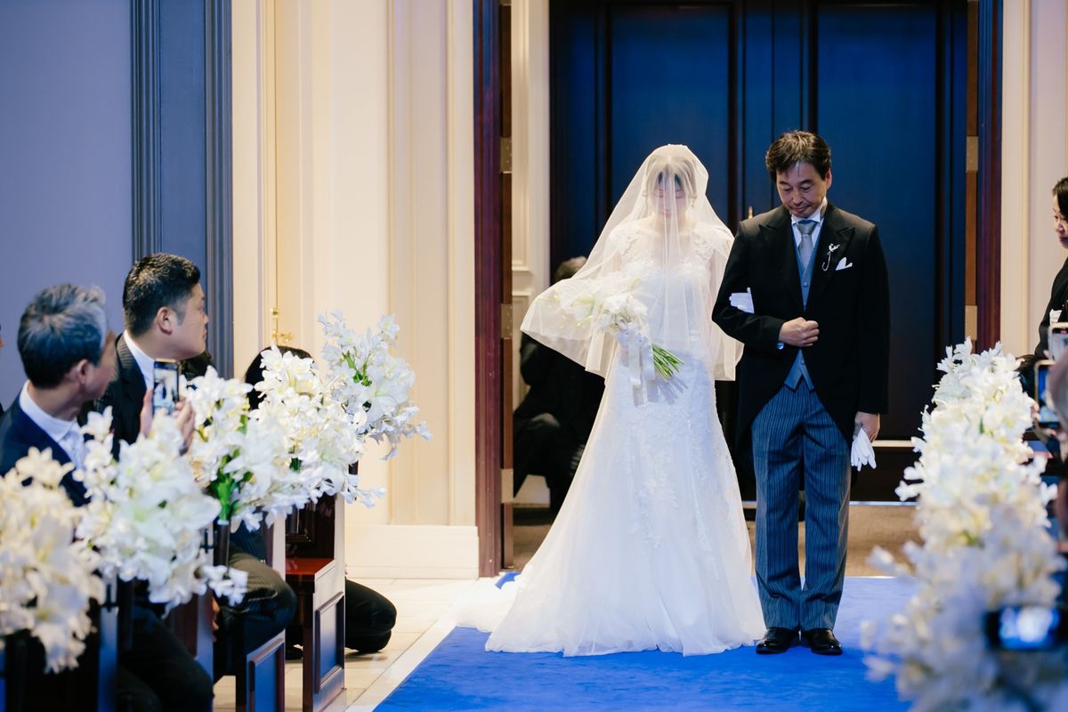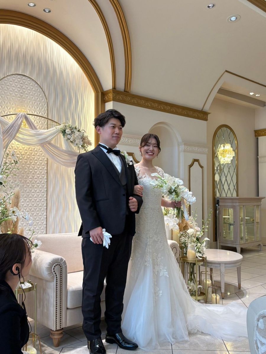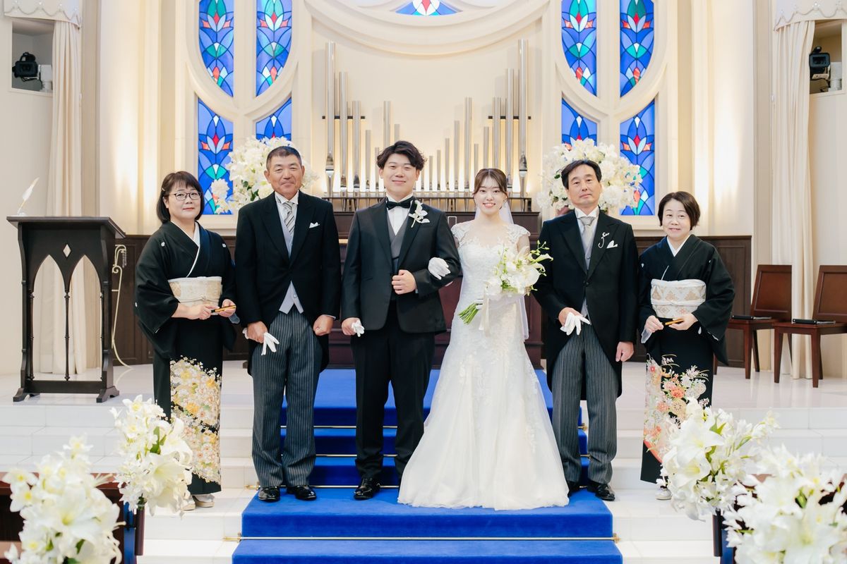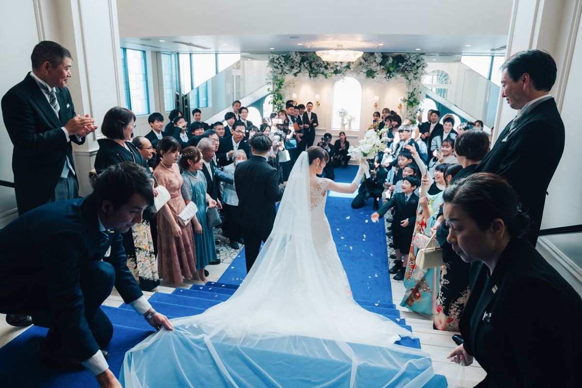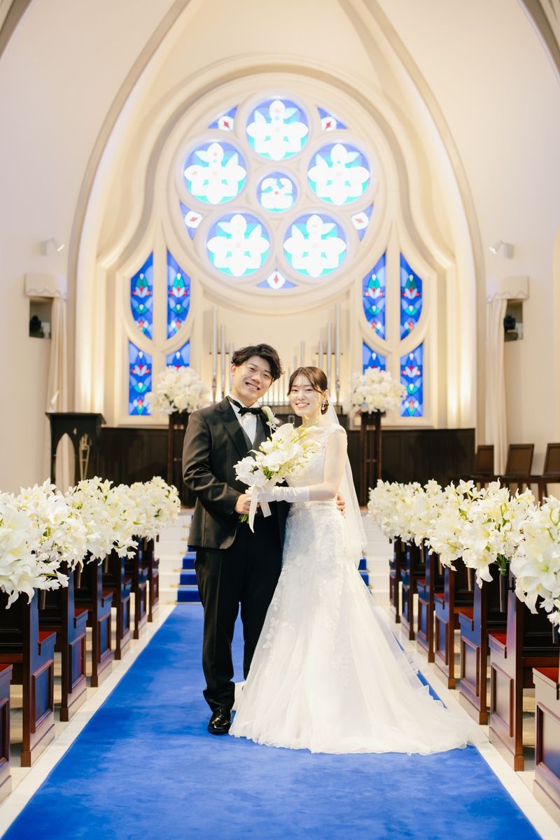 おふたりは、幻想的なロイヤルブルーのチャペルに魅了され、当式場を選ばれました。他にはない特別な雰囲気や、写真映えすることに加え、忘れられない思い出になると感じたそうです。 当日は、白と青のコントラストが美しく、何度も見返したくなる素敵なお写真を撮影されています。 一番感動したのは、入場で扉が開き、大好きな人たちが同じ場所に集まっている光景を見た瞬間で、幸せを実感して胸がいっぱいになったそうです。