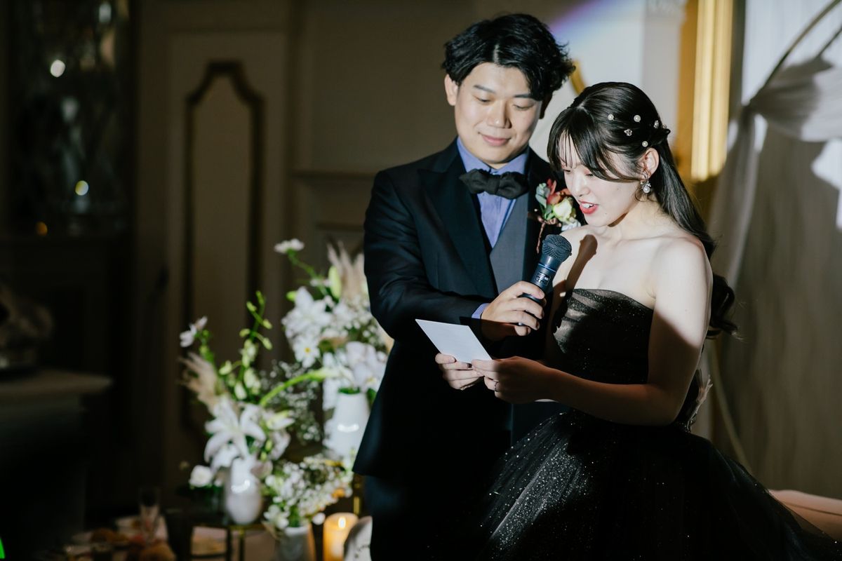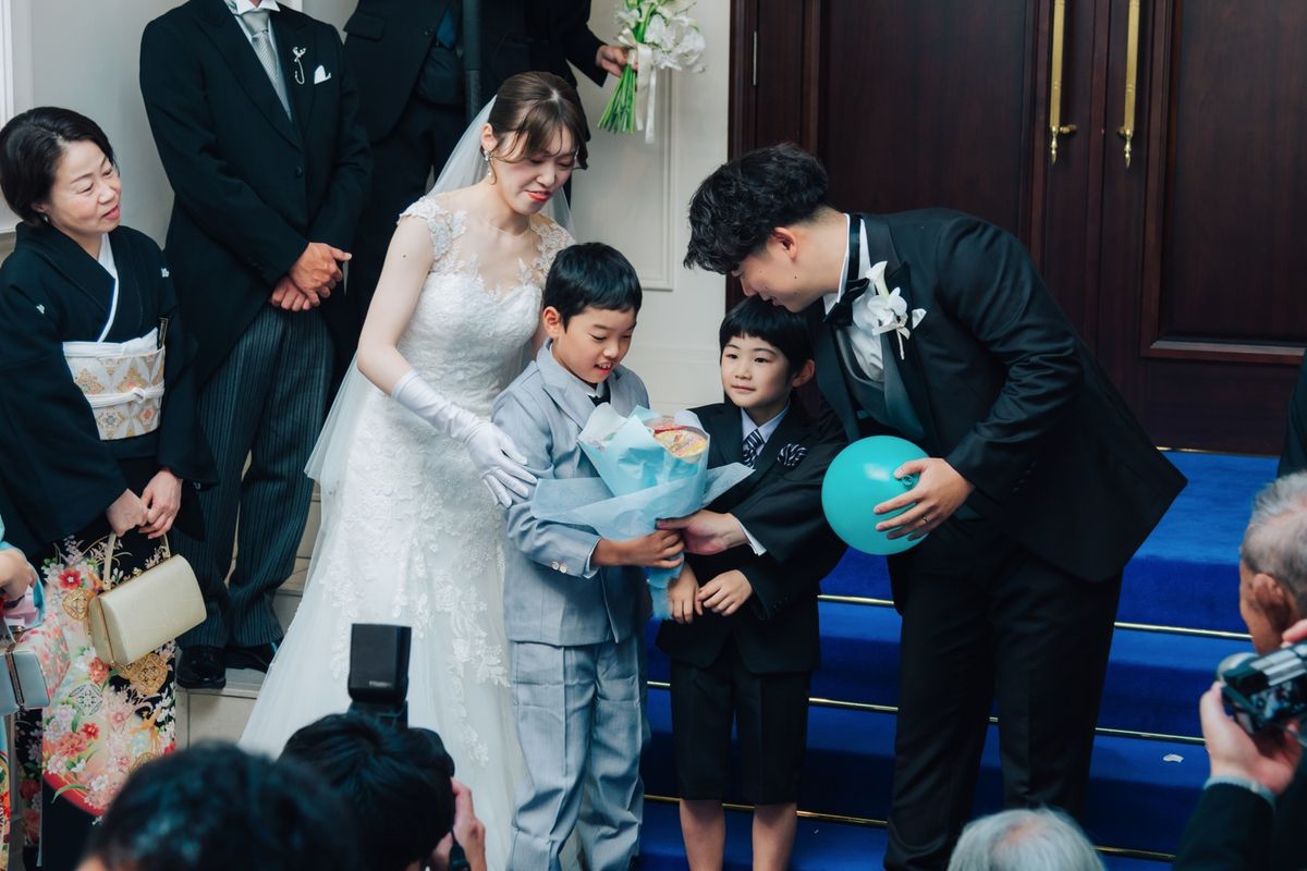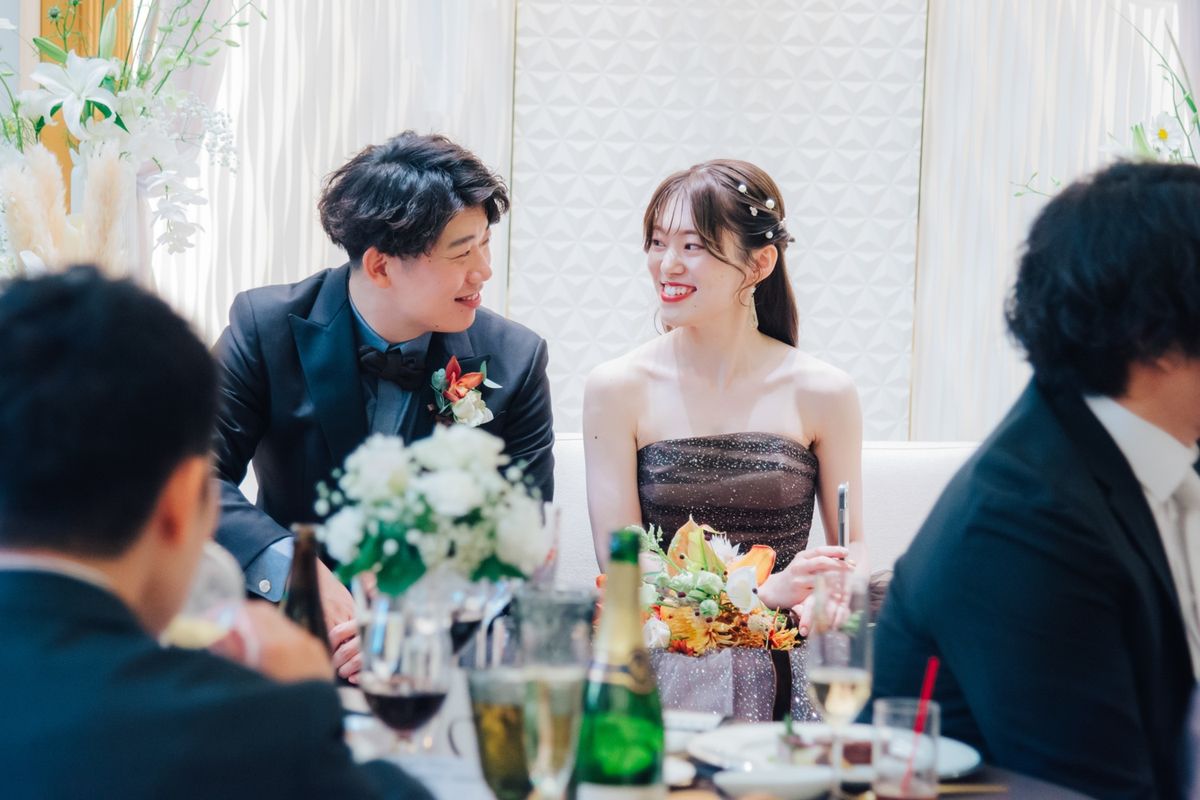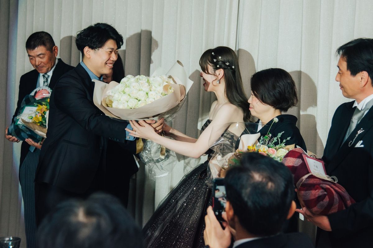 おふたりは普段からお互いのやりたいことや意見をしっかり話し合っているそう。式の準備においても、担当プランナーやスタッフとの相談を重ね、終始笑い合いながら温かな雰囲気で進めていたのが印象的です。ご新郎がサプライズを考案された際は、プランナーがしっかりとサポートしながら企画を進め、皆様に喜んでいただけました。