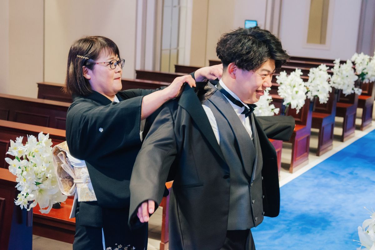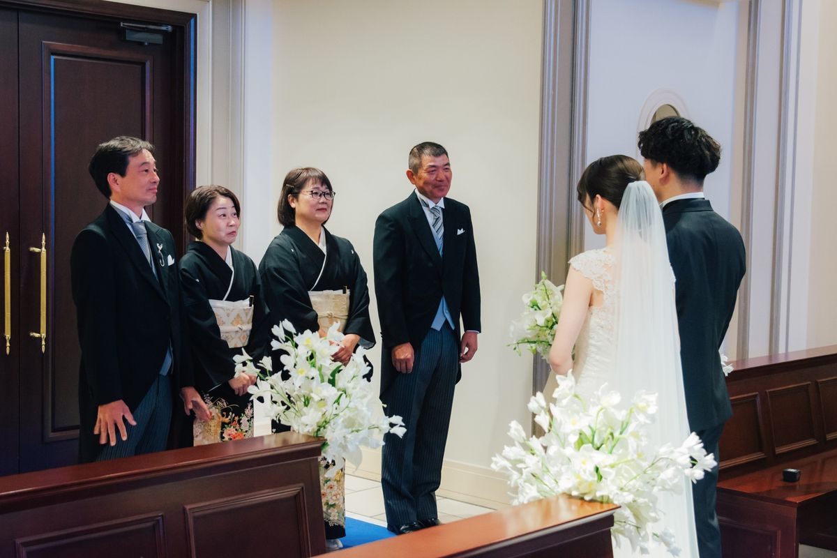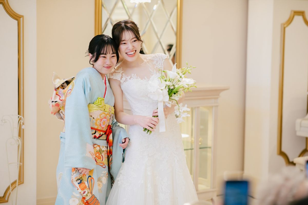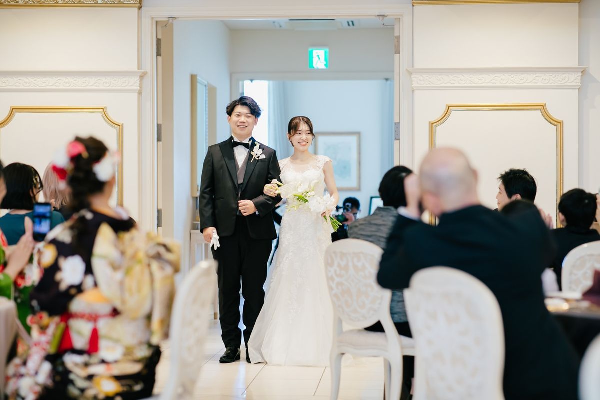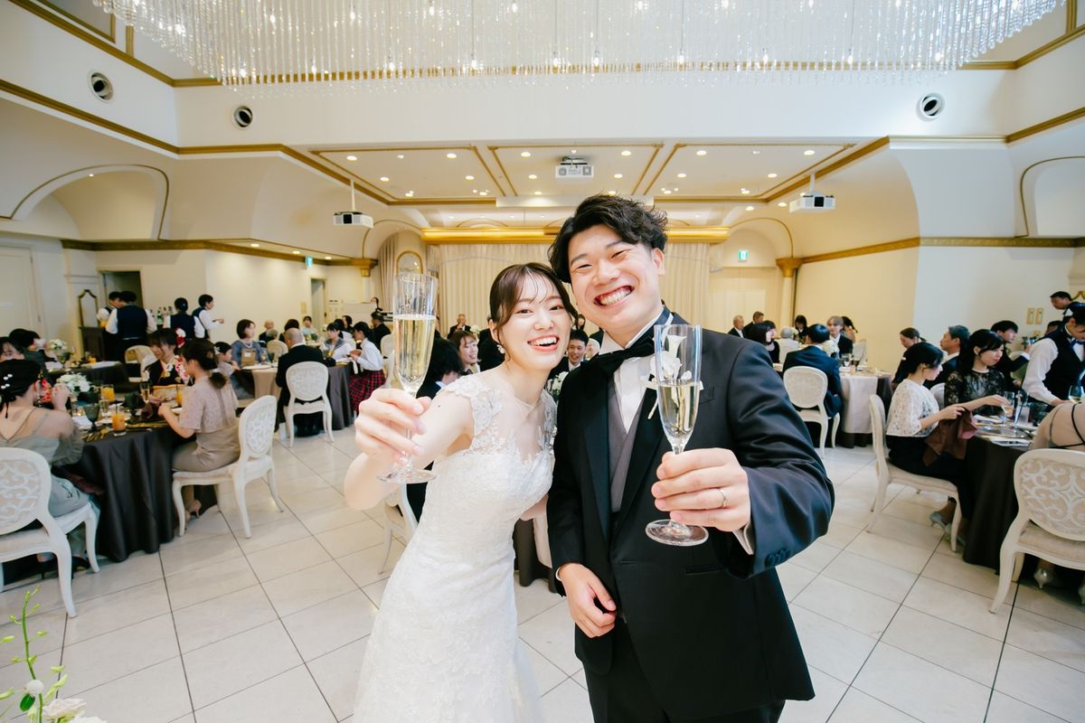 おふたりは普段からお互いのやりたいことや意見をしっかり話し合っているそう。式の準備においても、担当プランナーやスタッフとの相談を重ね、終始笑い合いながら温かな雰囲気で進めていたのが印象的です。ご新郎がサプライズを考案された際は、プランナーがしっかりとサポートしながら企画を進め、皆様に喜んでいただけました。