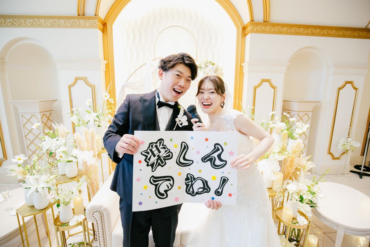 おふたりがこだわったのは『みんなで楽しく過ごせること』。そのため、ゲスト参加型のサプライズを組み込むなどの工夫をされました。ご親族やご友人からは「とても良い式だった」と、おふたりにとって何より嬉しい言葉が! その他、ペーパーアイテムやムービーも自作されるなど、おふたりのオリジナリティが随所に感じられる一日となりました。