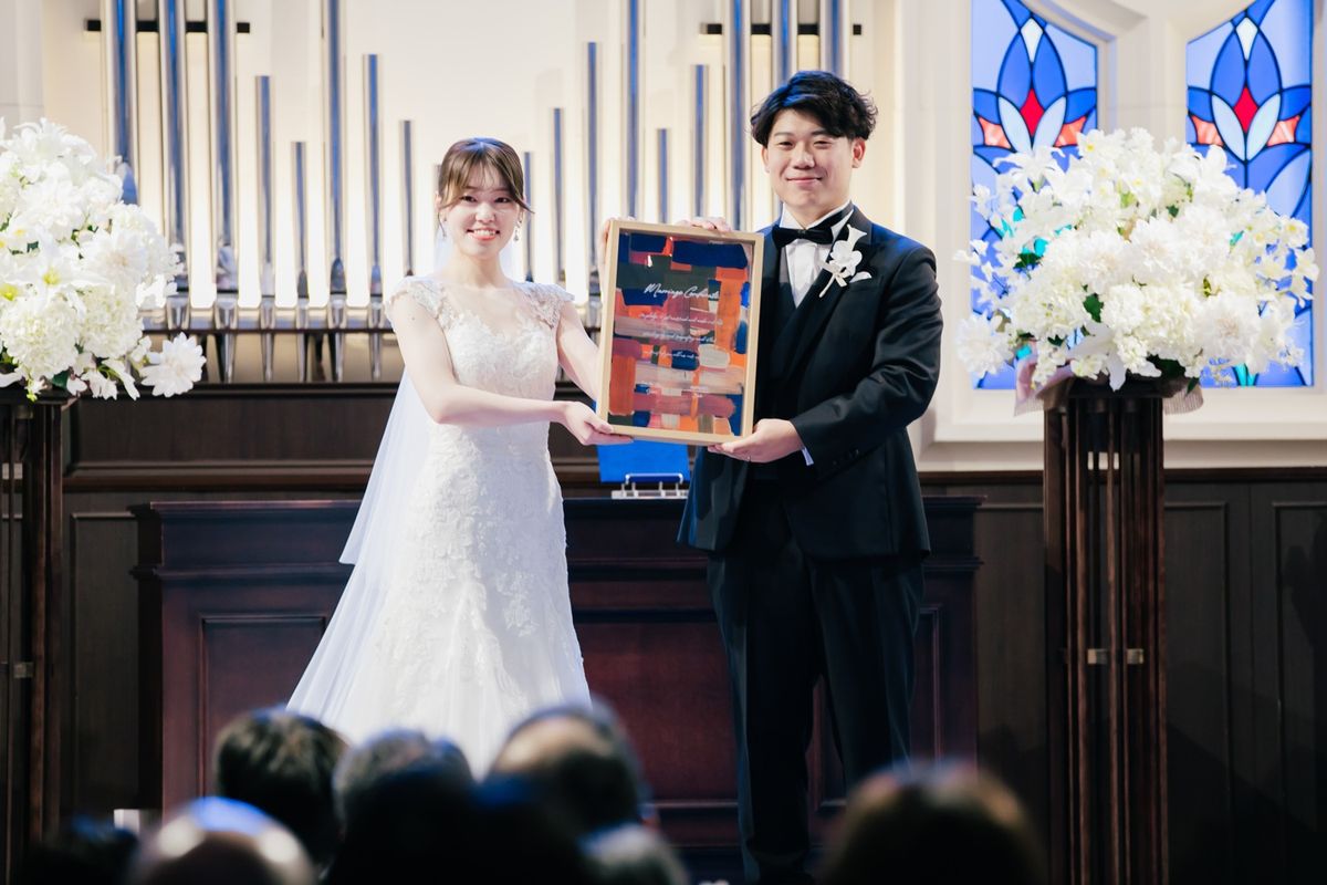 『いつものふたりらしい自然体な式』をテーマにしたおふたり。好きな音楽を取り入れたり、参列者の皆様が参加できるサプライズを随所に盛り込んだりなど、ゲストにも楽しんでもらえるよう工夫を凝らした結婚式を実現されました。