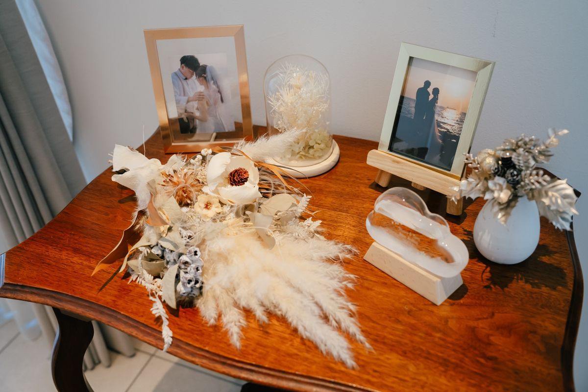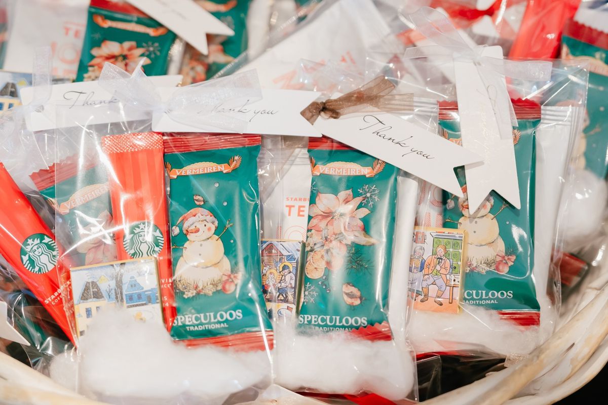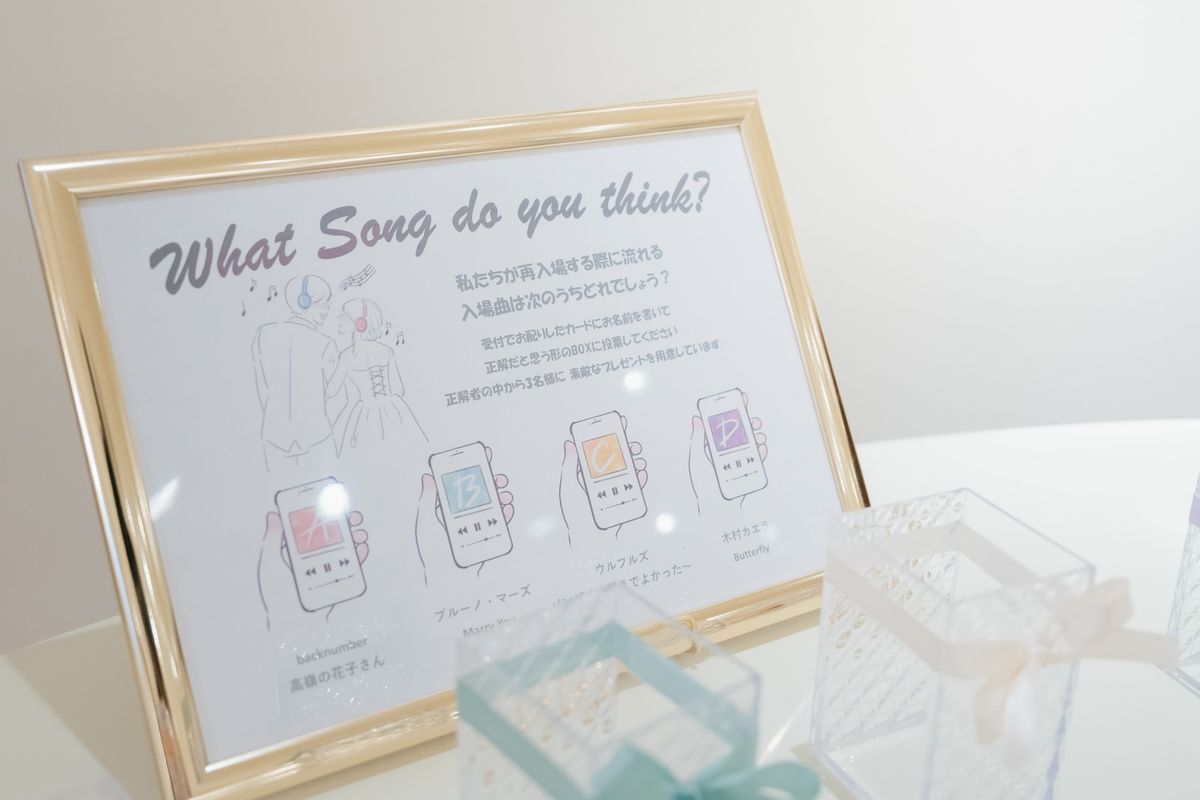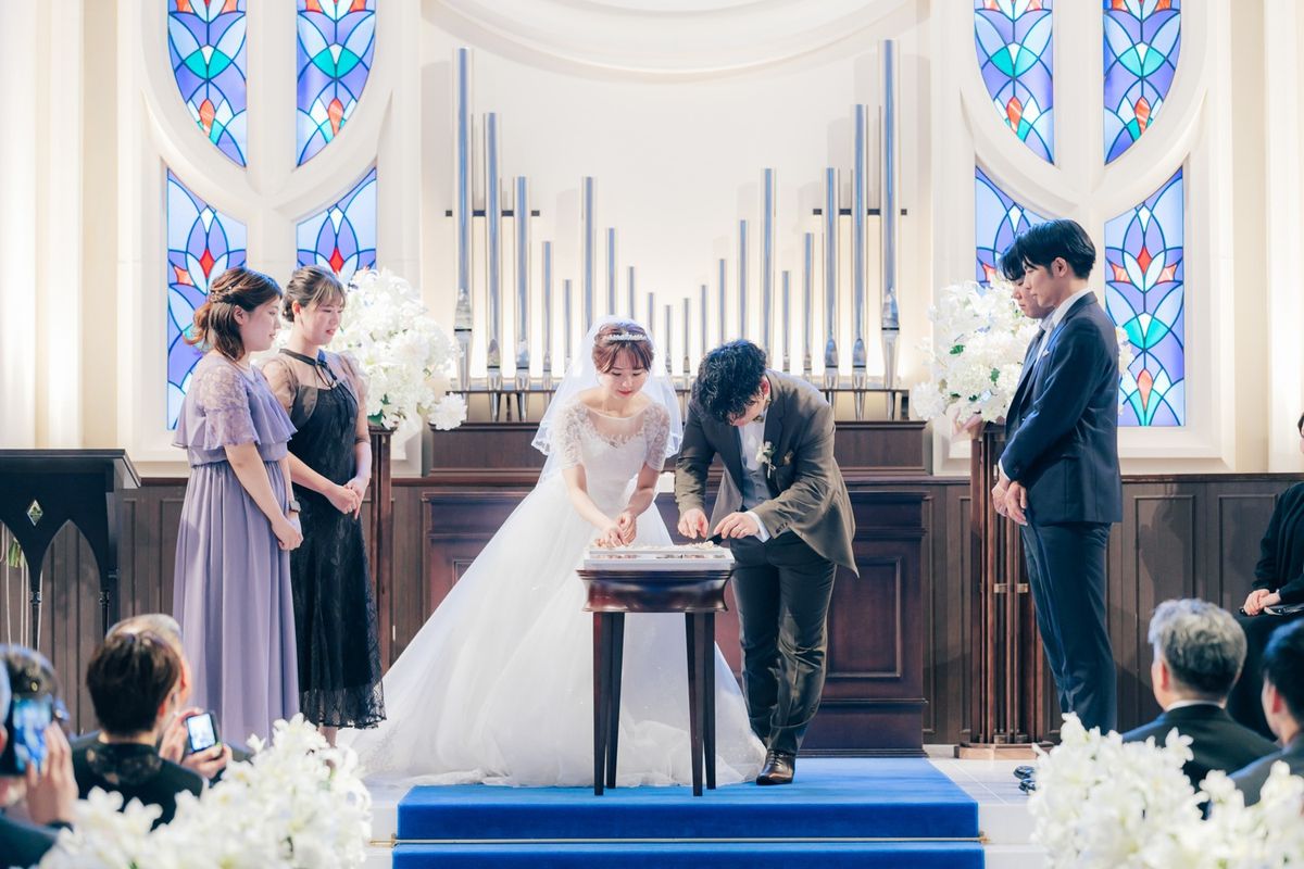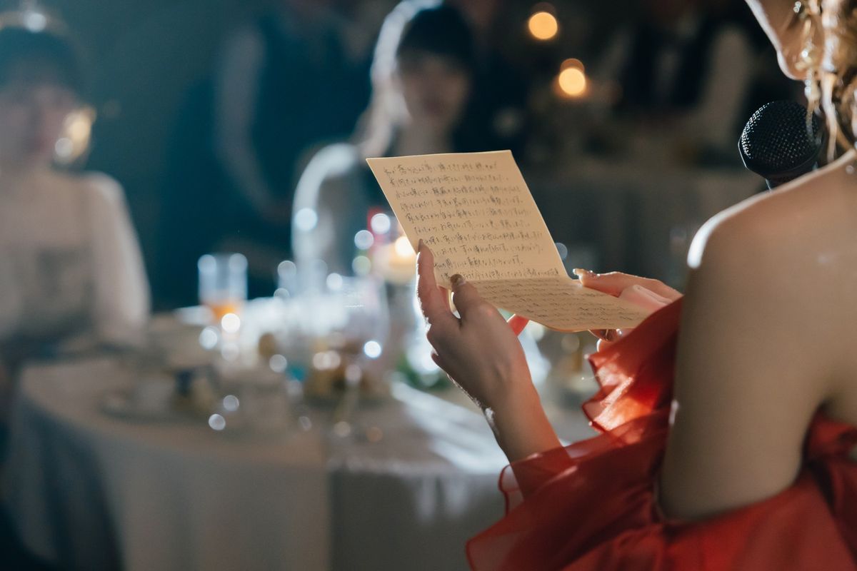 初回見学から「人」を重視されていたおふたり。ご準備期間中も丁寧に確認を重ね、不安な点はこまめに相談されていました。ゲストに喜んでいただくため、動画や演出も手作りされ、司会とも綿密に打ち合わせを。受付ではスイッチングレターを用意し、待ち時間も心温まる時間に。感謝の気持ちをカタチにすることを軸に、丁寧にご準備を進めていた印象です。また、12月の結婚式のため、「冬」の雰囲気も意識されていました。