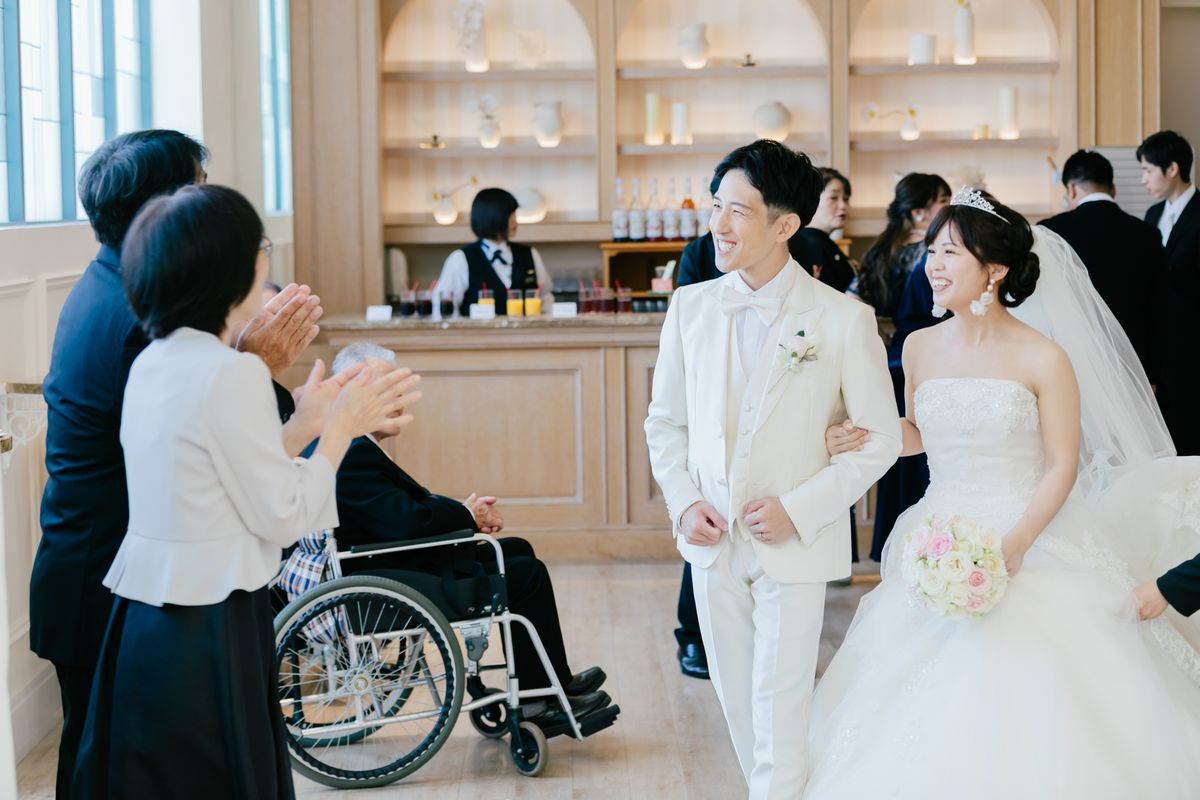 ご新婦の「生まれ変わったらジャニーズに入りたい」という思いから、テーマを『アイドル』に。アイテム・衣装や演出を思う存分楽しまれました。また、大好きな『お寿司』の要素も随所に入れ、こだわりを詰め込んでいます。
