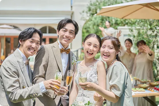 広く、居心地の良いブライズルームをご用意しております。お支度からお帰りまで、ゆったりと、おくつろぎください。お色直し専用のお部屋もご準備しております。